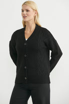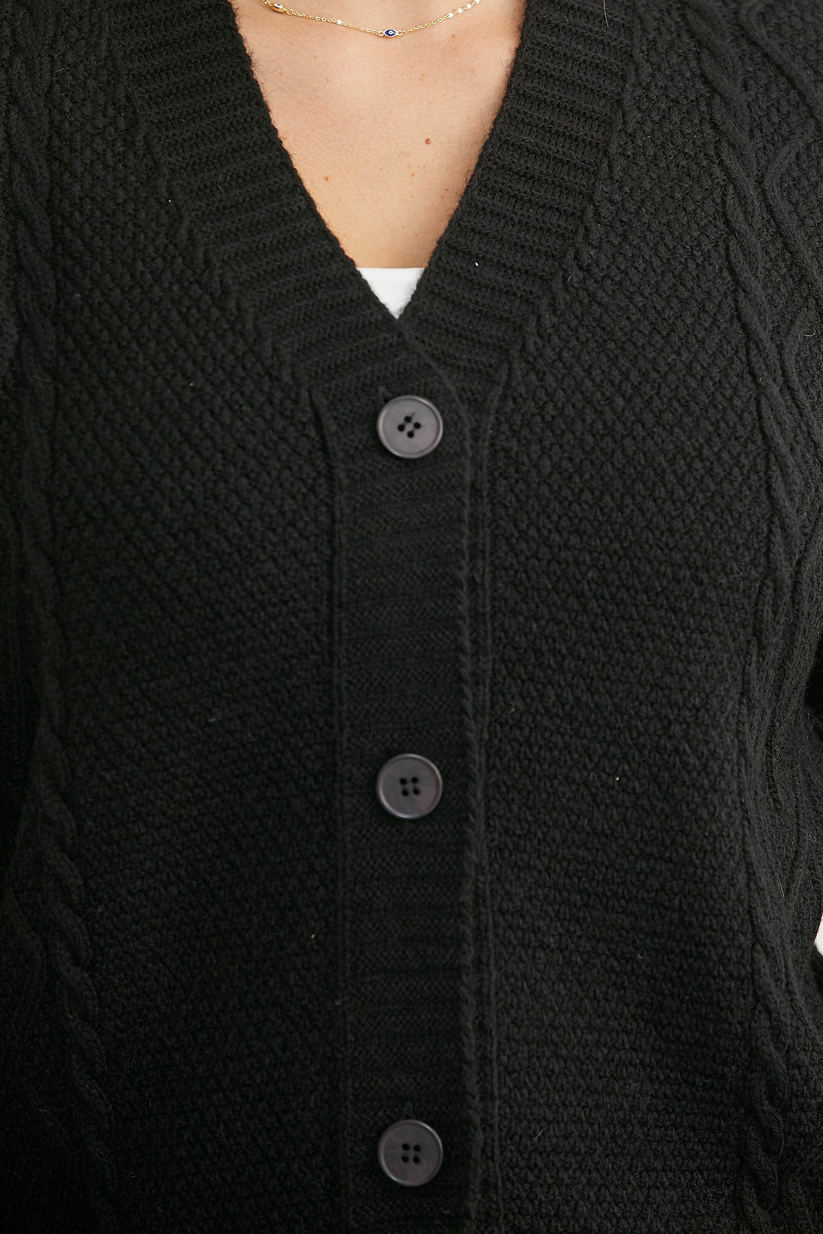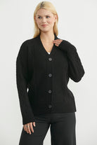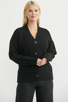 Oversize Düğmeli Triko Hırka - Siyah