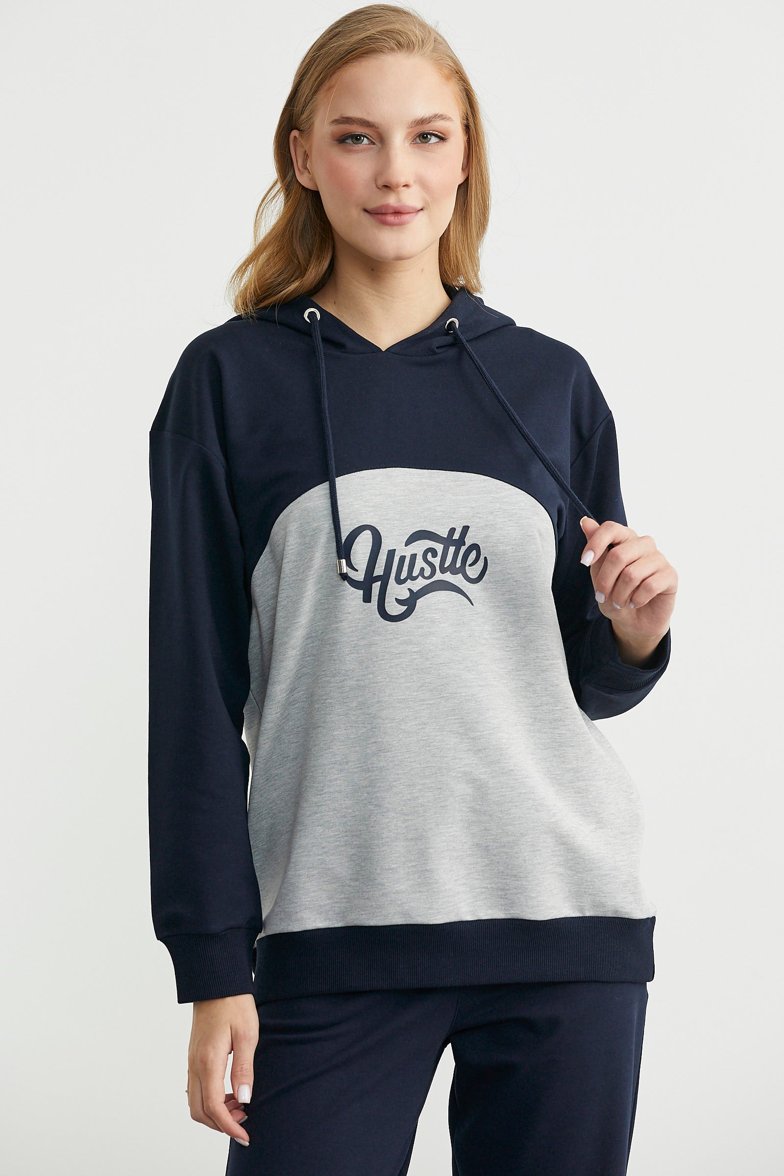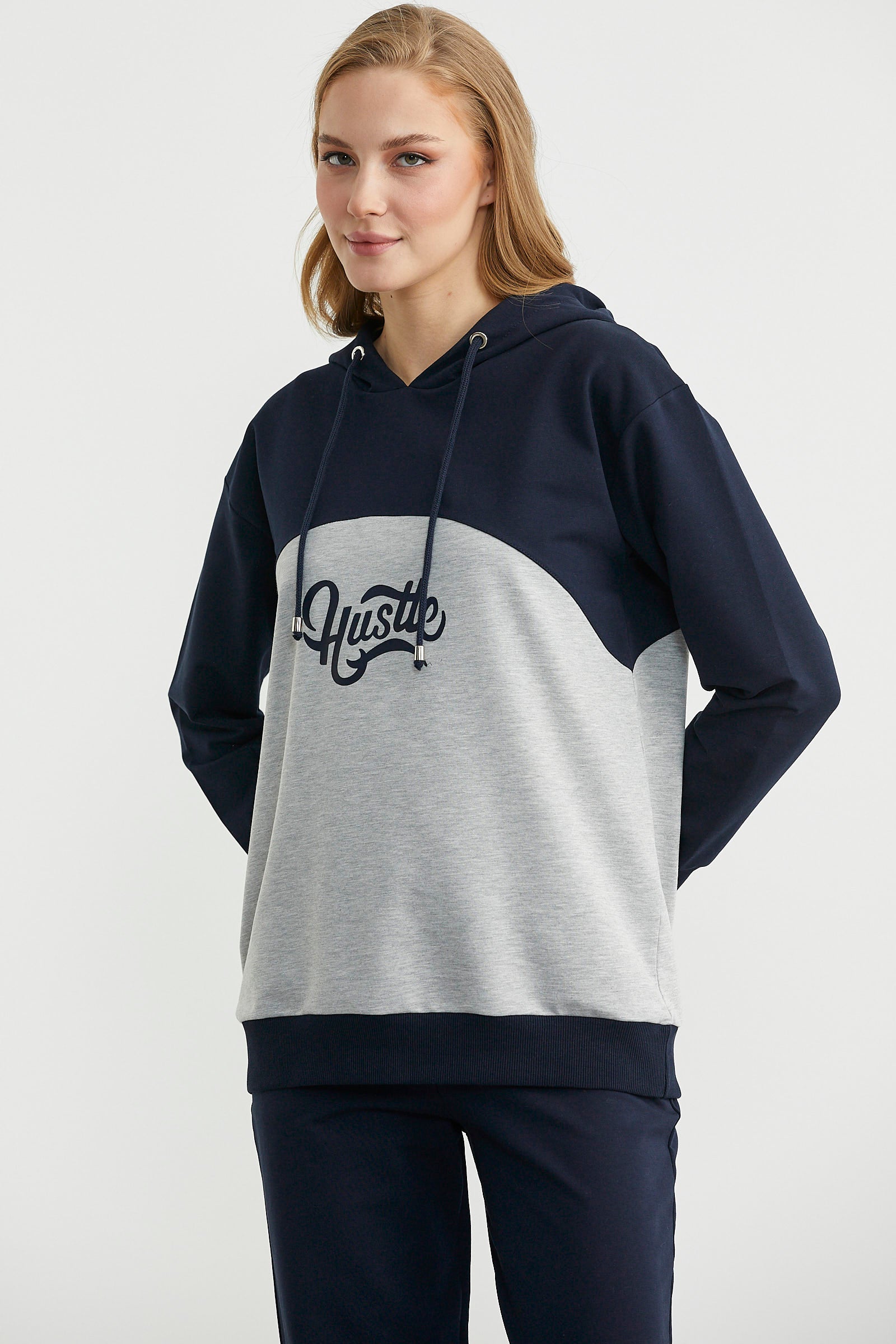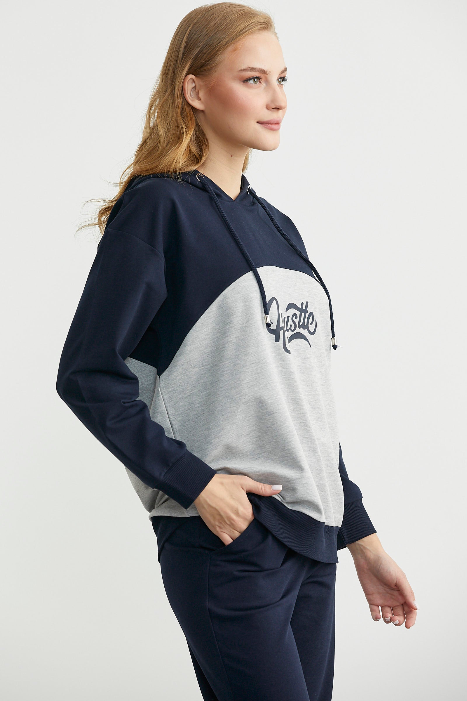 Oversize Kapüşonlu Eşofman Takım - Lacivert