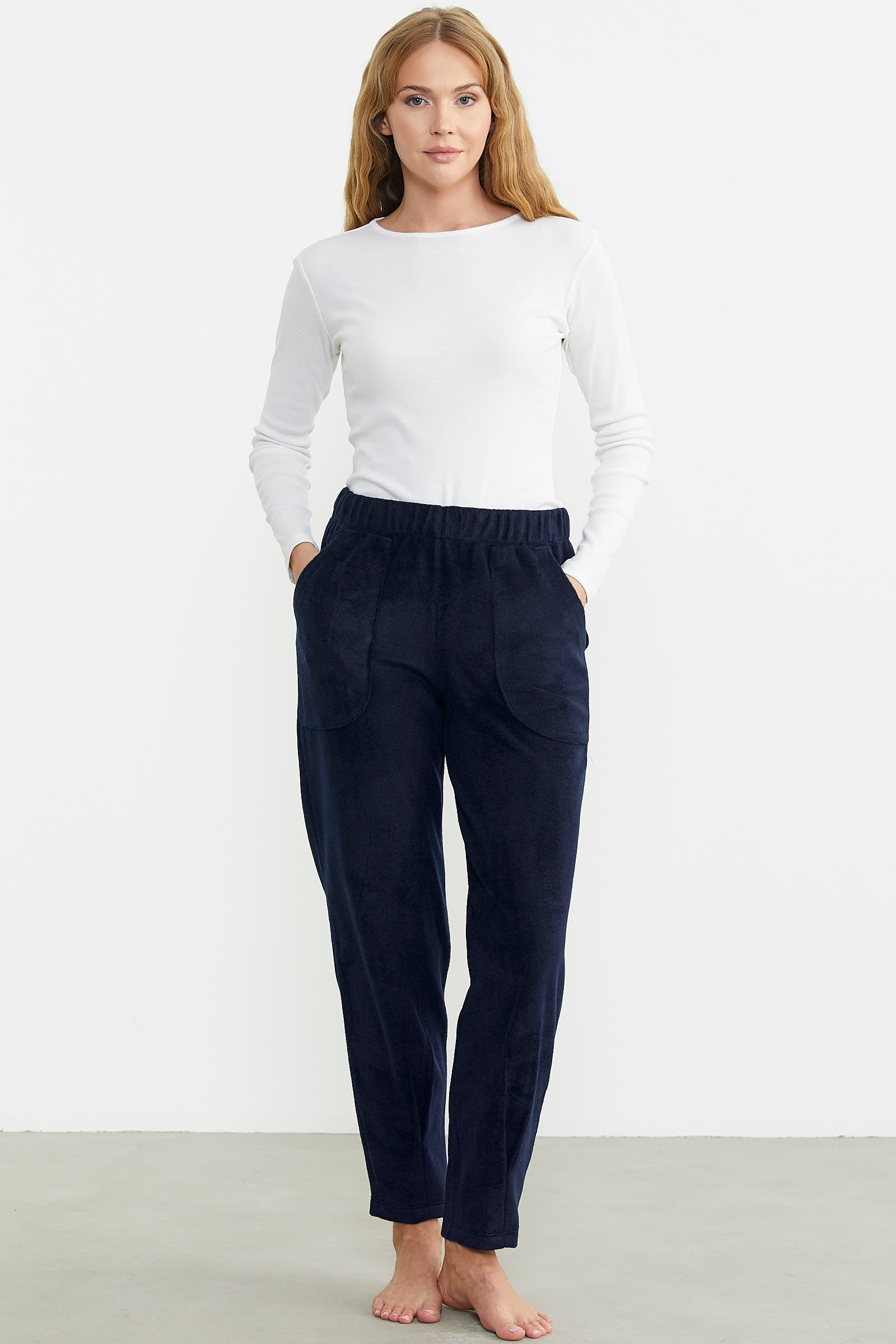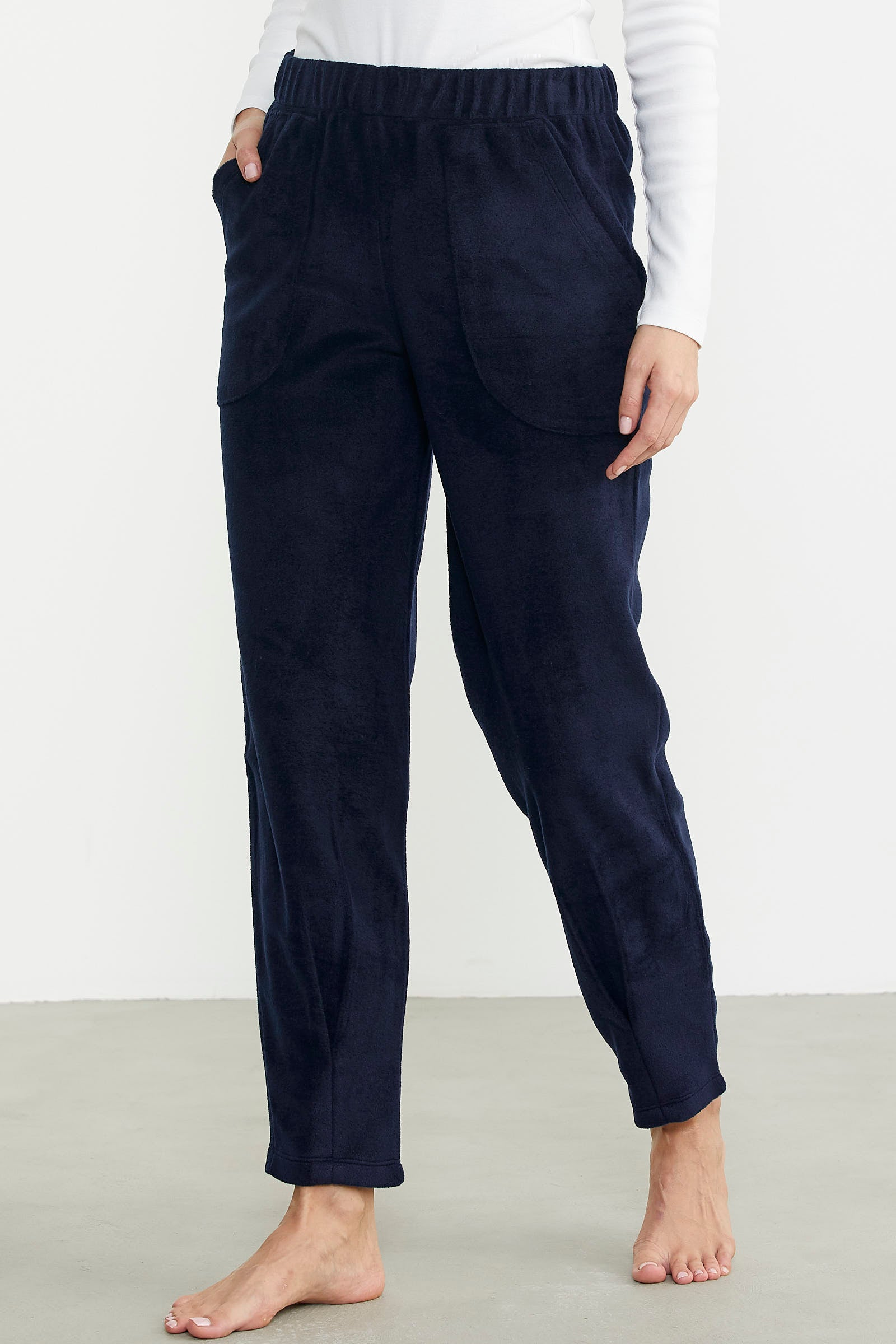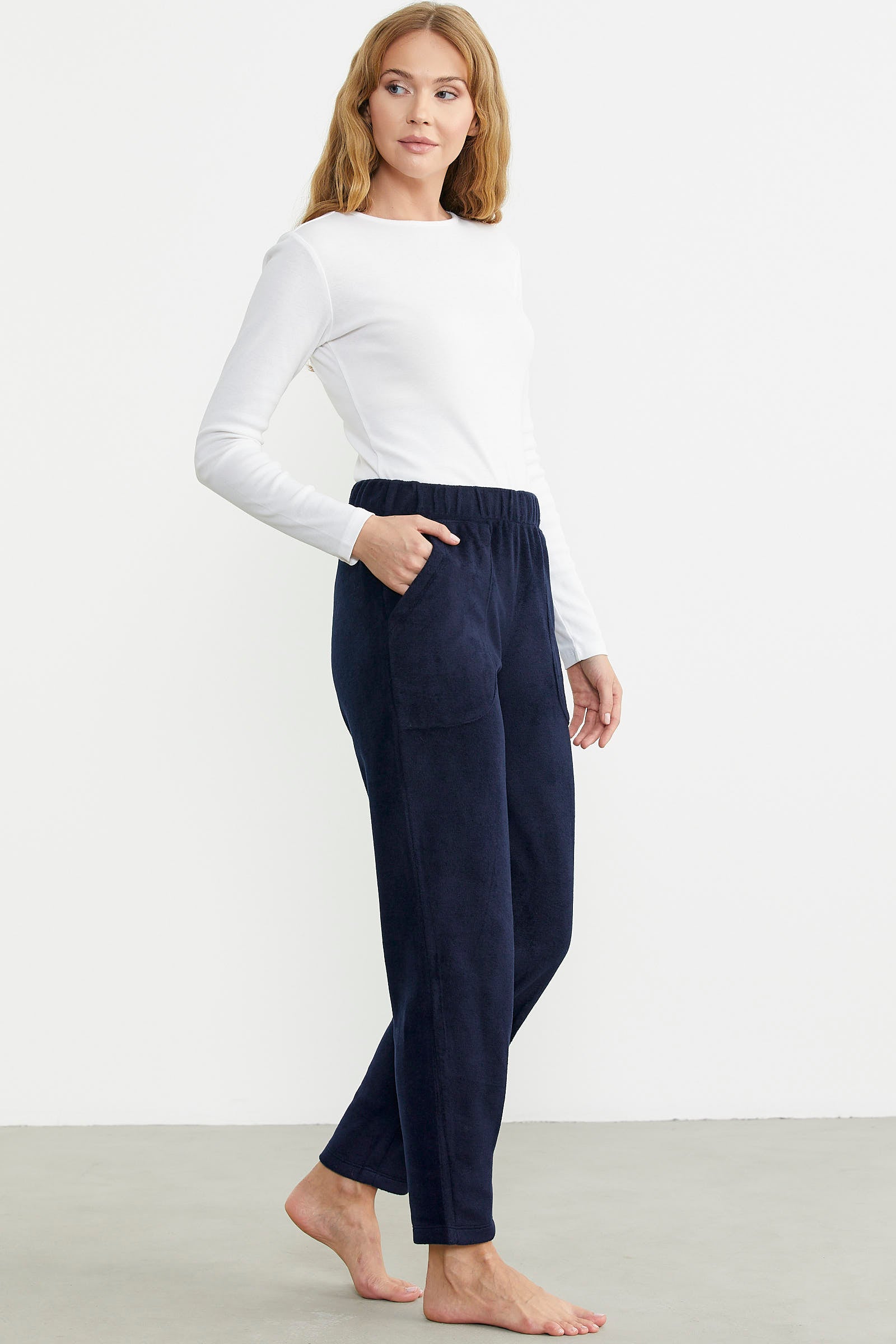 Rahat kalıp, cepli polar tek alt paça detayıyla soğuk kış günlerinin favorisi.