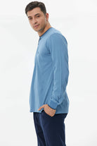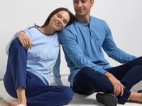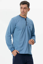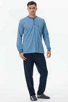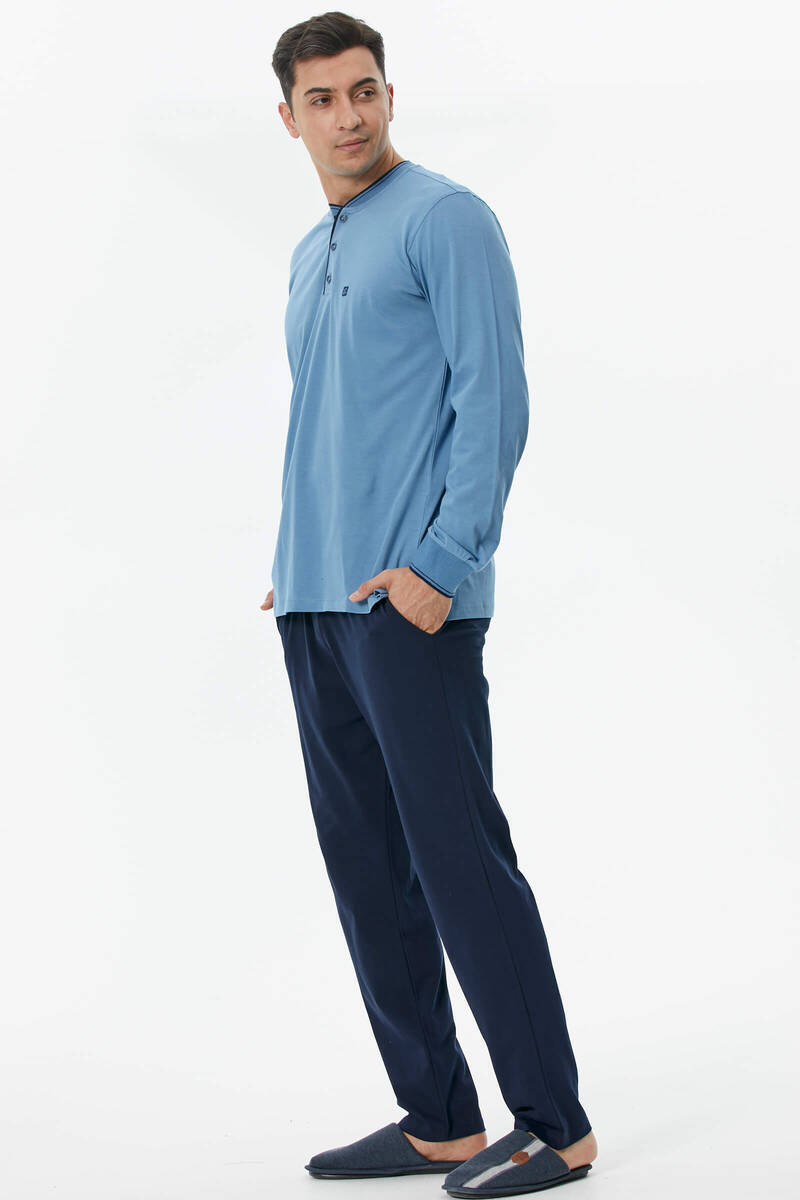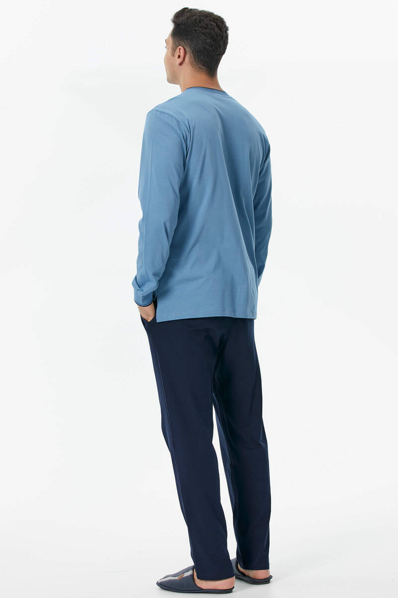 Pamuk Uzun Kol Pijama Takım - Mavi