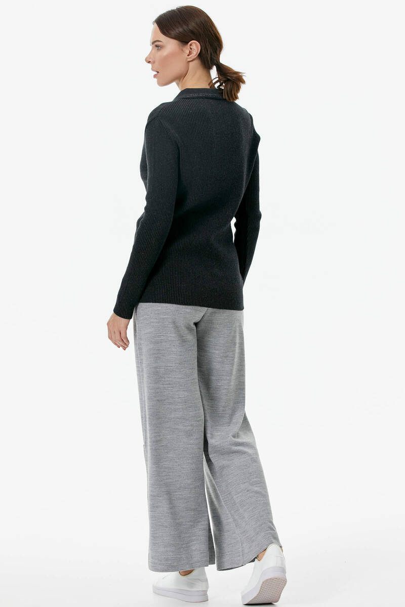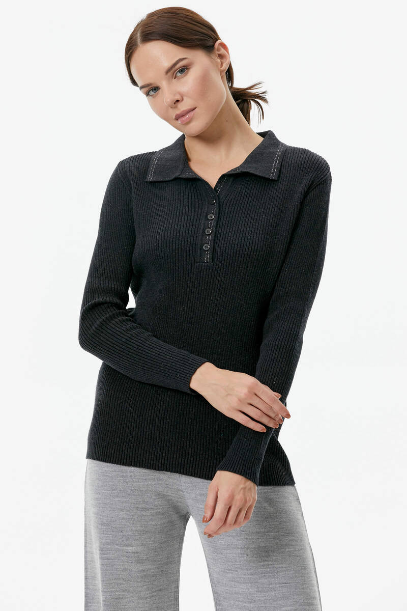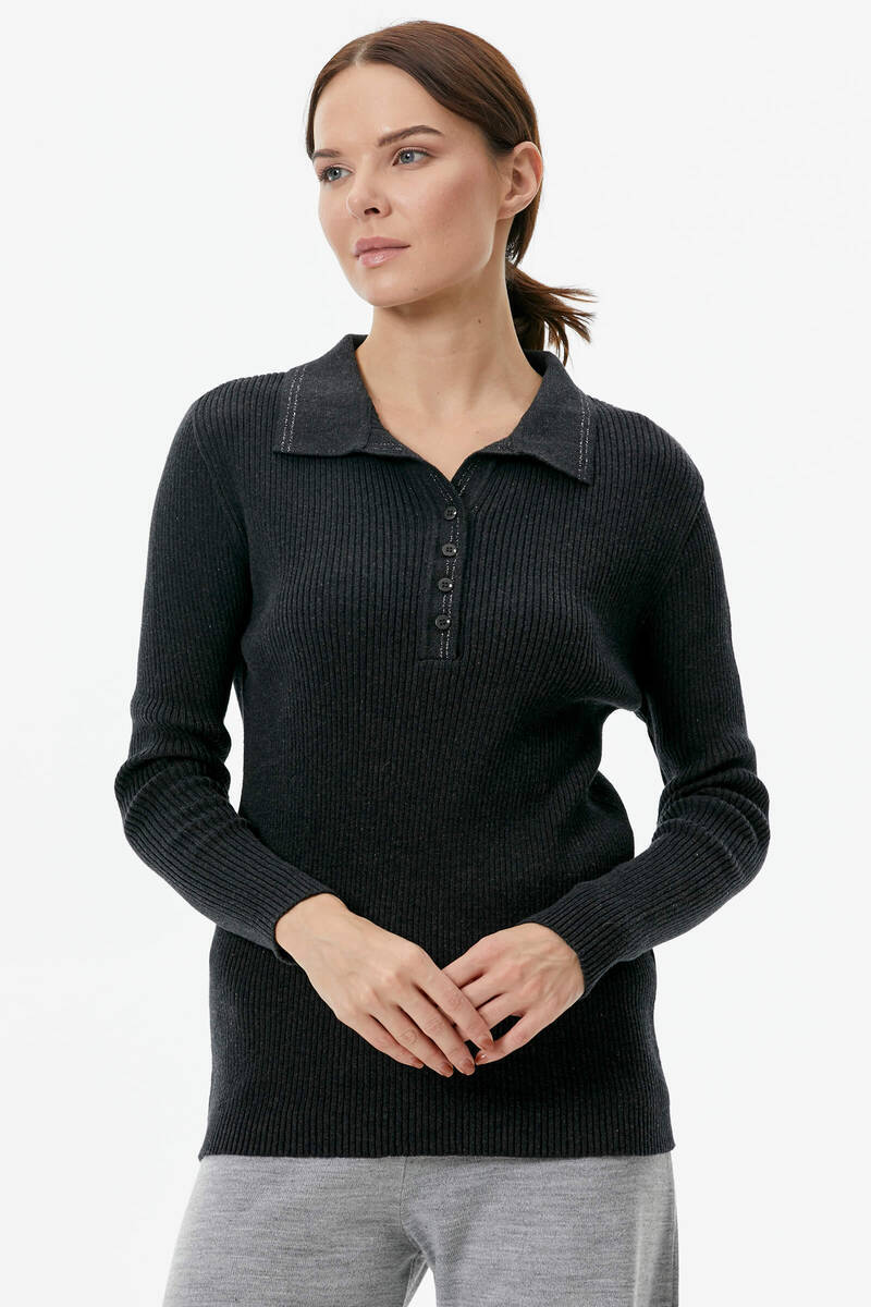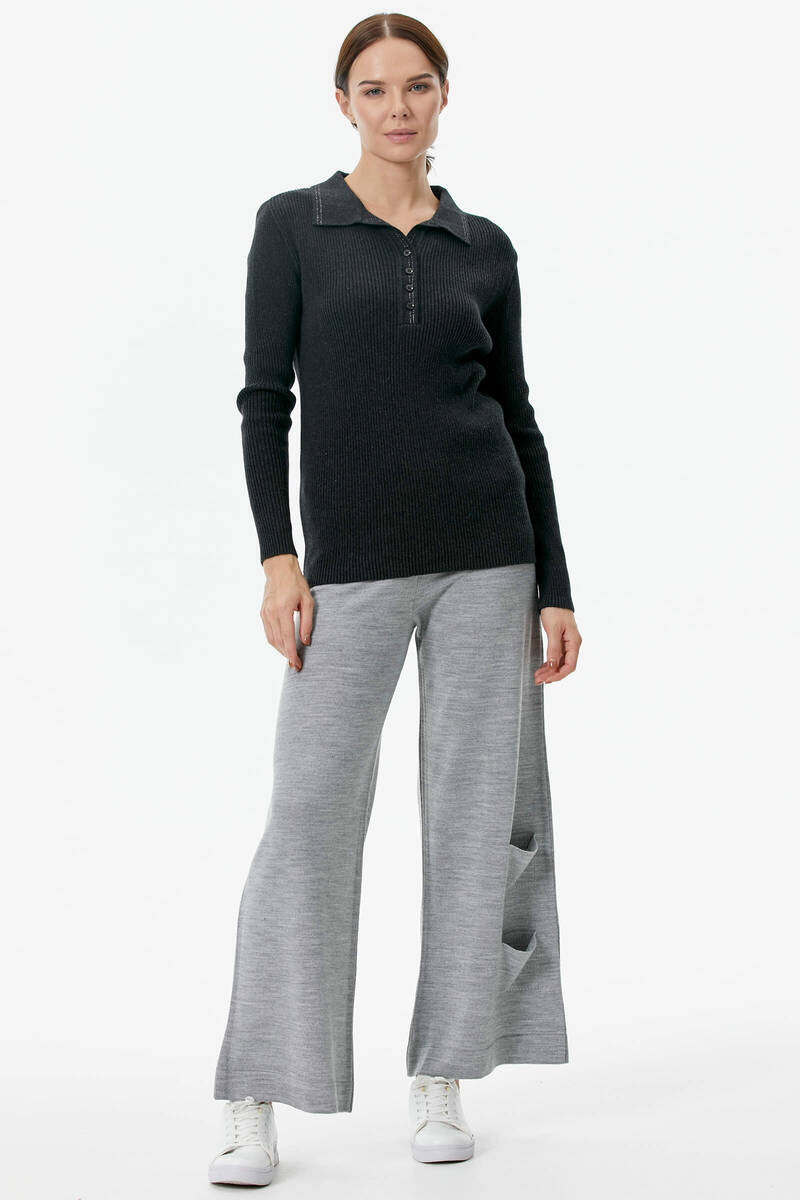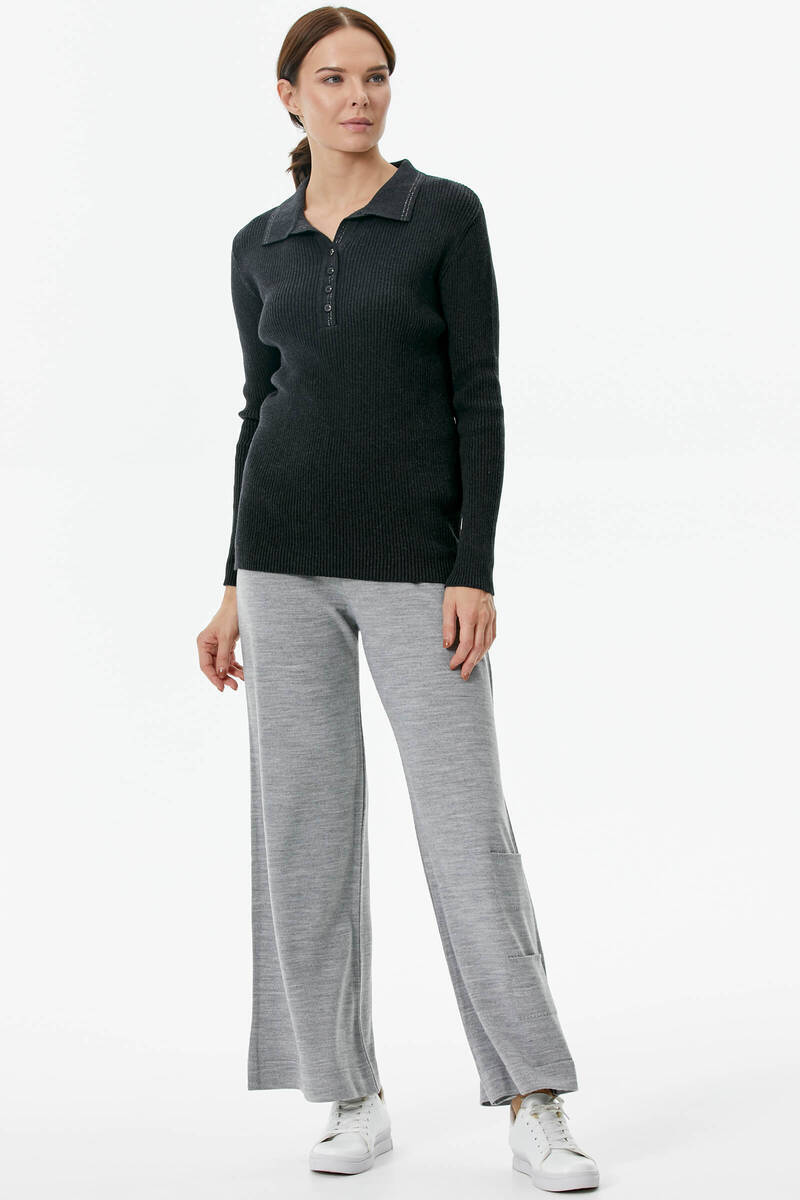 Patlı Polo Yaka Düğmeli Triko Kazak - Antrasit