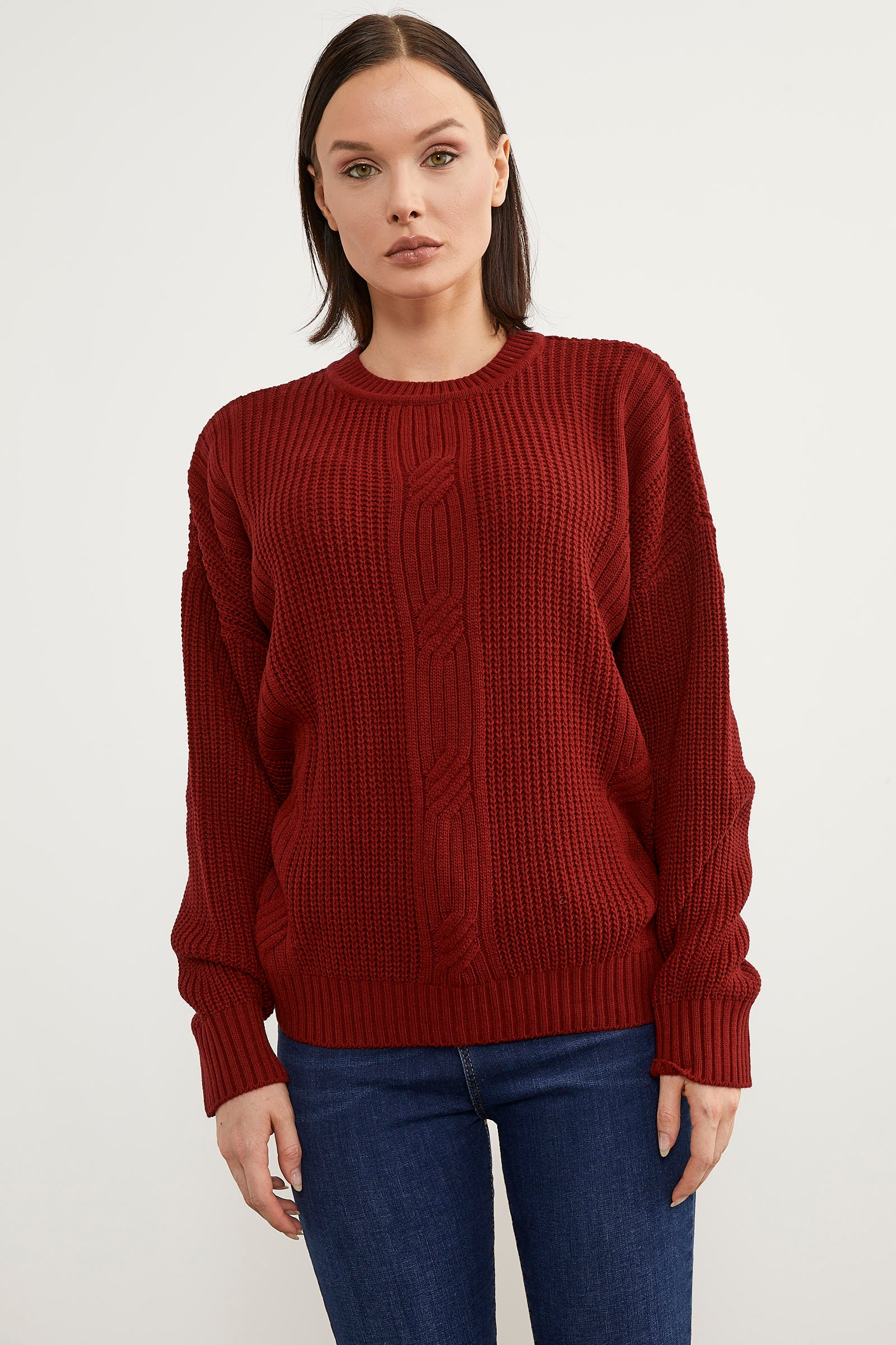 Petek Desenli Oversize Triko Kazak - Kırmızı
