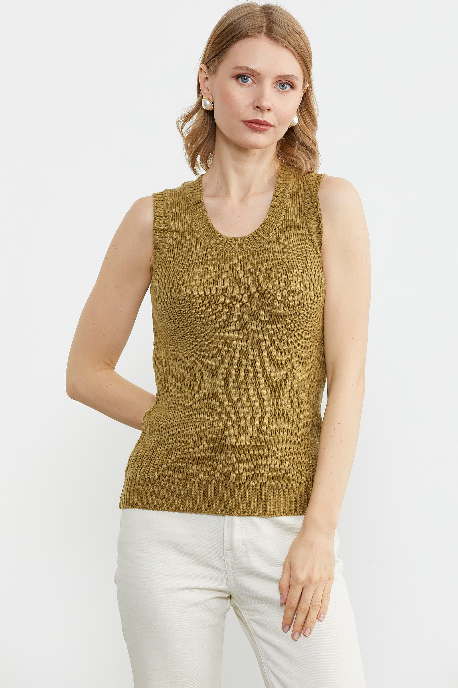 Petek Motifli Triko Süveter - Hardal - Yeşil