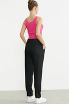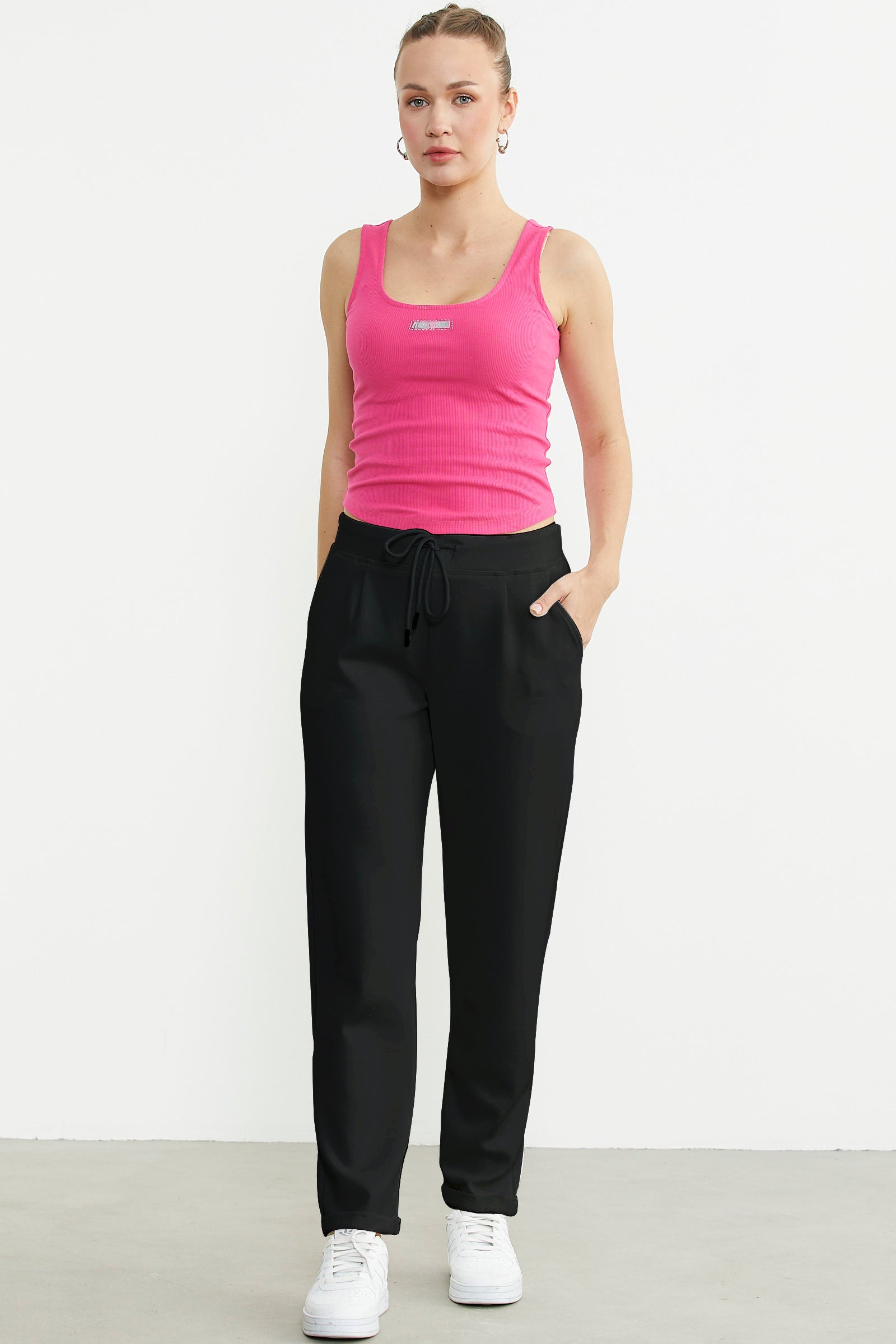 Pliseli Duble Paça Eşofman Altı - Siyah
