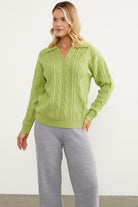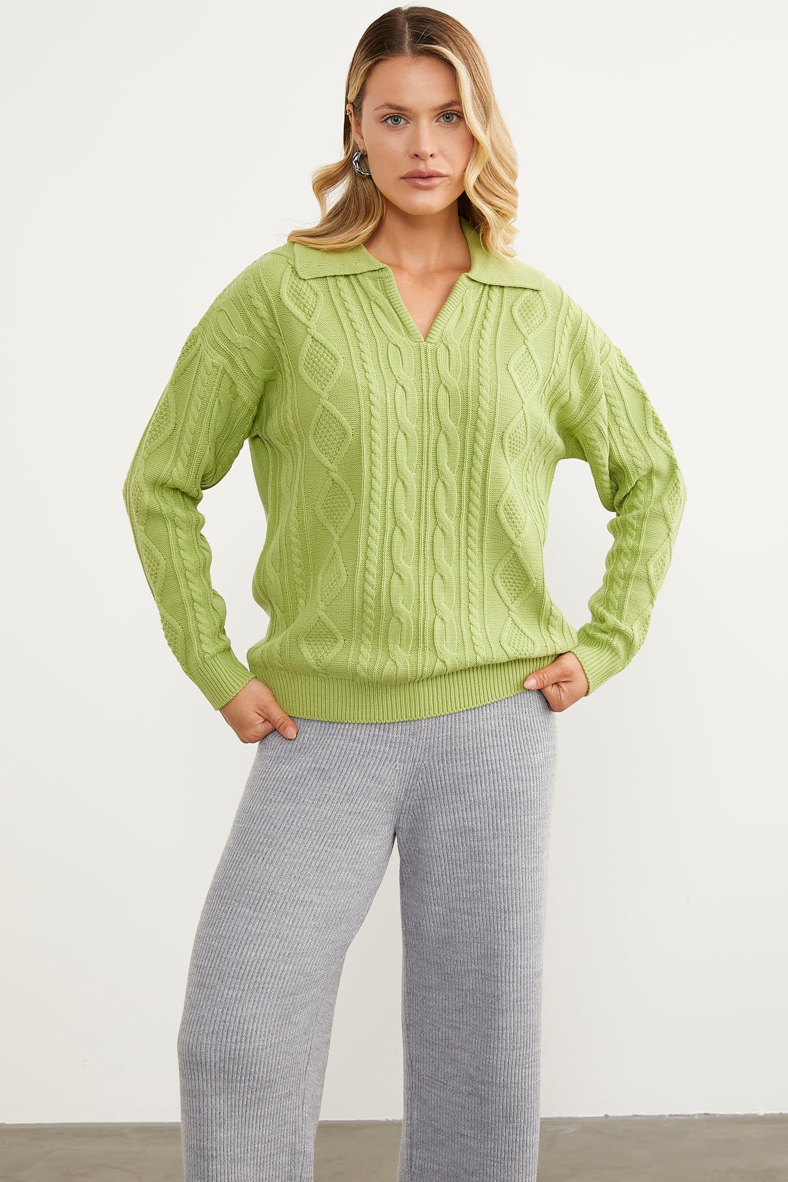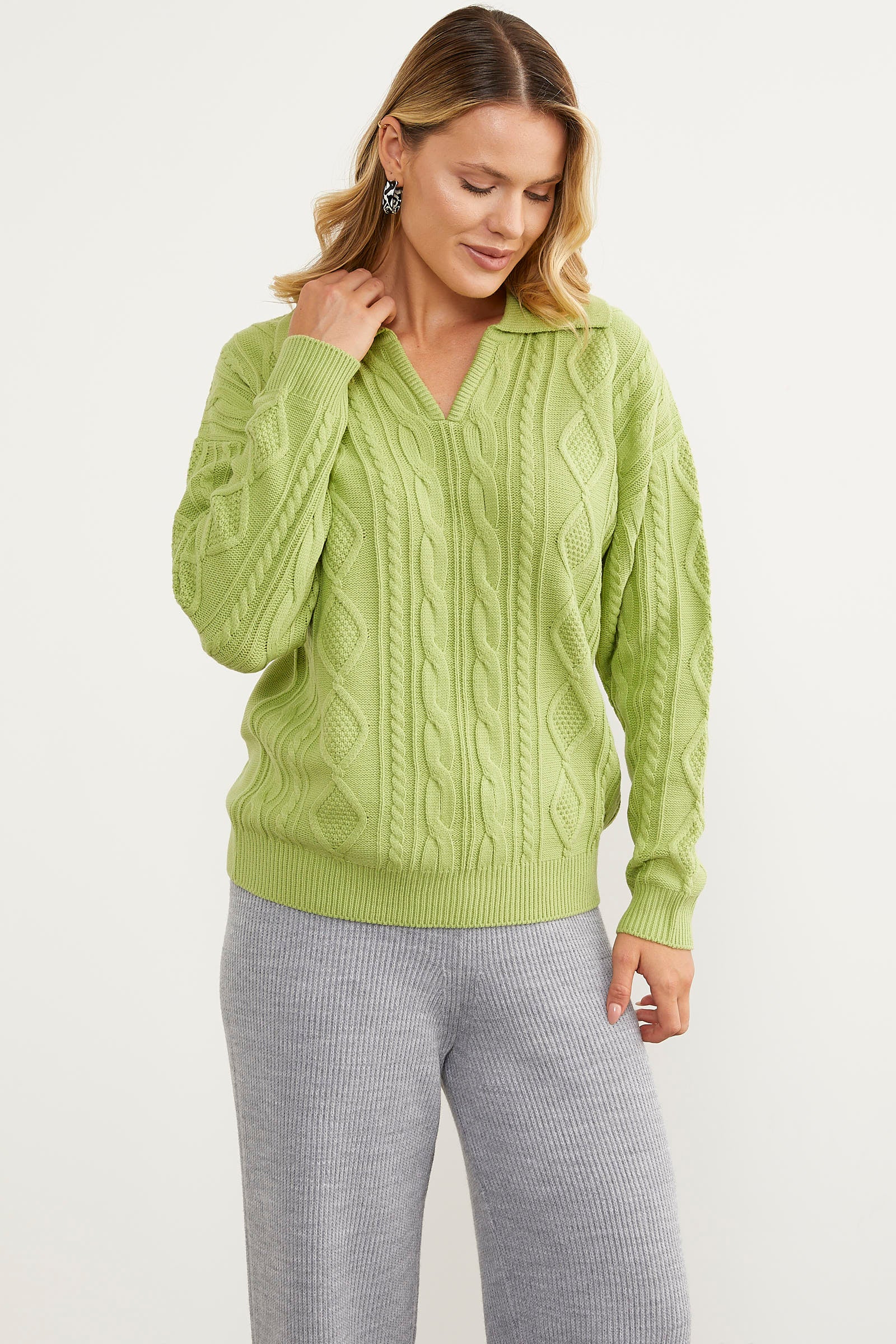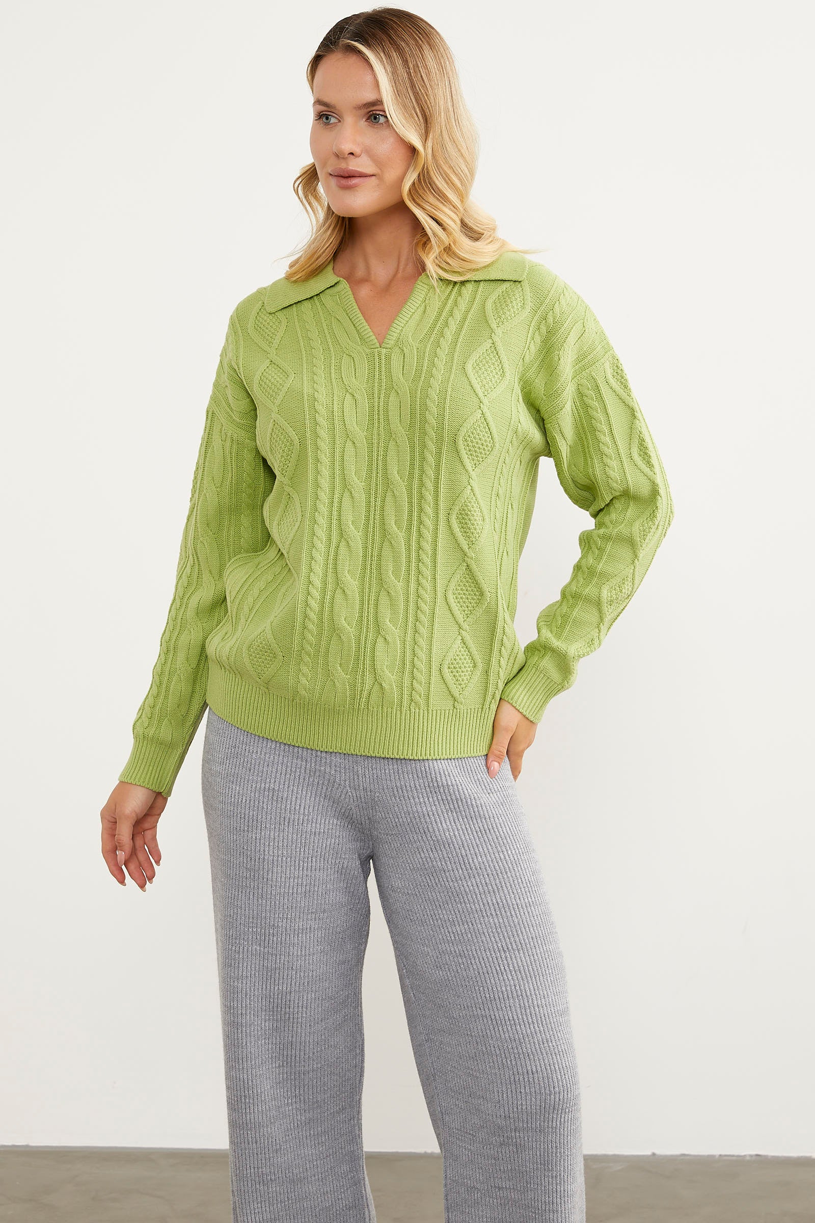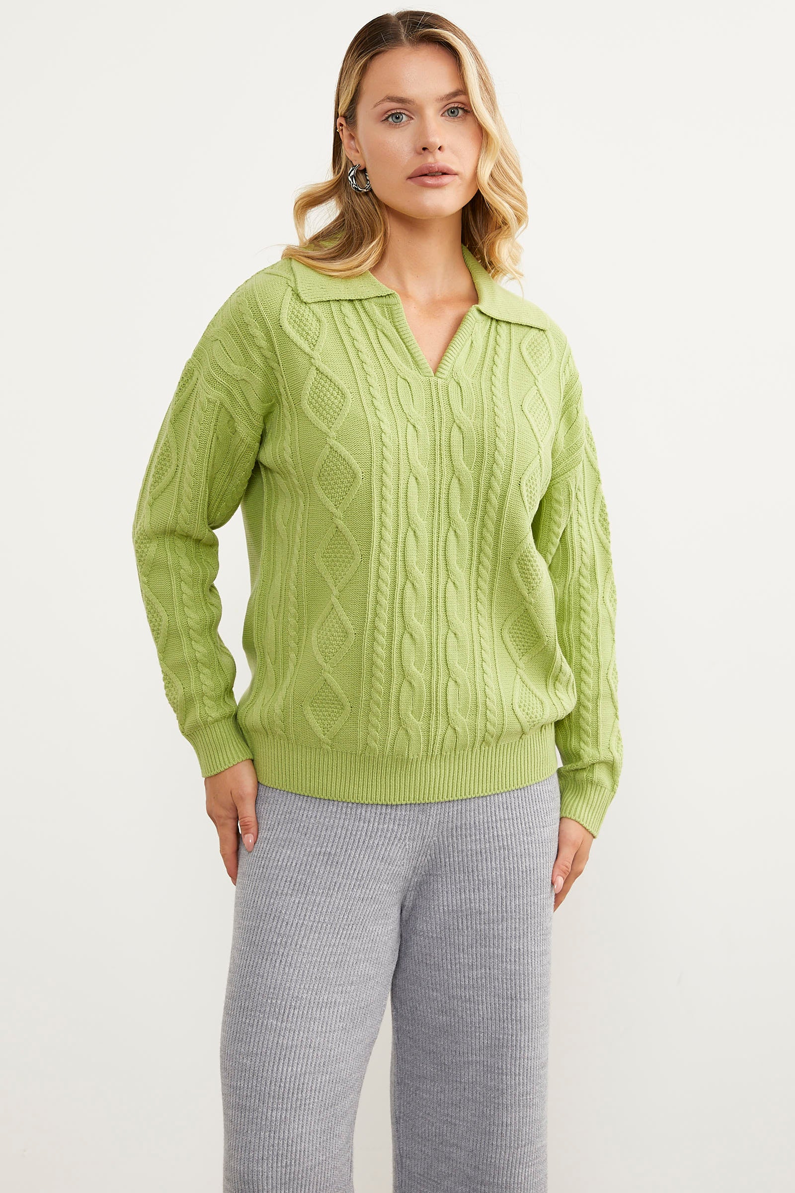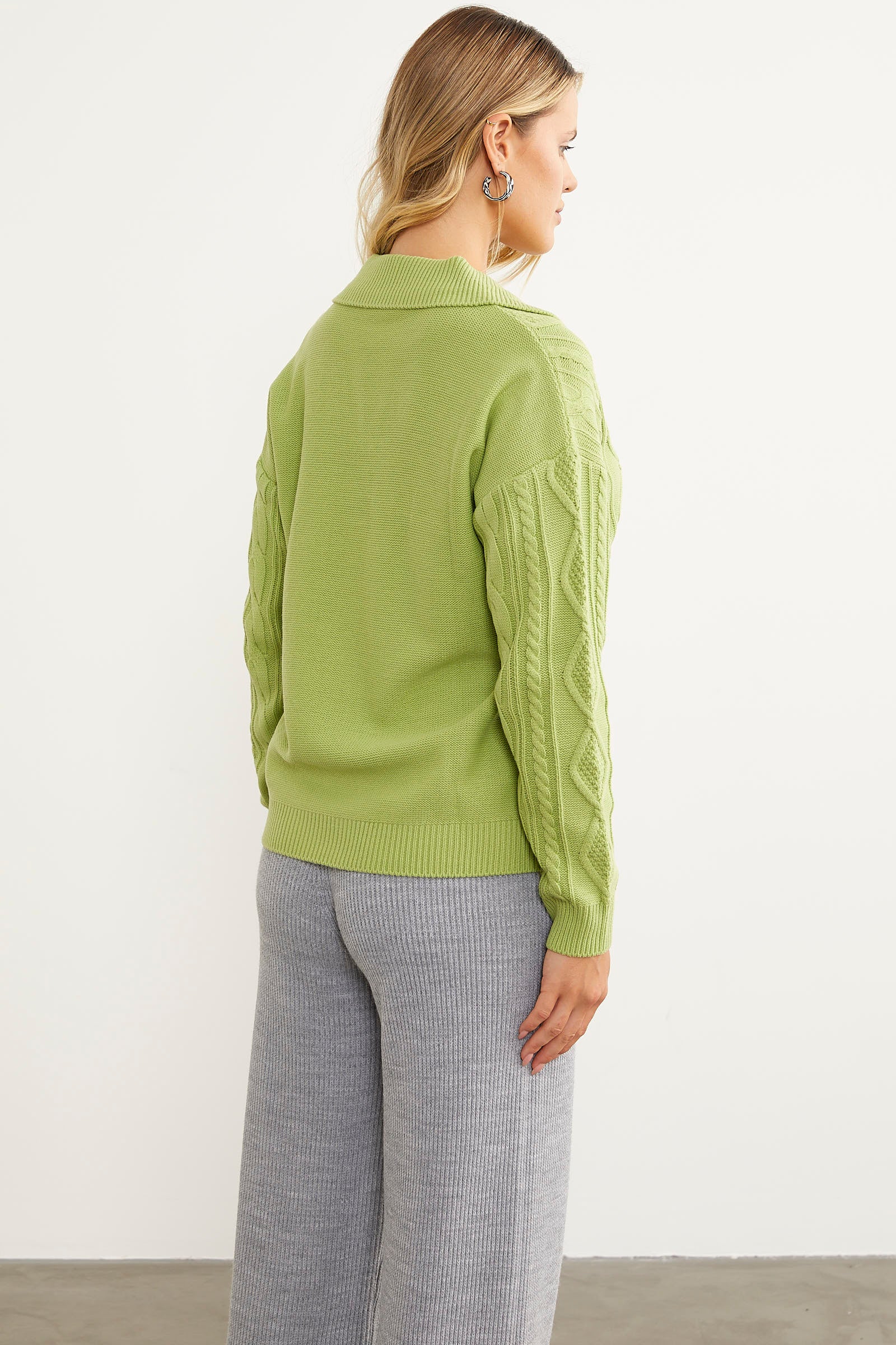 Polo Yaka Desenli Triko Kazak - Yeşil
