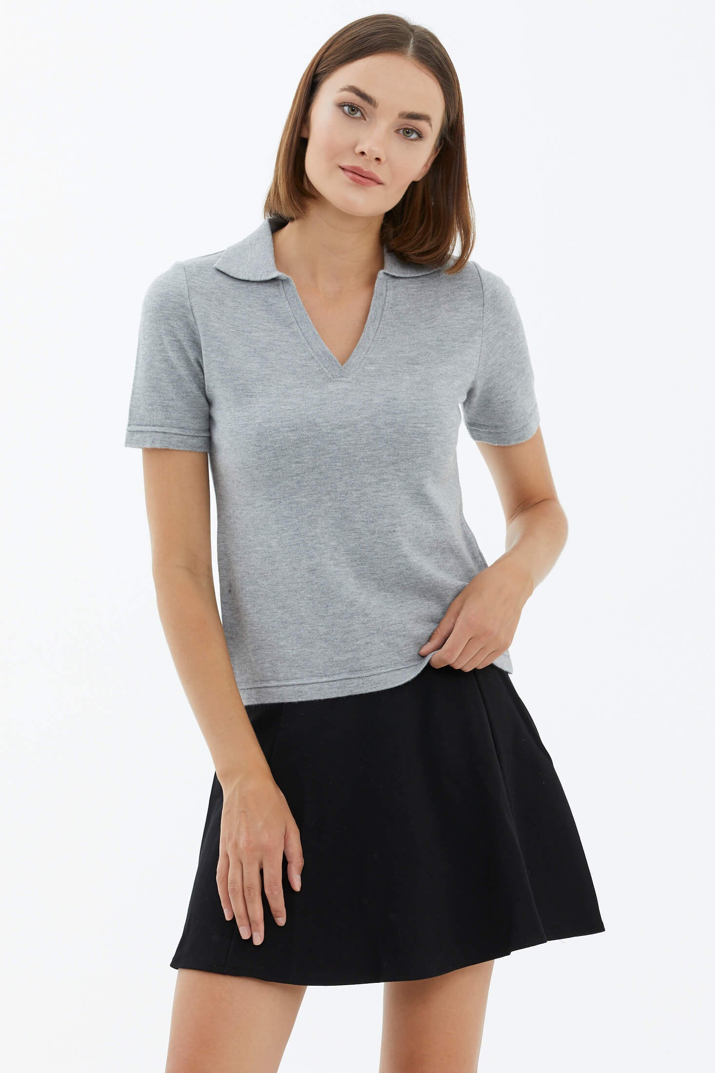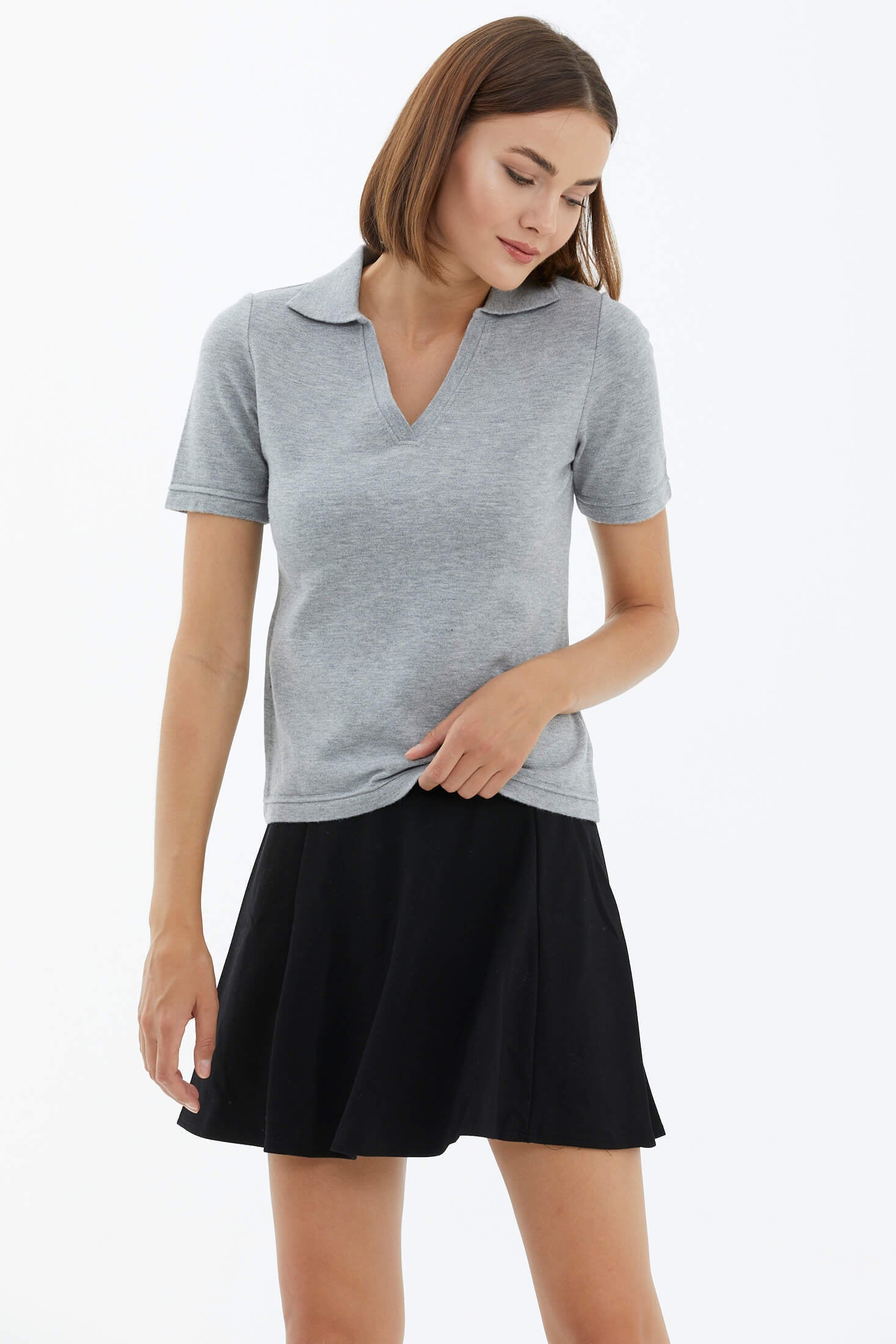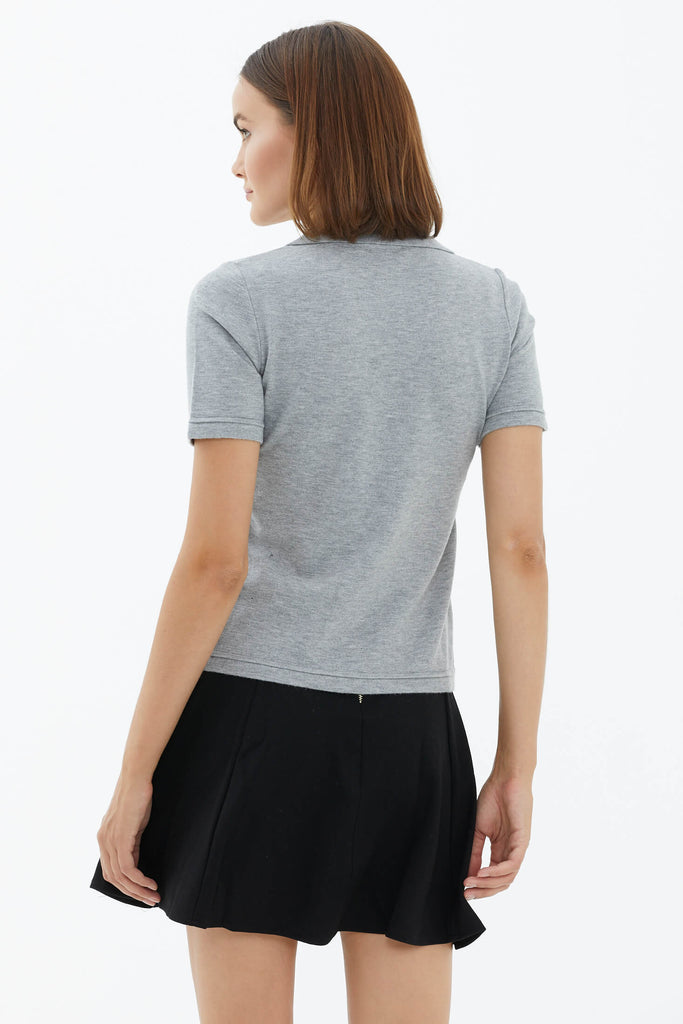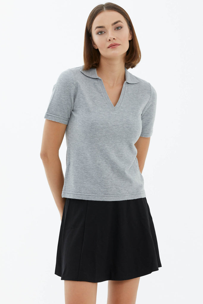 Polo Yaka Kısa Kol Triko Kazak - Açık Gri