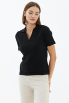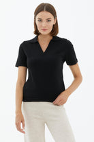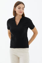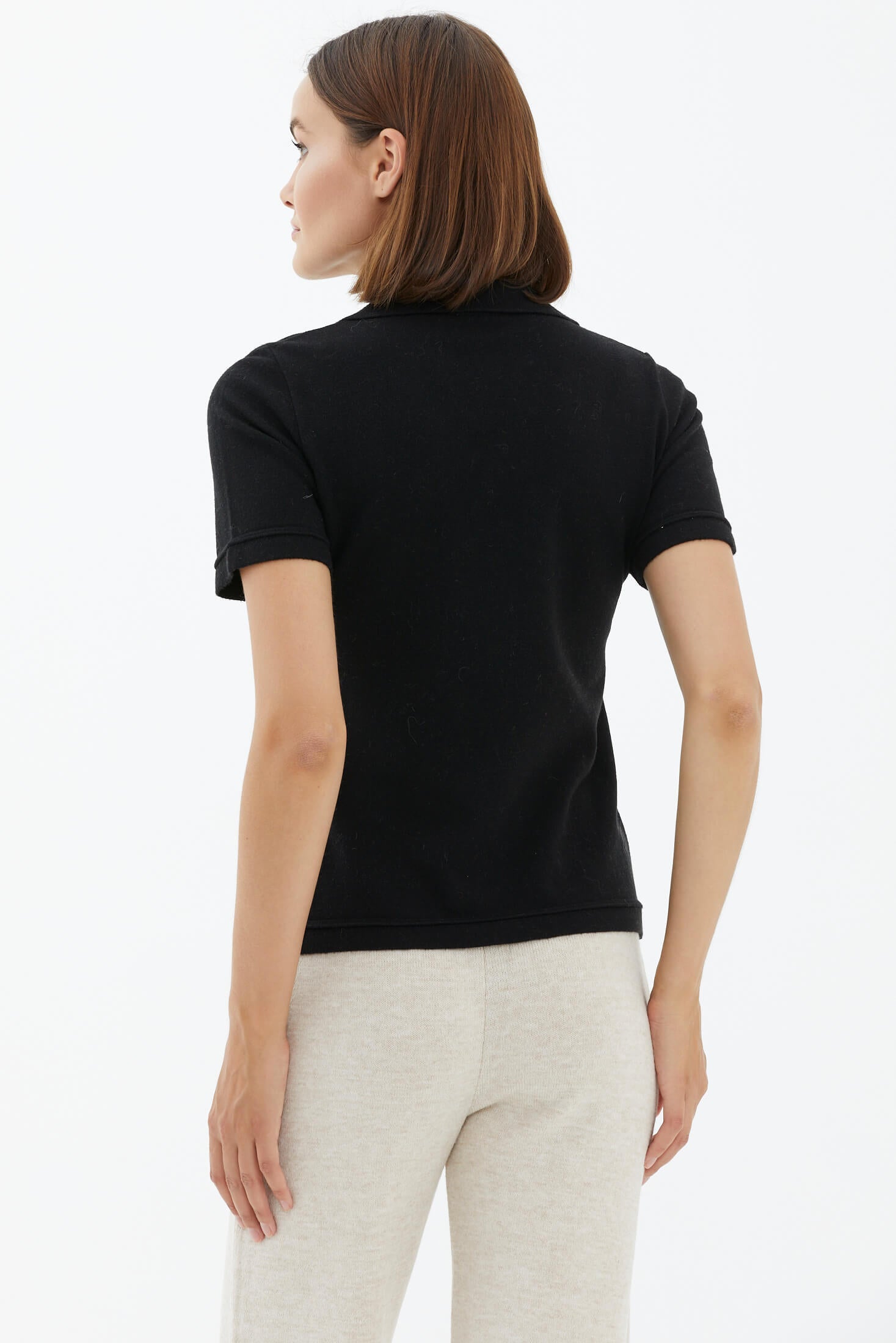 Polo Yaka Kısa Kol Triko Kazak - Siyah