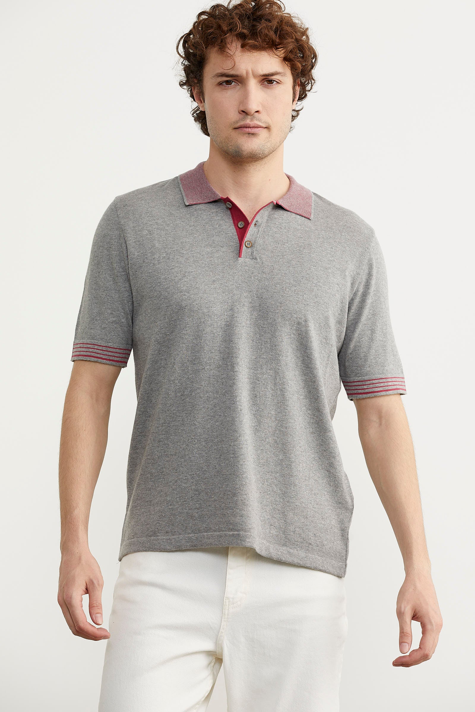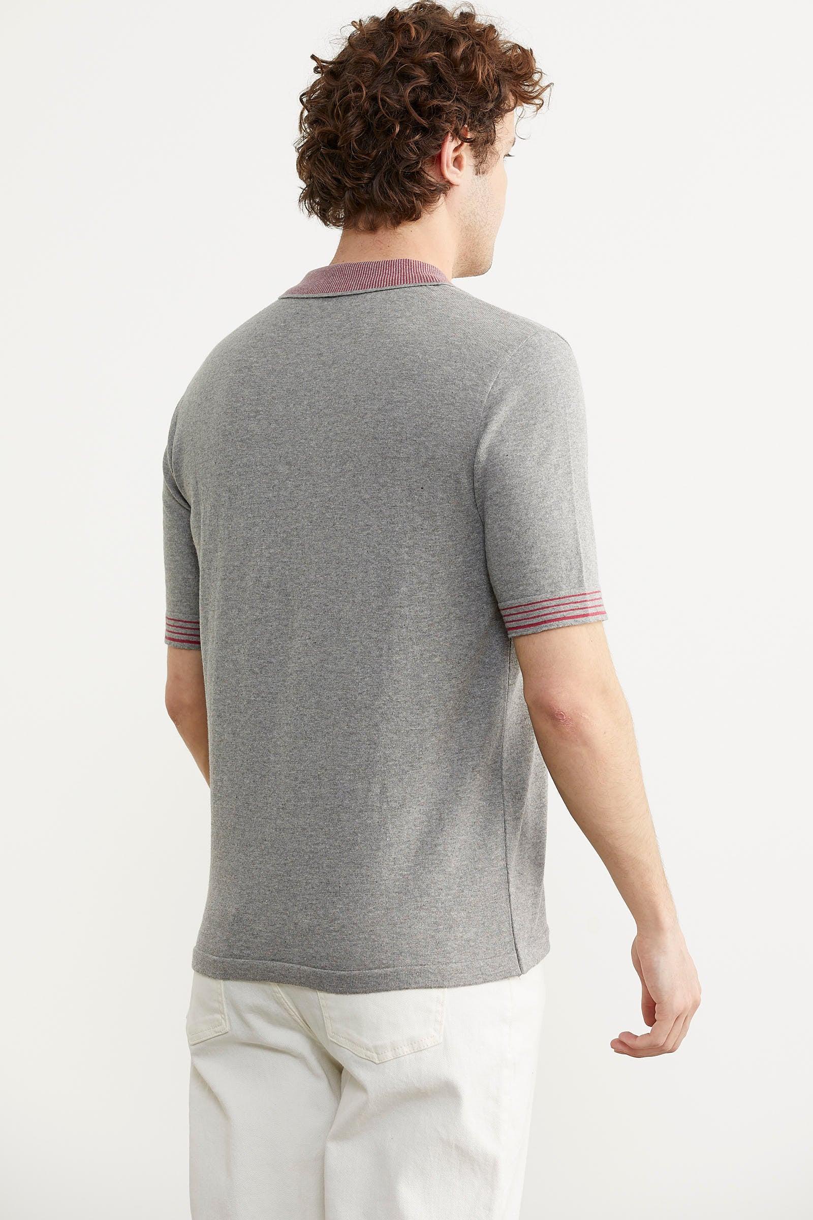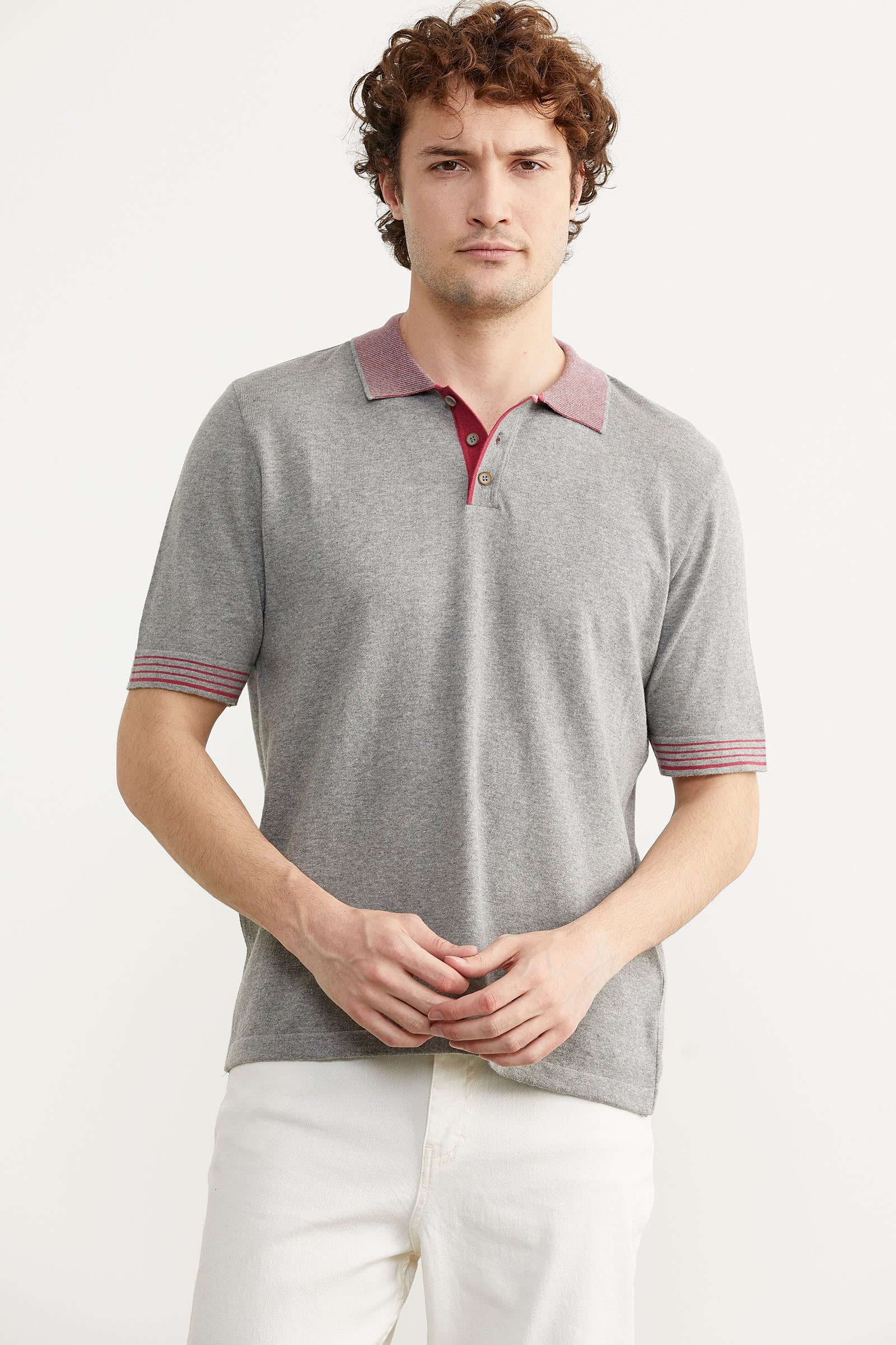 Polo Yaka Kısa Kol Triko Tişört - Gri