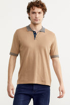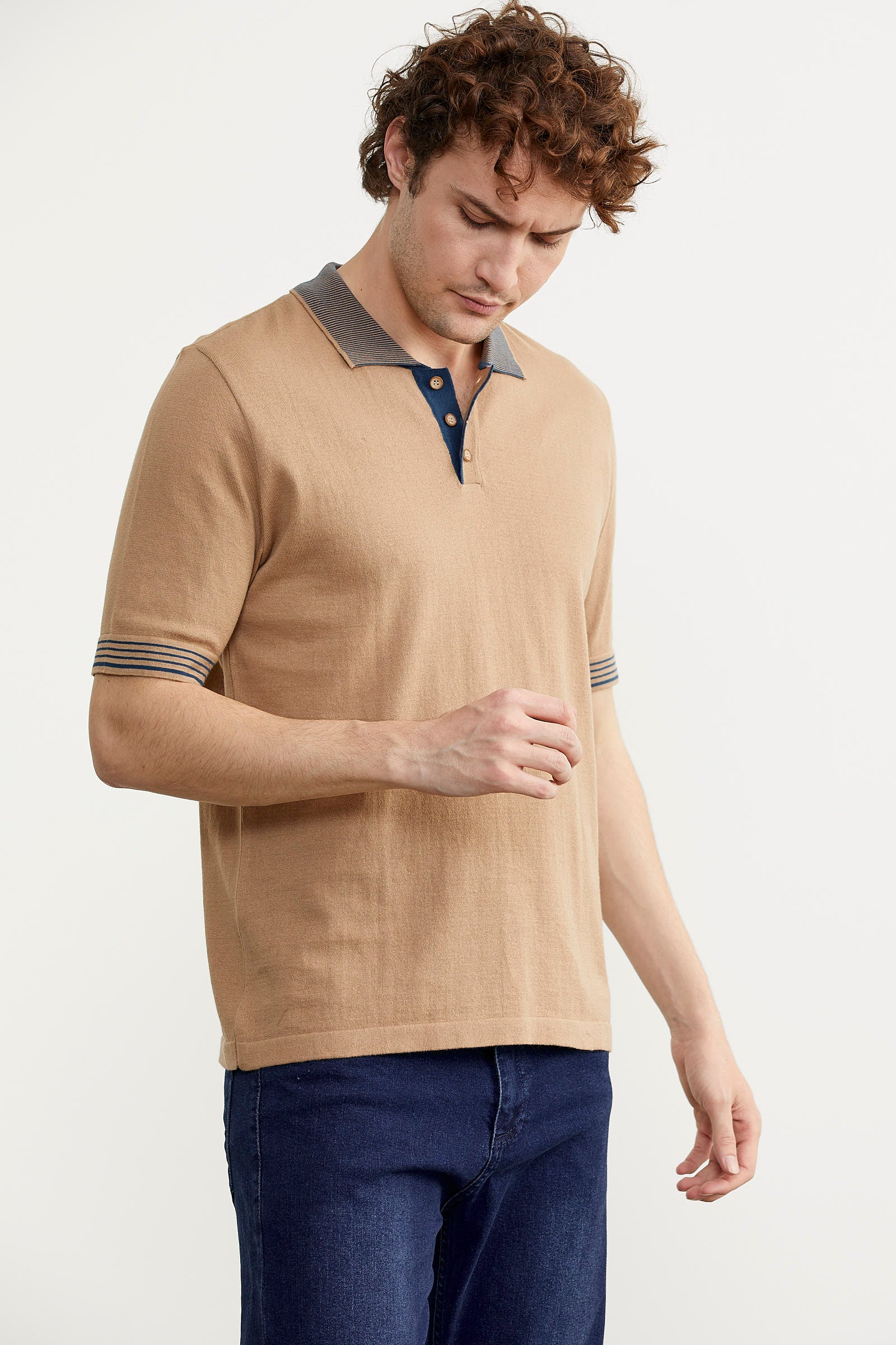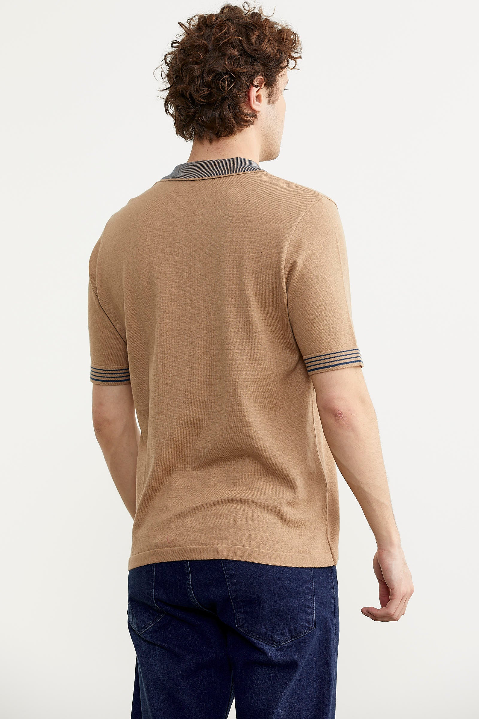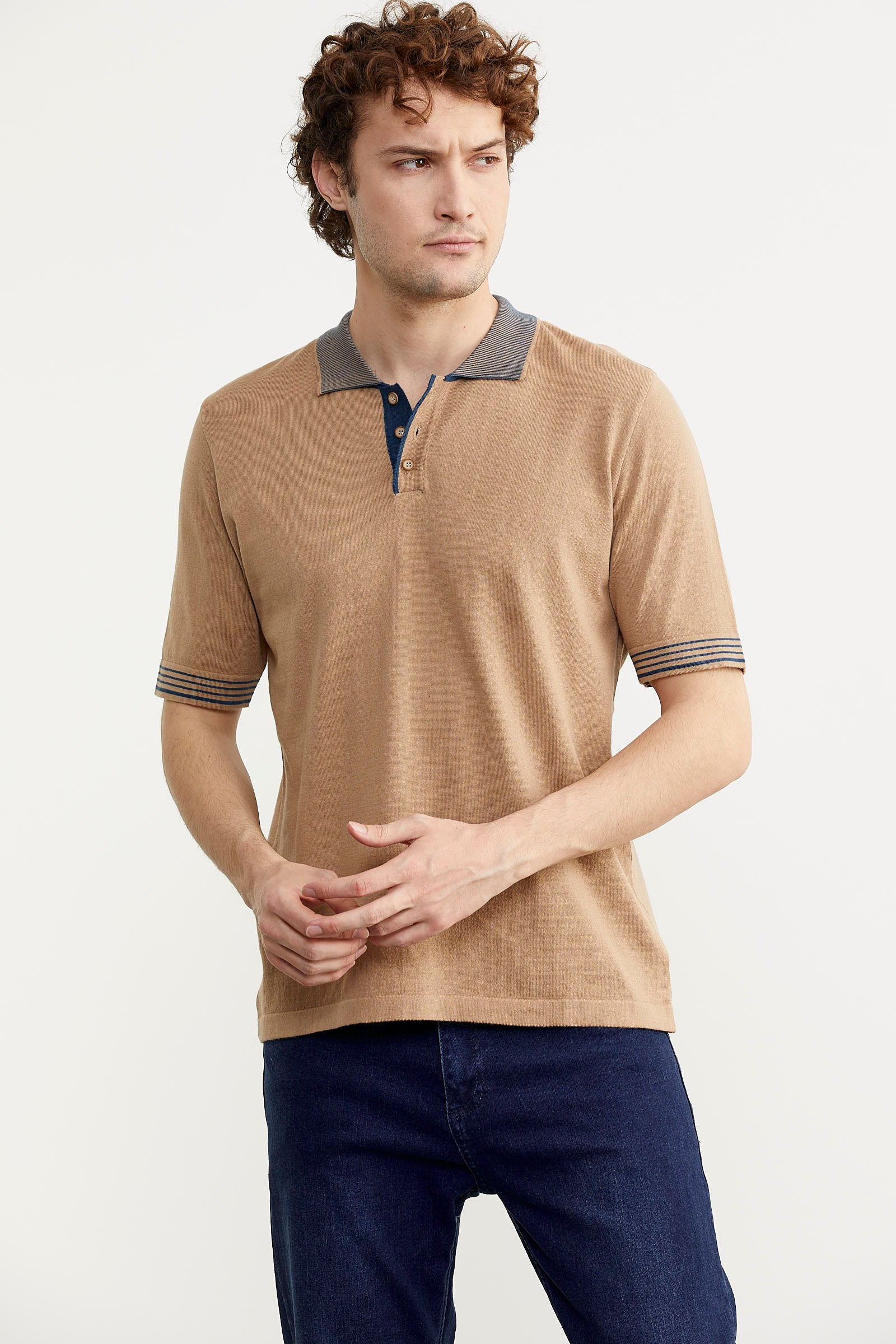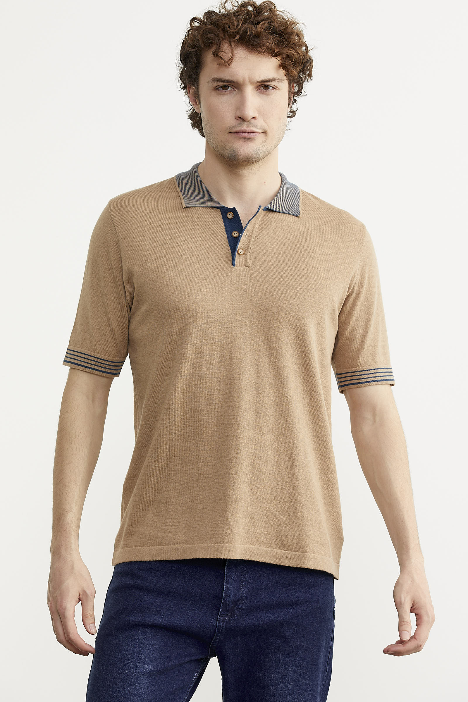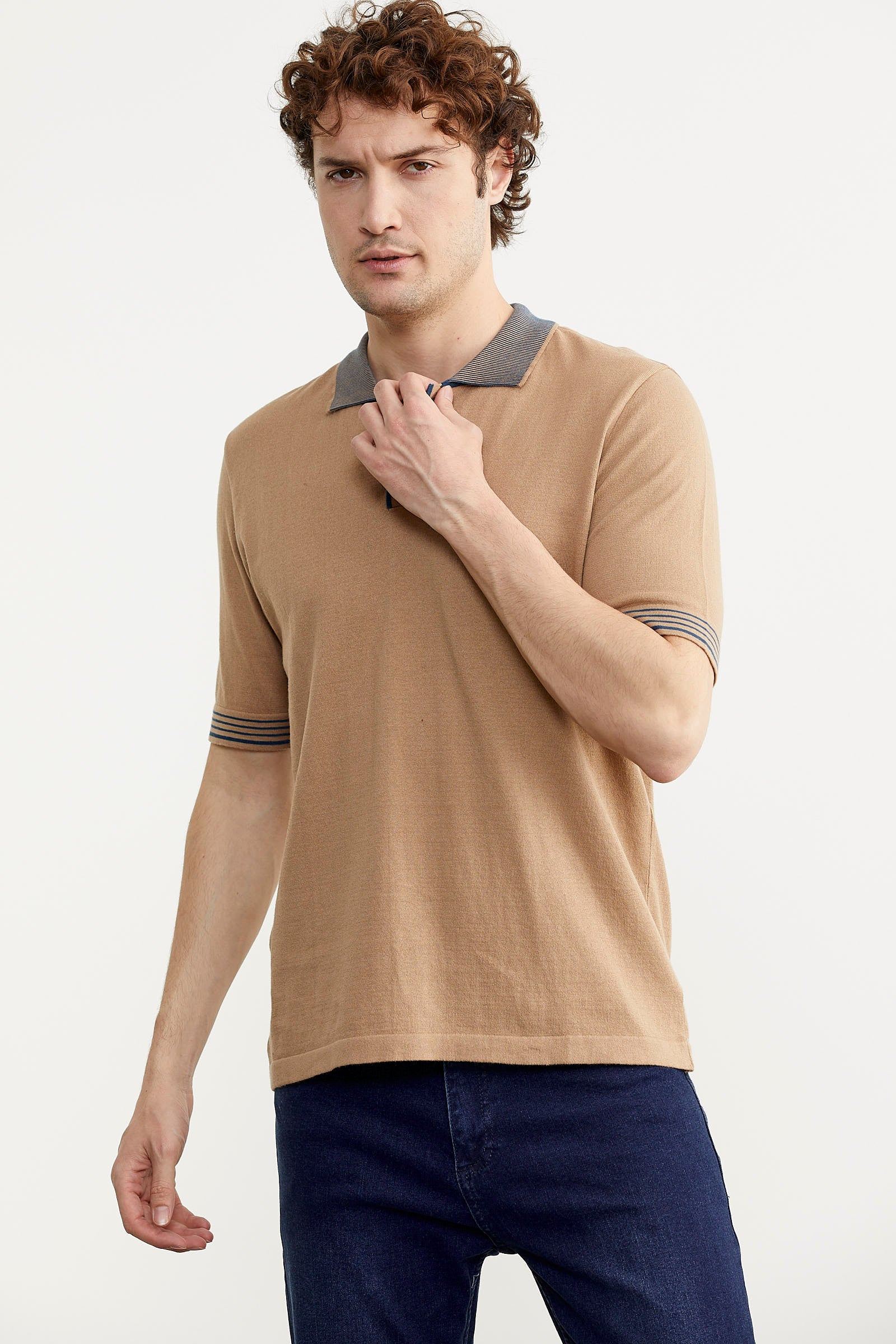 Polo Yaka Kısa Kol Triko Tişört - Kamel