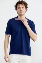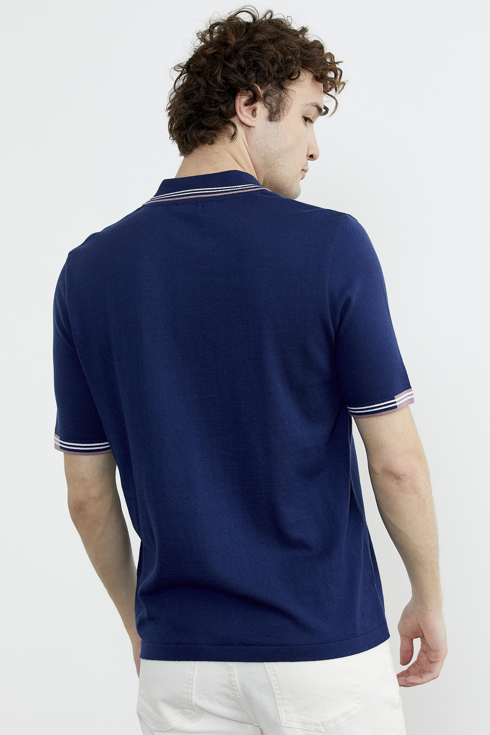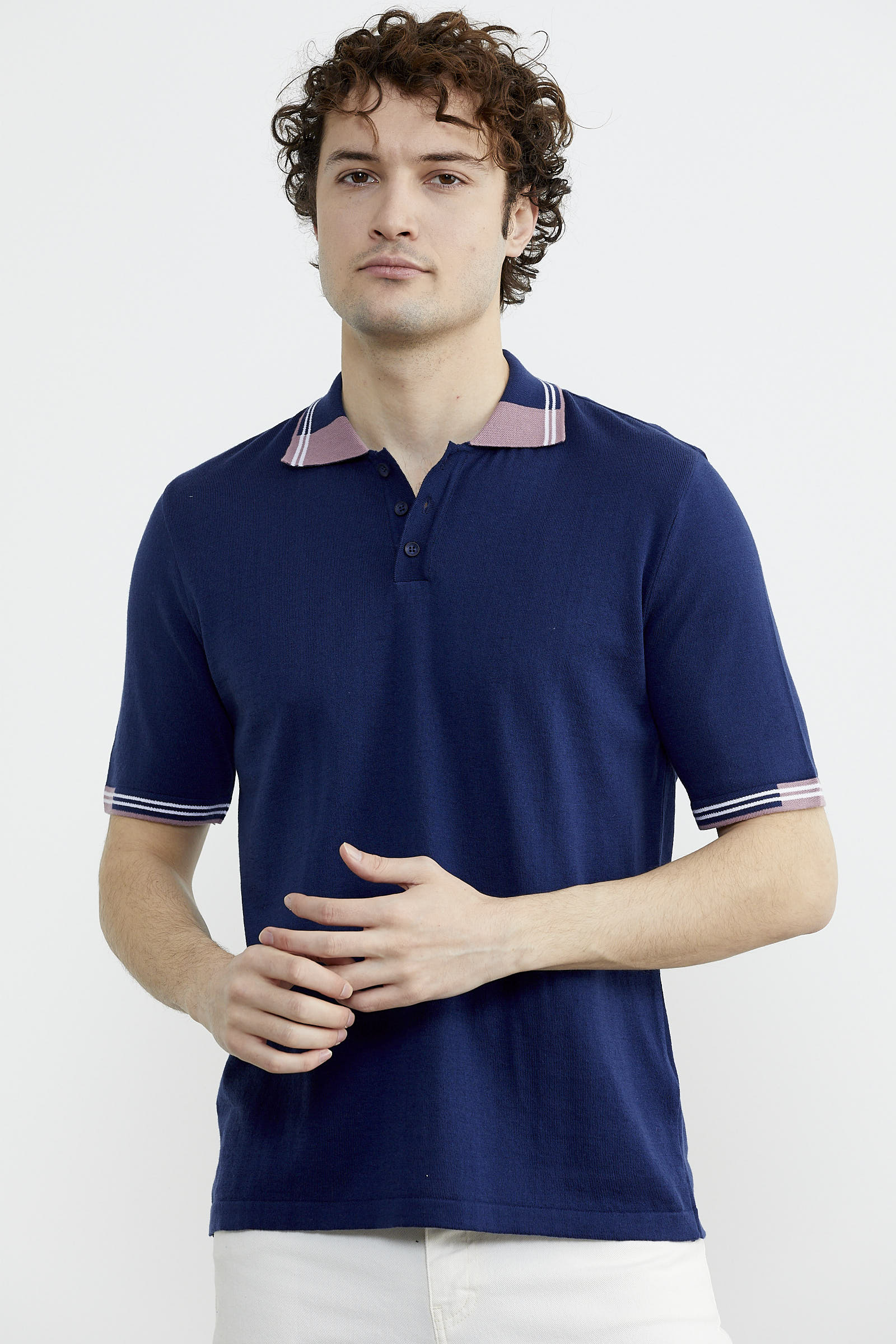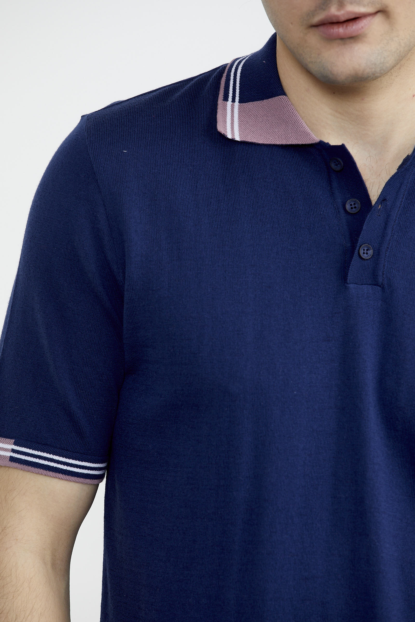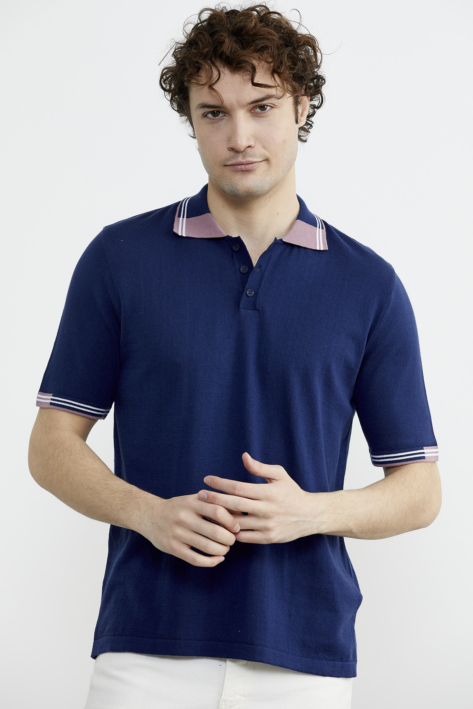Polo Yaka Kısa Kol Triko Tişört - Lacivert