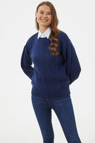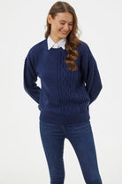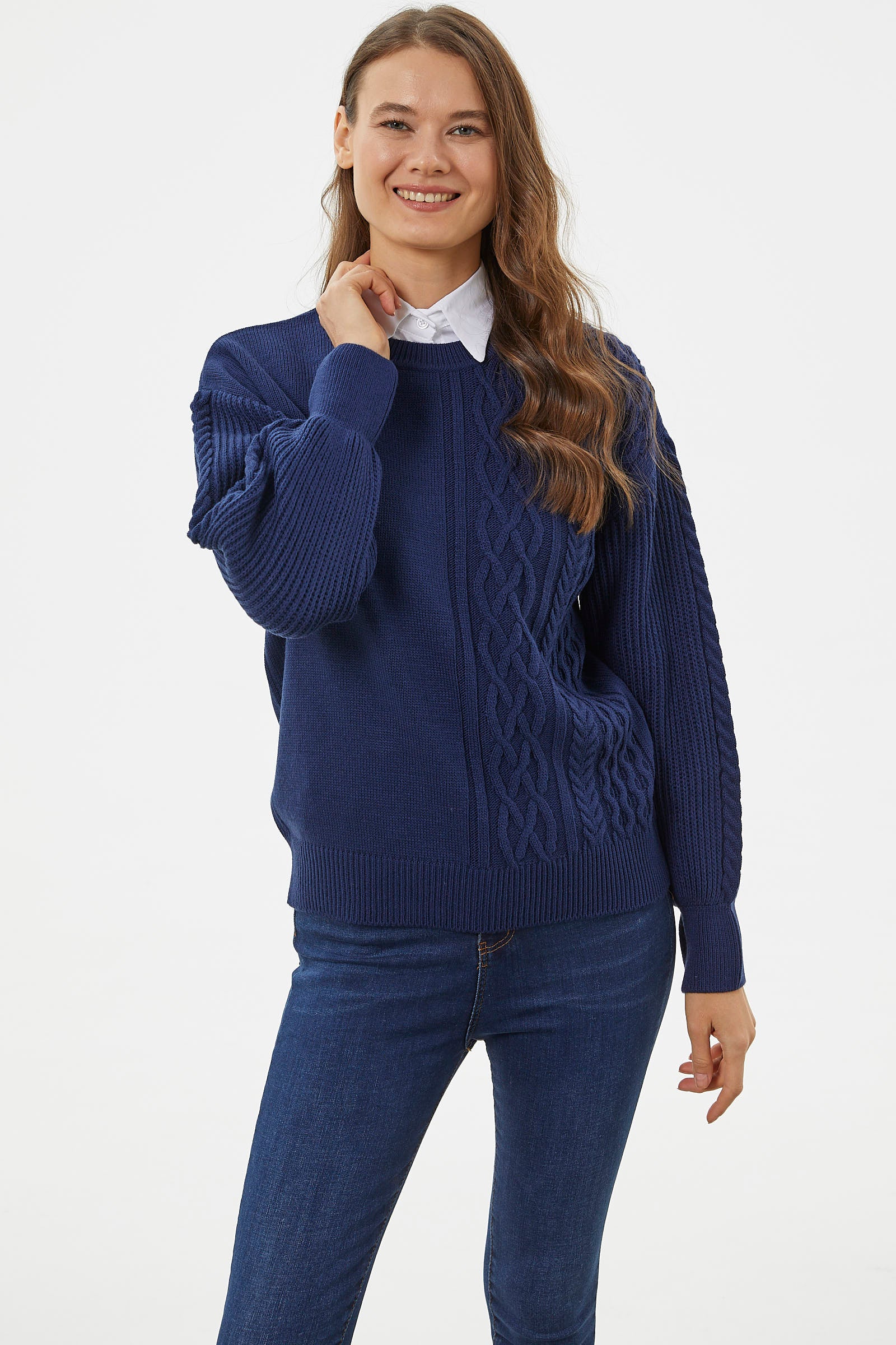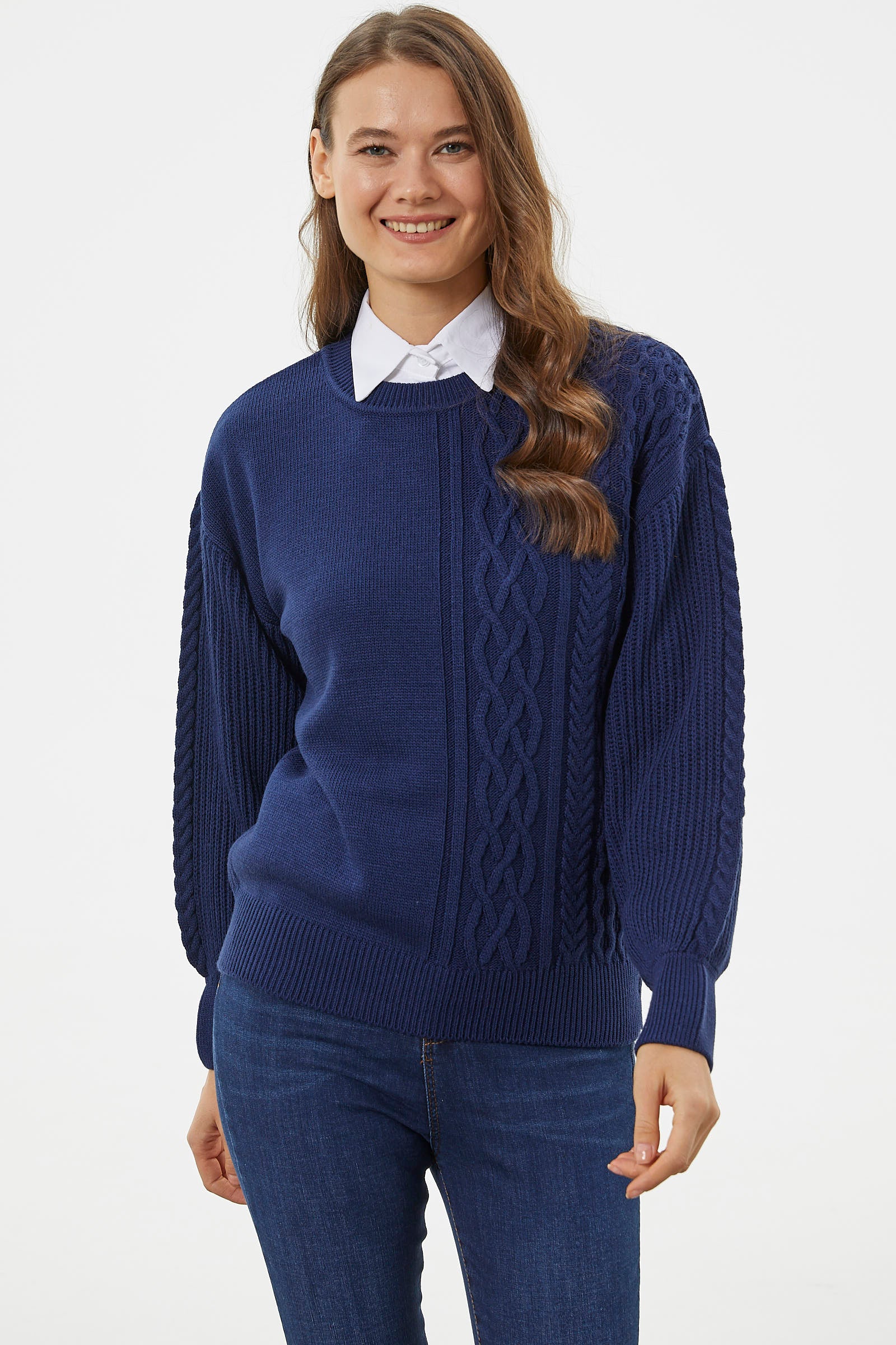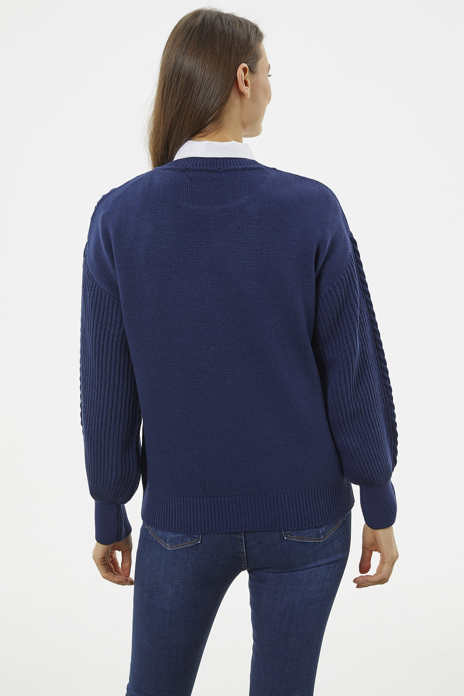 Prenses Kol Örgü Detaylı Triko Kazak - Lacivert