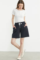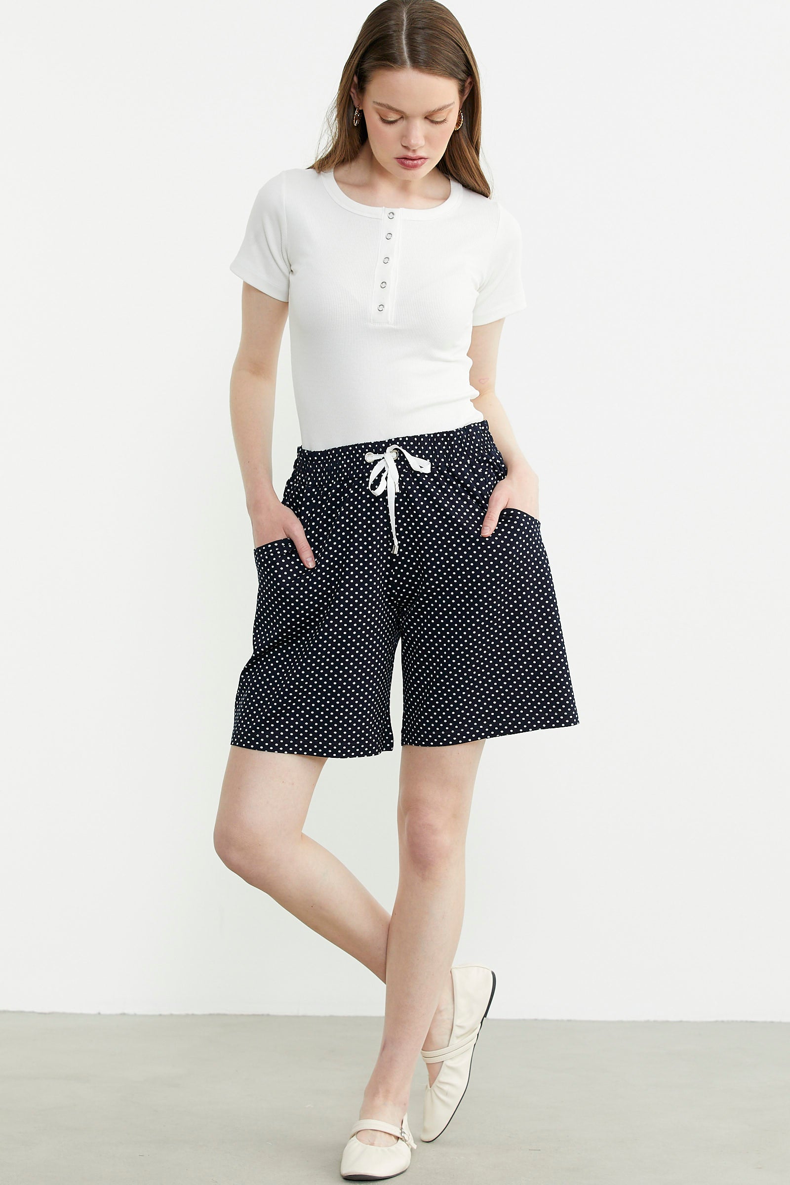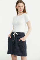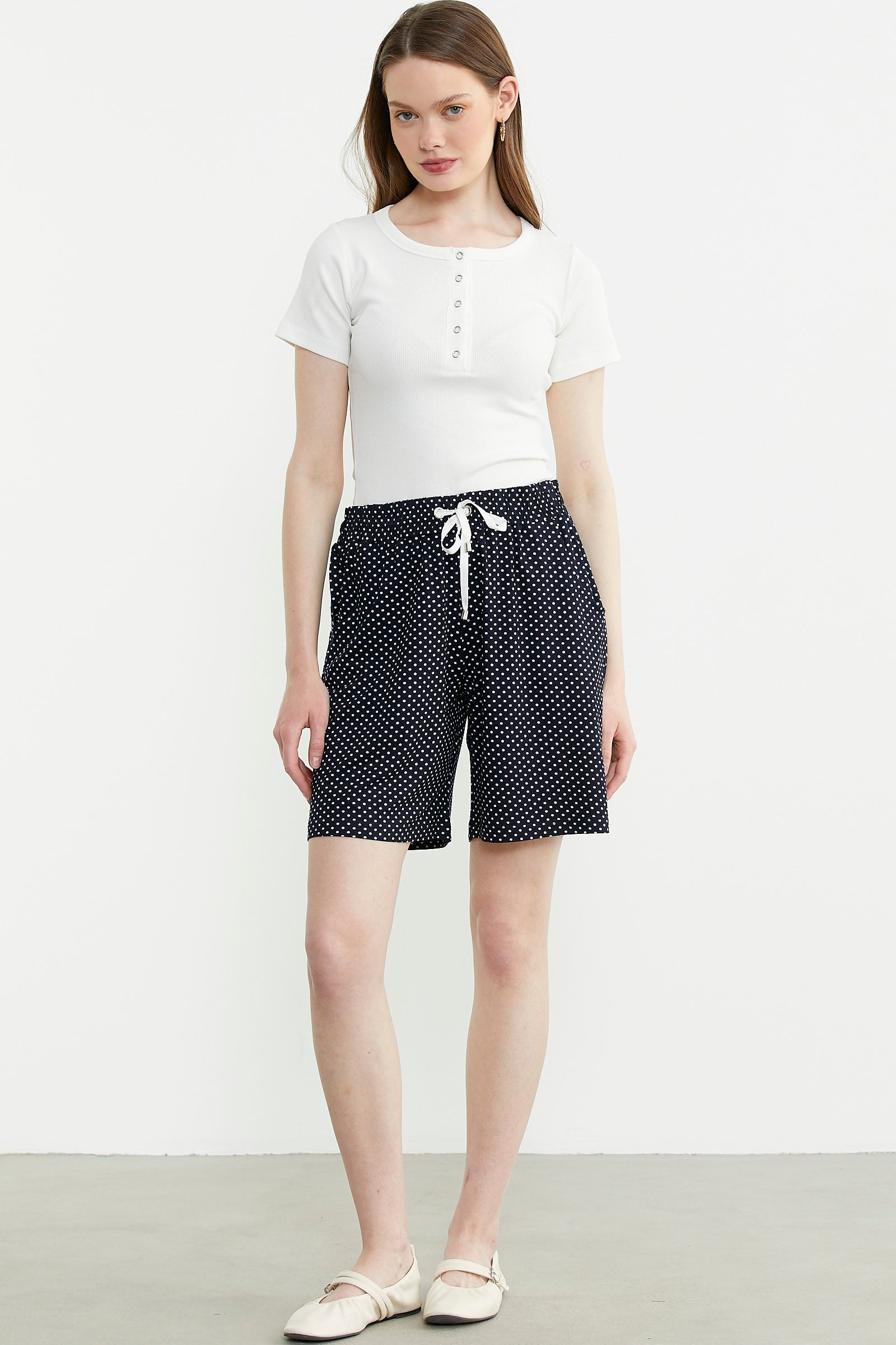 Puantiye Desenli Beli Lastikli Şort - Lacivert
