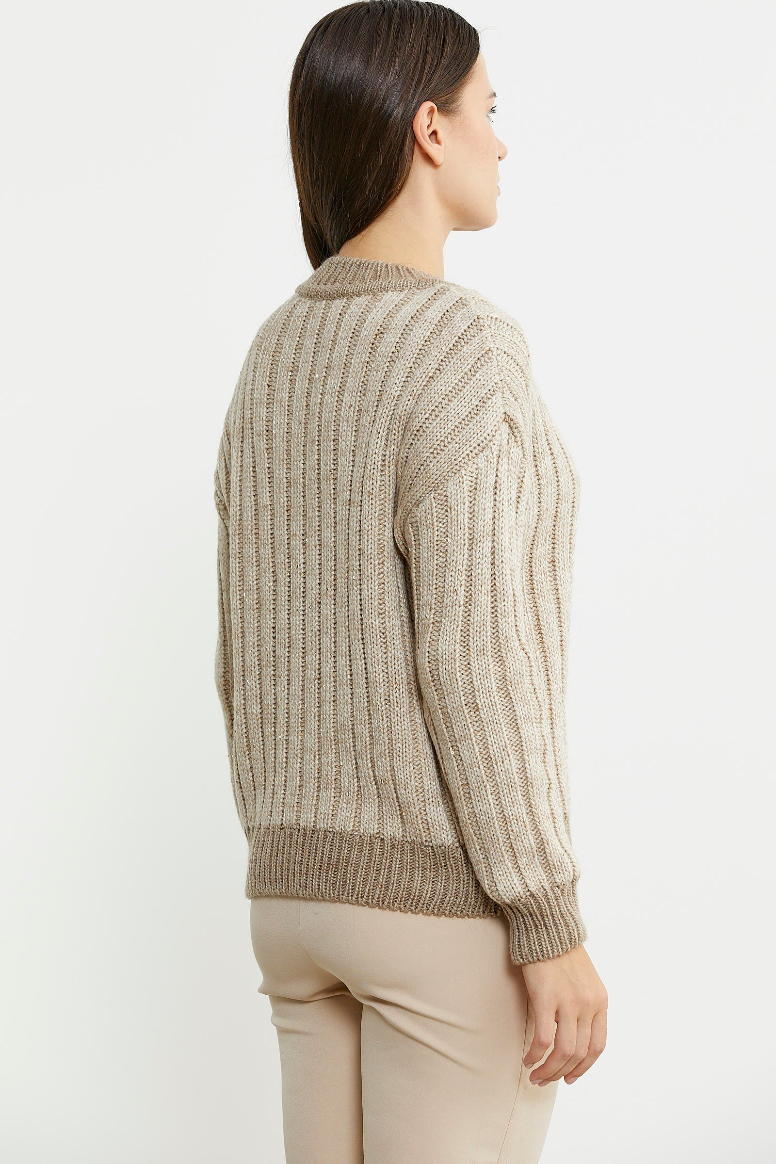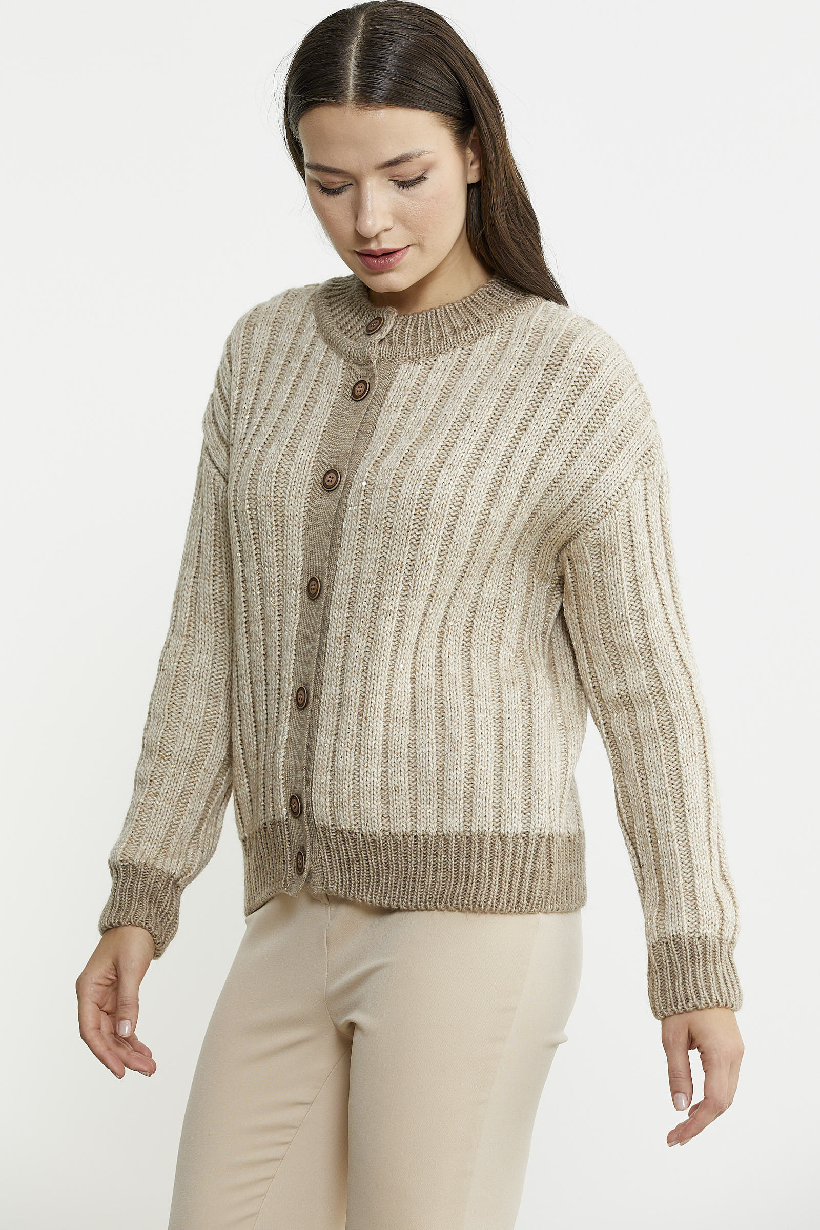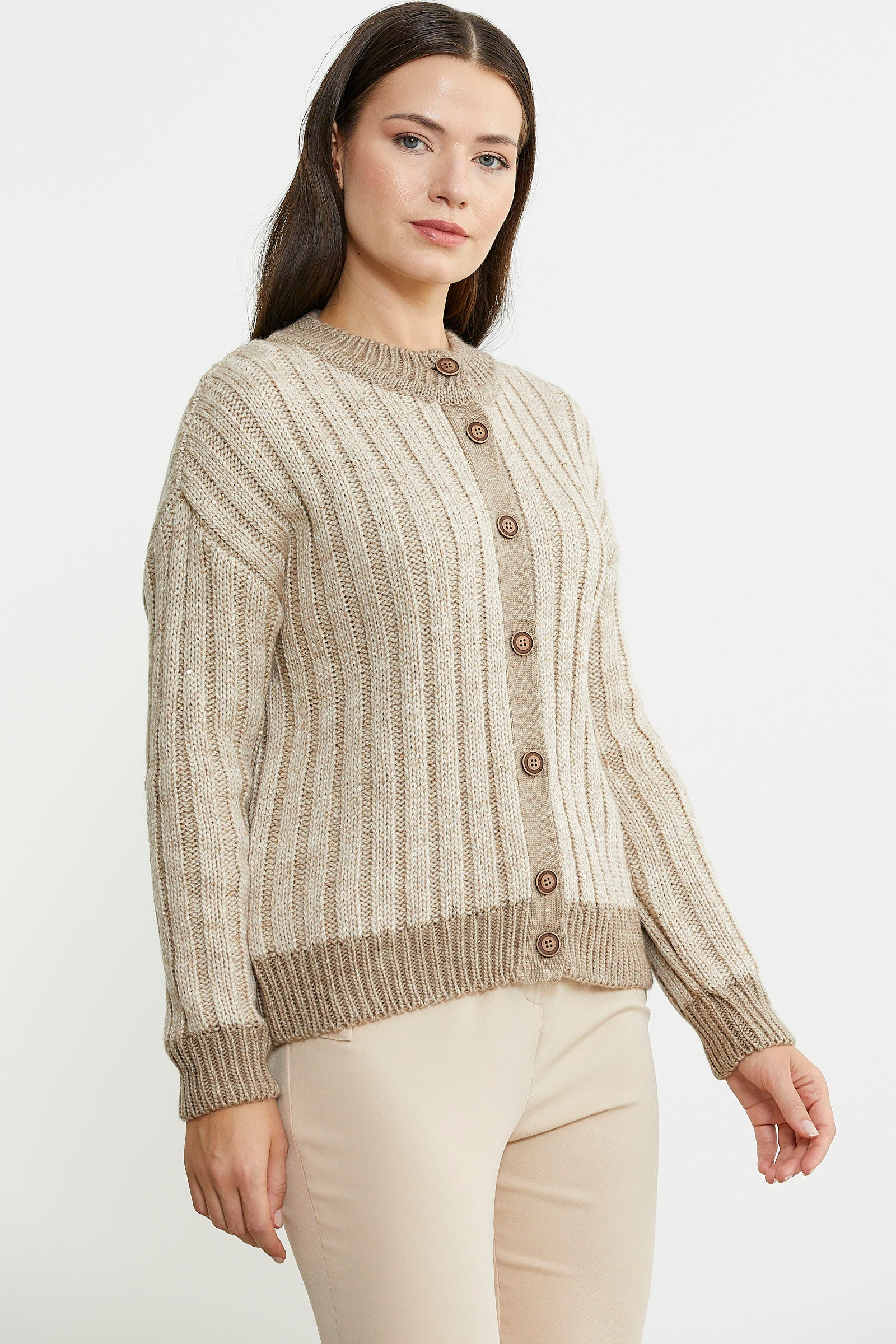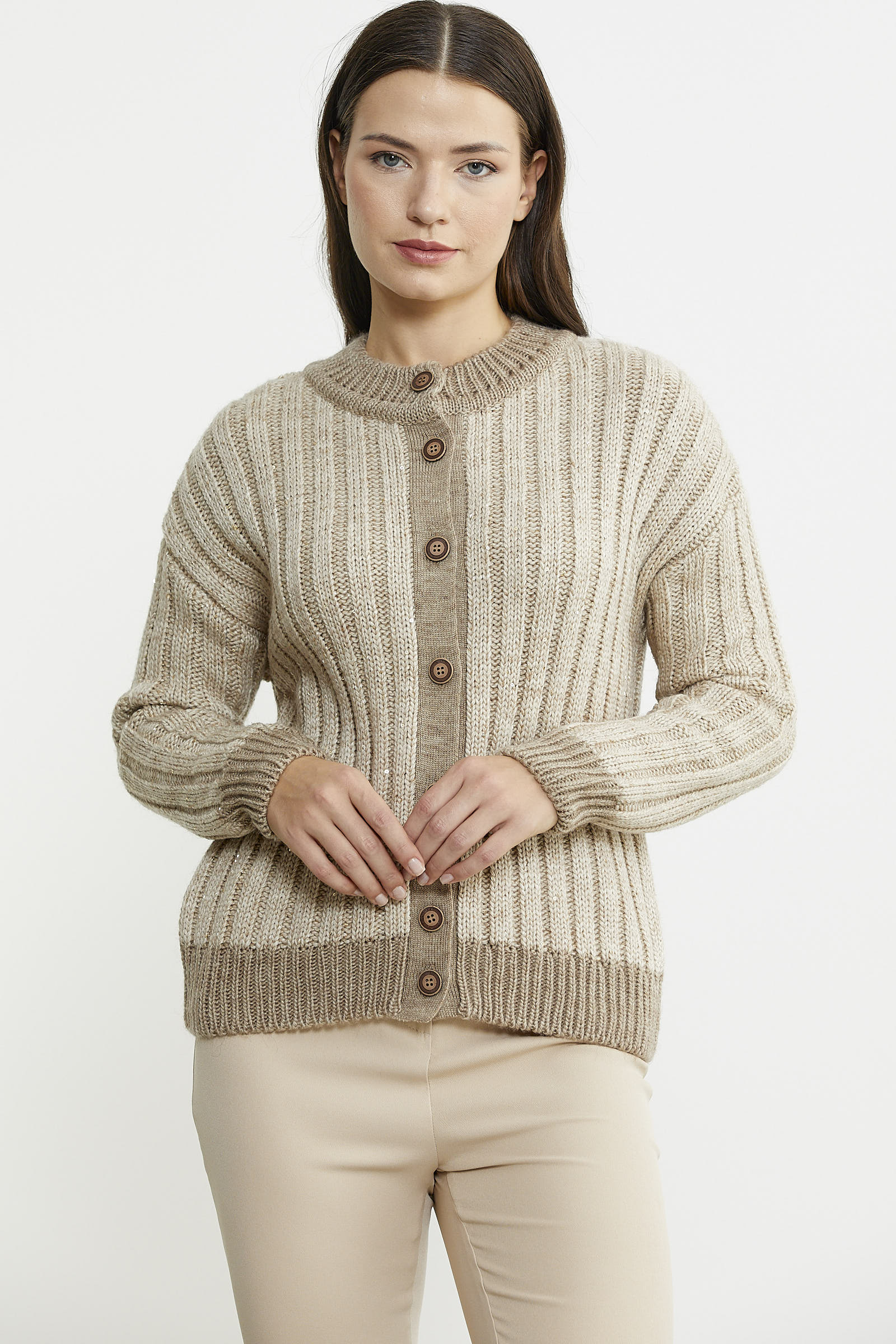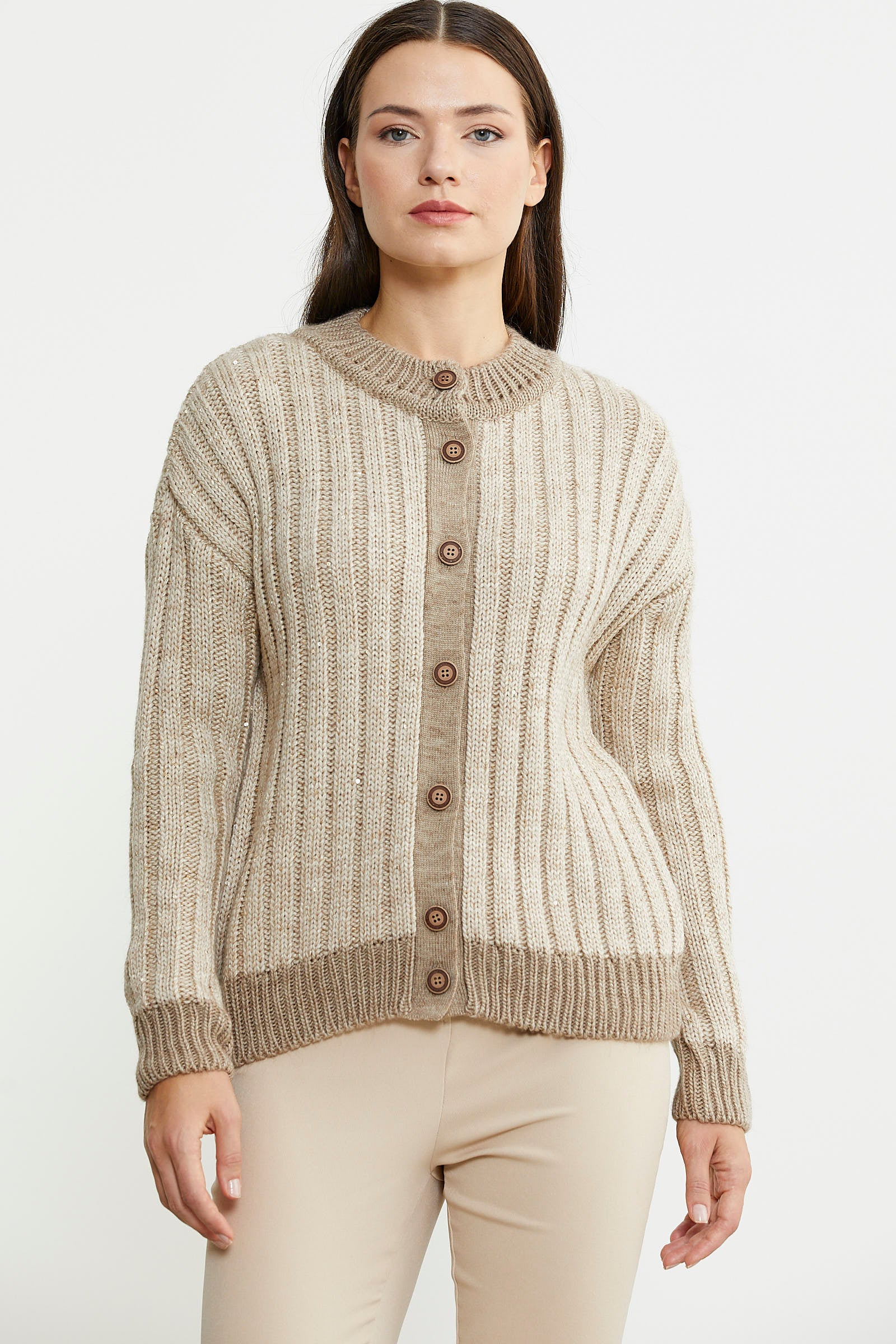 Pul Payet Detaylı Yünlü Triko Hırka - Bej