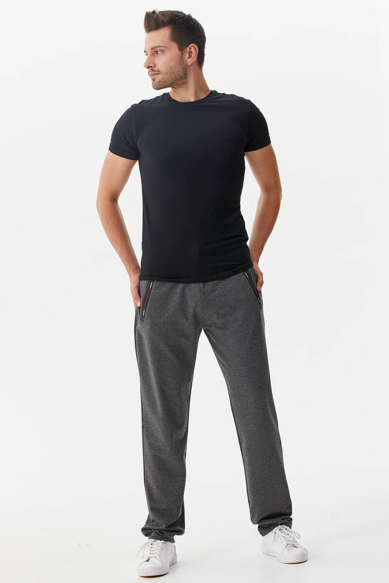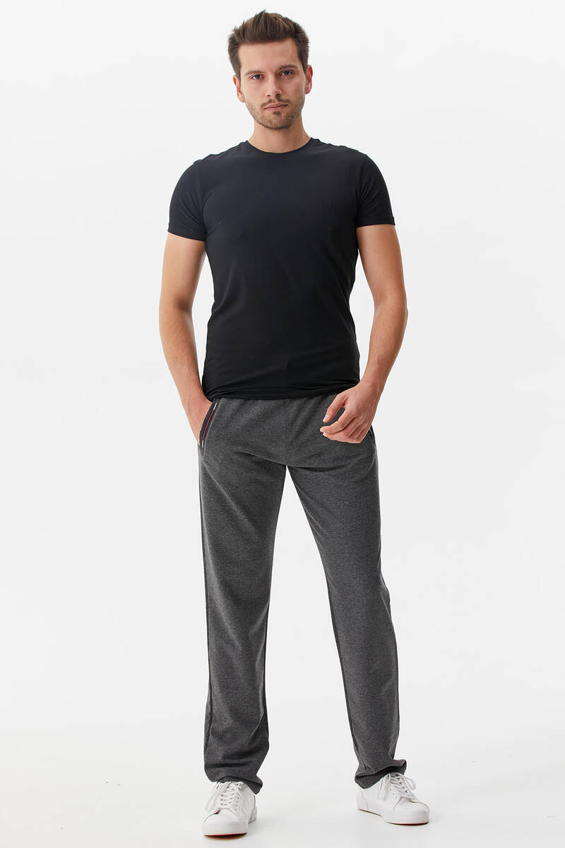 Yumuşak pamuk karışımlı kumaştan oluşan, rahat kesim ve lastikli ayarlanabilir bel bandına sahip eşofman altı.