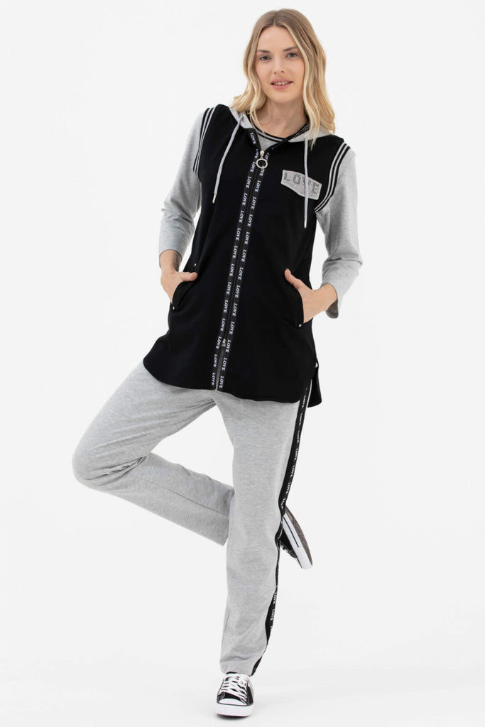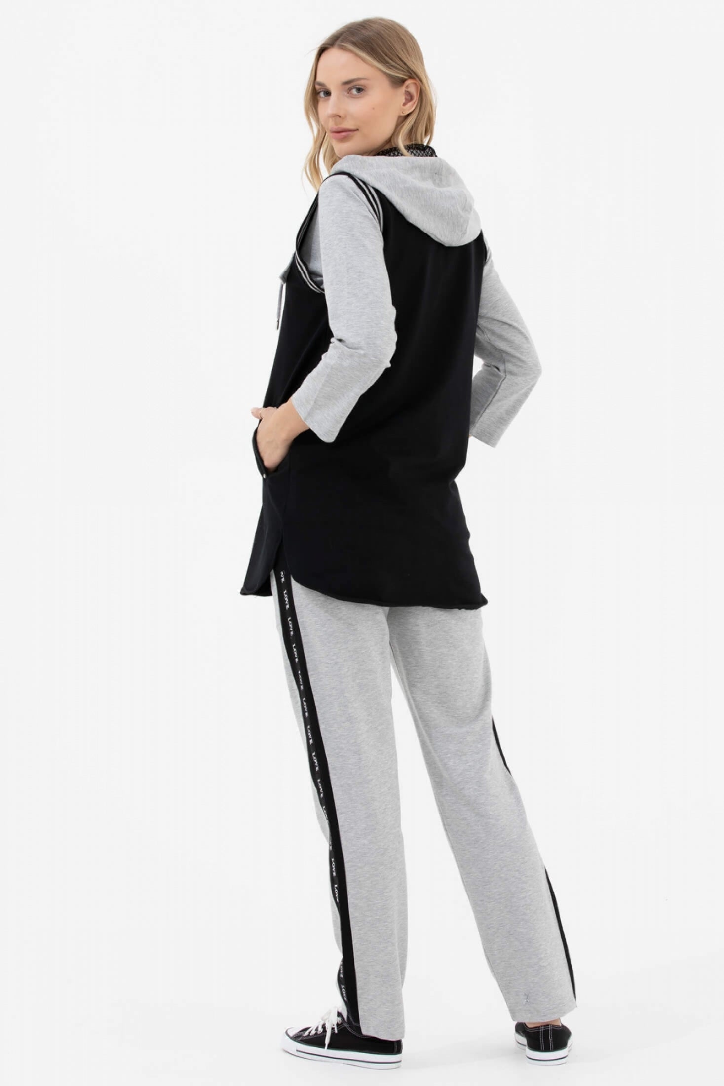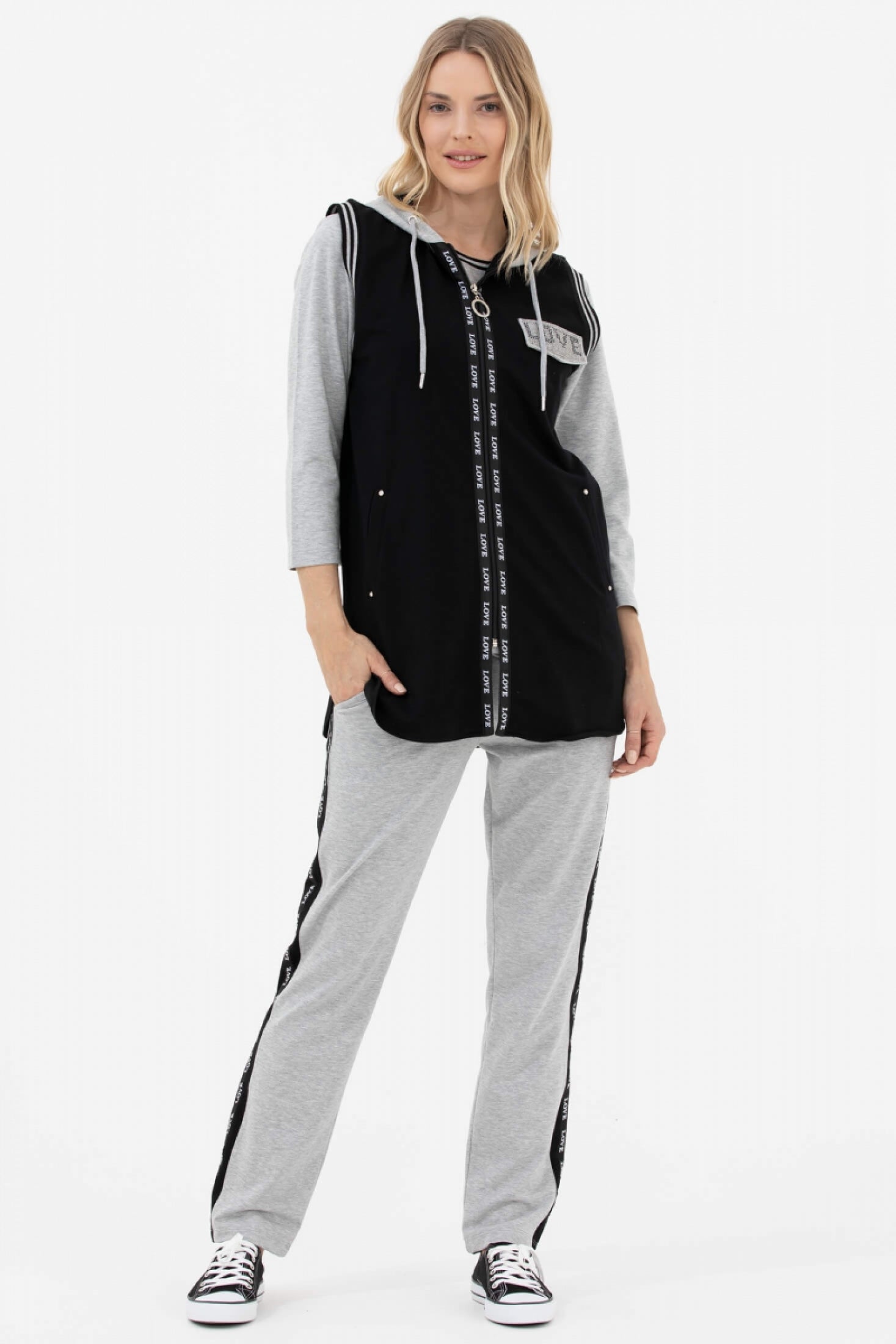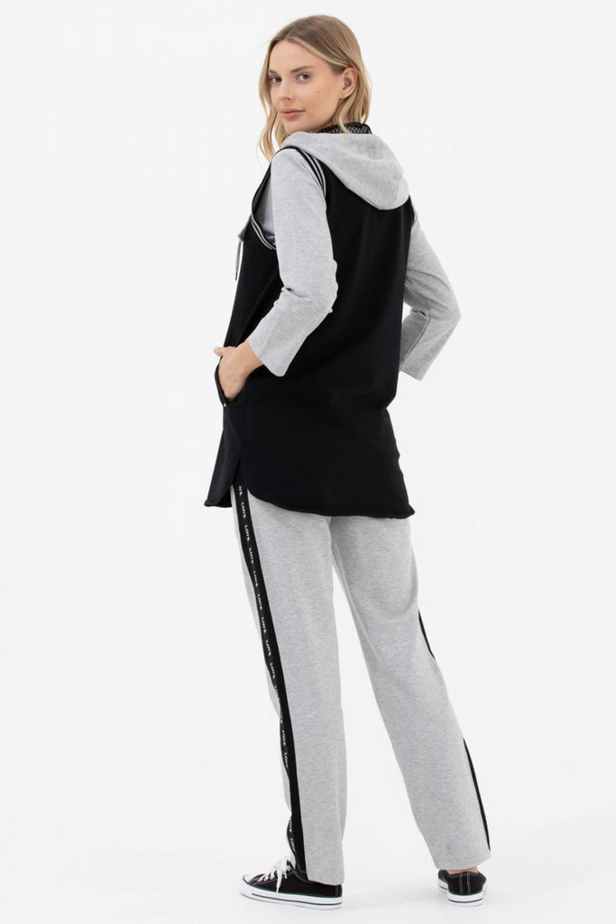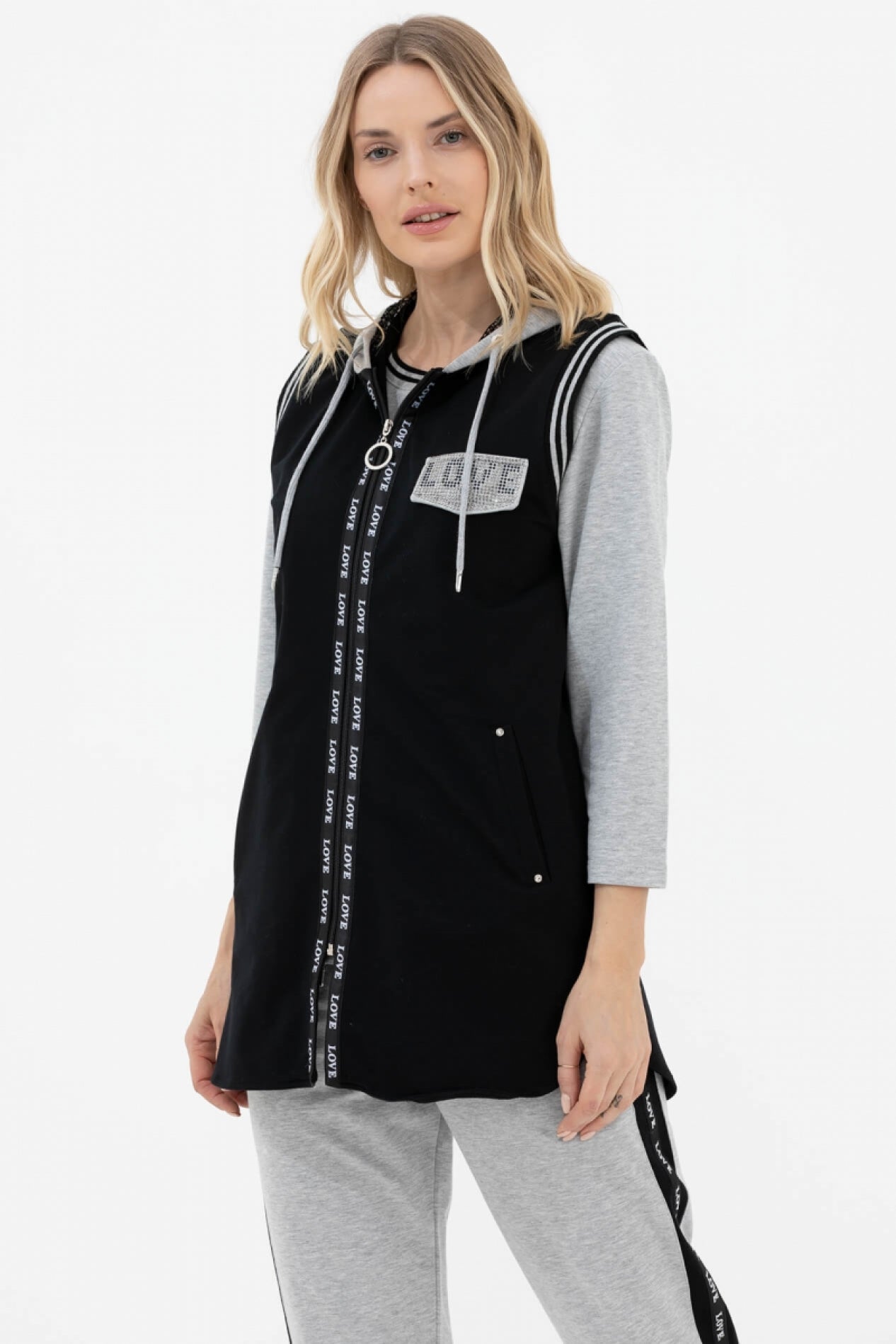 Rahat Kalıp Taşlı Yelekli Eşofman Takım - Siyah - Gri