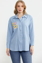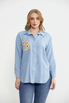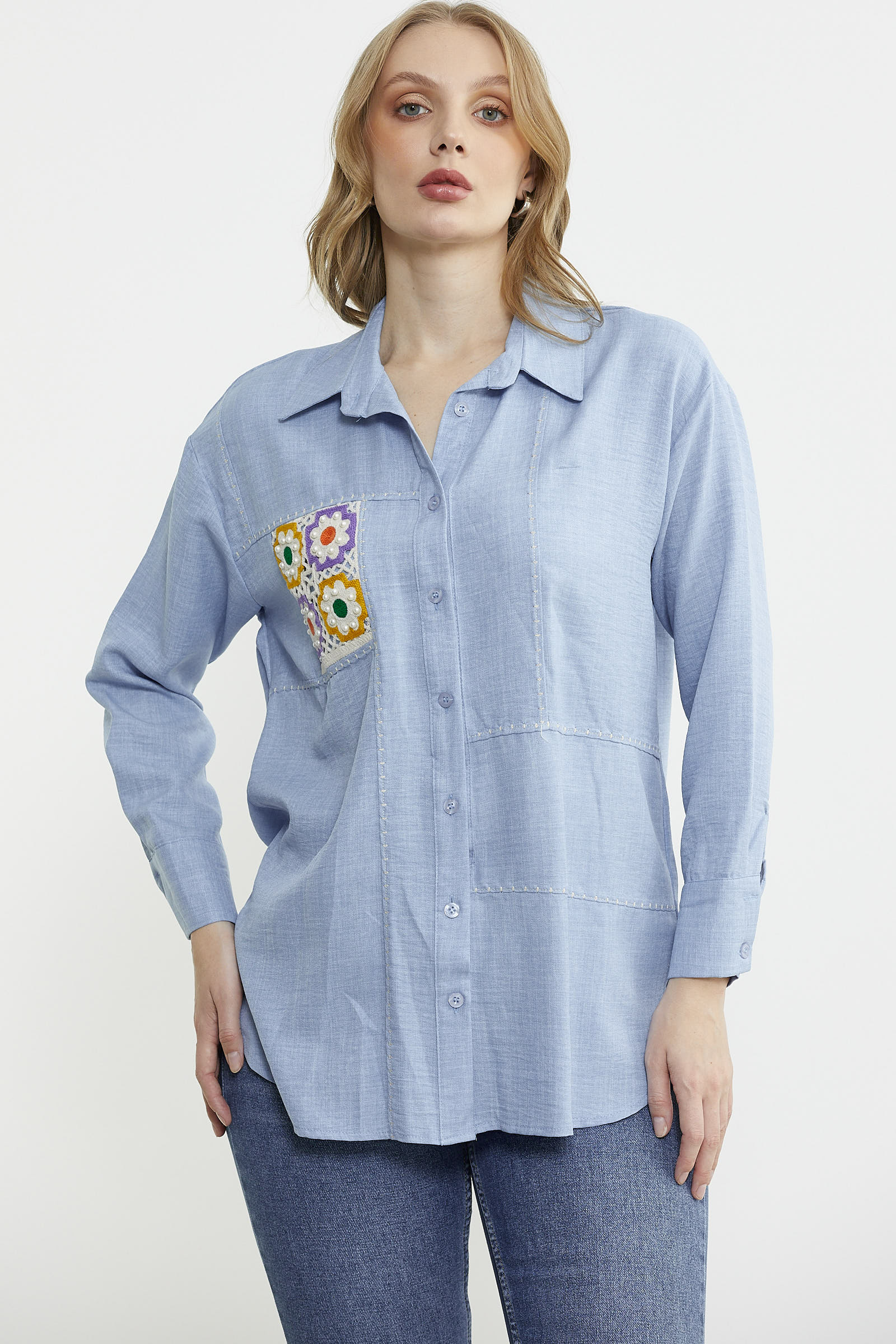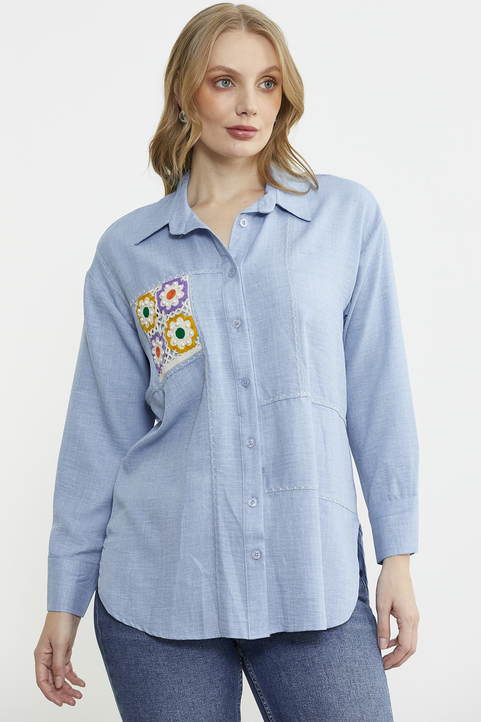 Renkli Dantel Detaylı Tunik Gömlek - Mavi