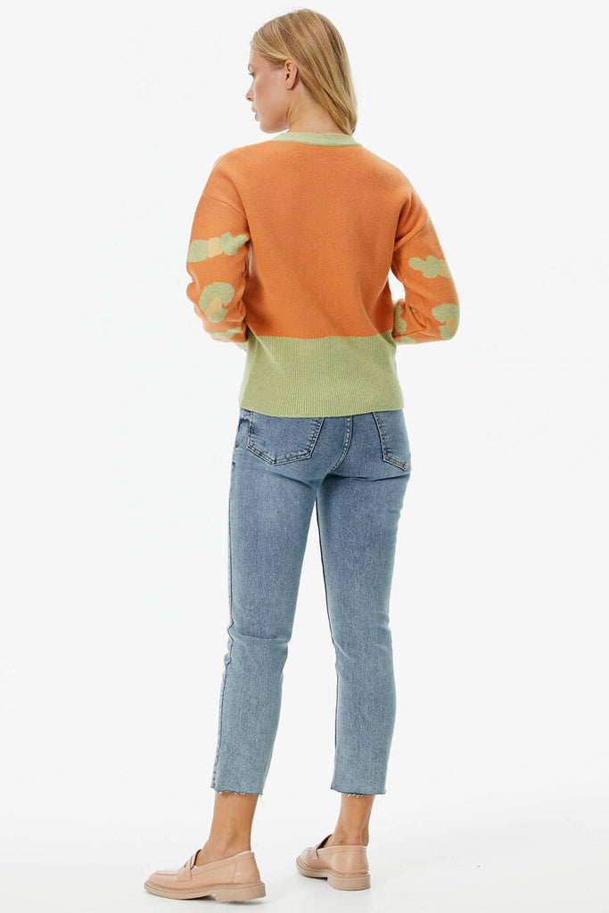 Düğmeli, desenli, kol ağızları ve etek ucu lastik örgülü, v yaka modeli ve rahat kullanımlı triko hırka. Yüksek bel pantolonlarınızla kolayca kombinleyebileceğiniz, içine giydiğiniz triko crop top ve gömlekle mükemmel bir uyum yakalayabileceğiniz, basic kombinlerinizde stilinize ayrıcalık katacak.