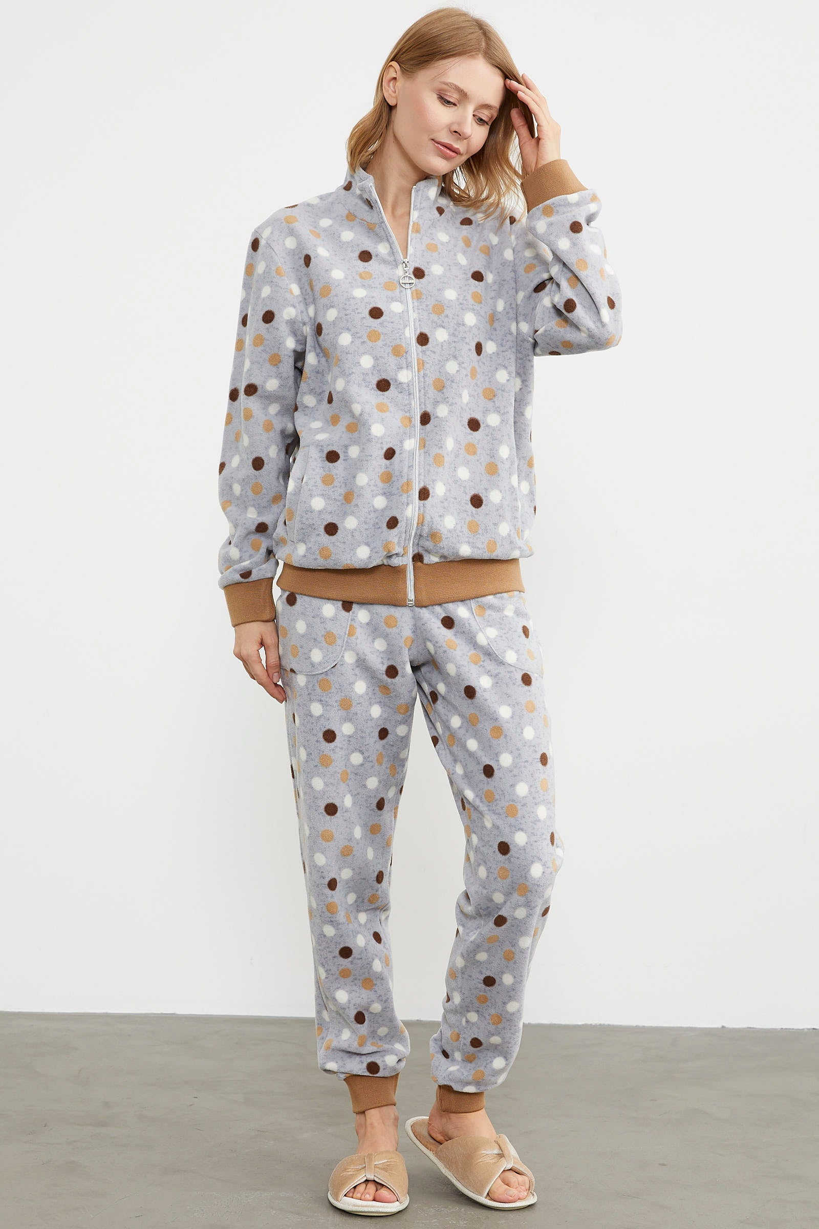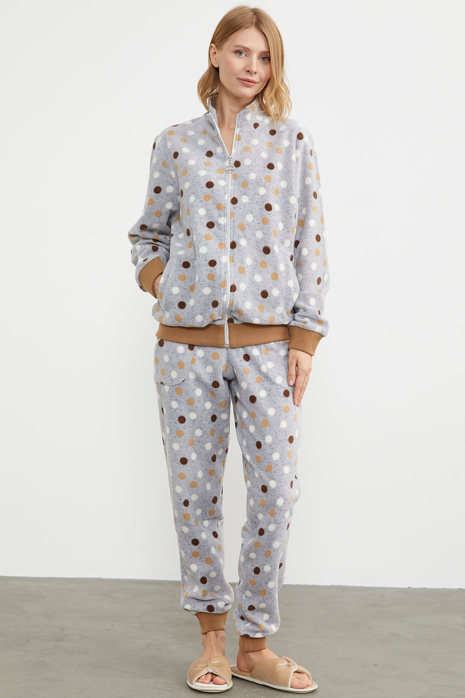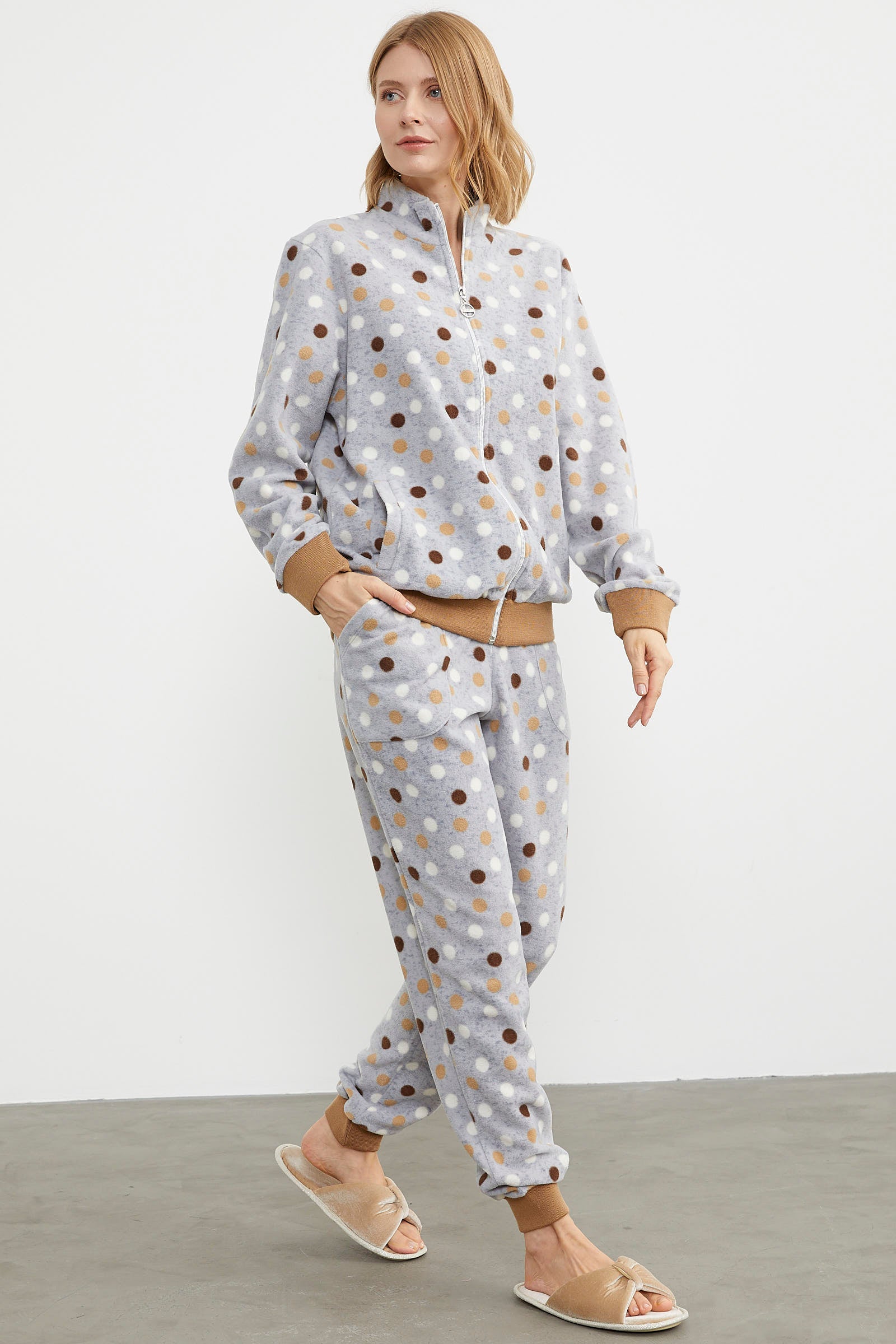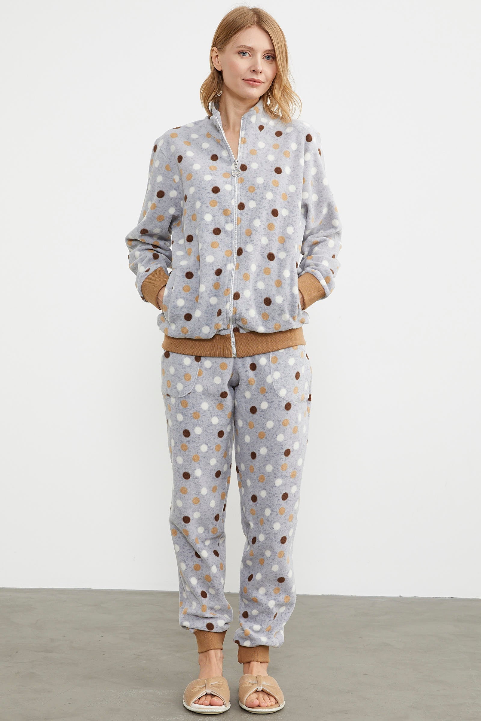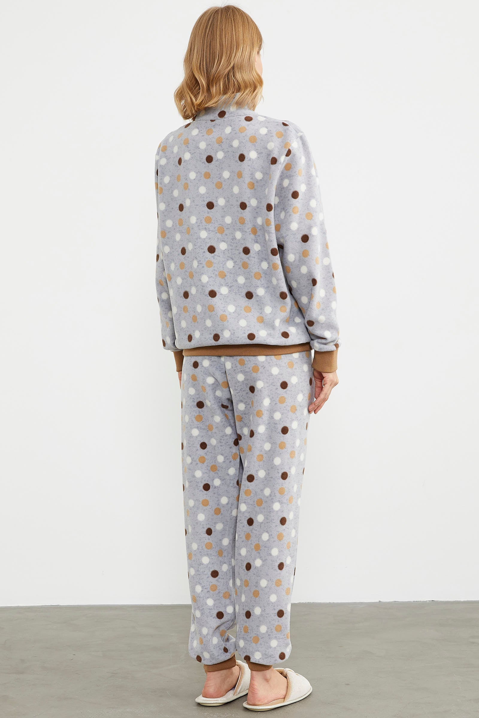 Renkli Puantiyeli Polar Eşofman Takım - Gri
