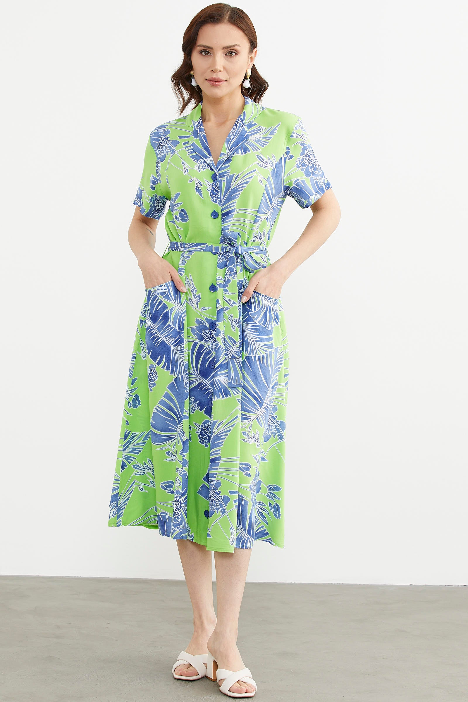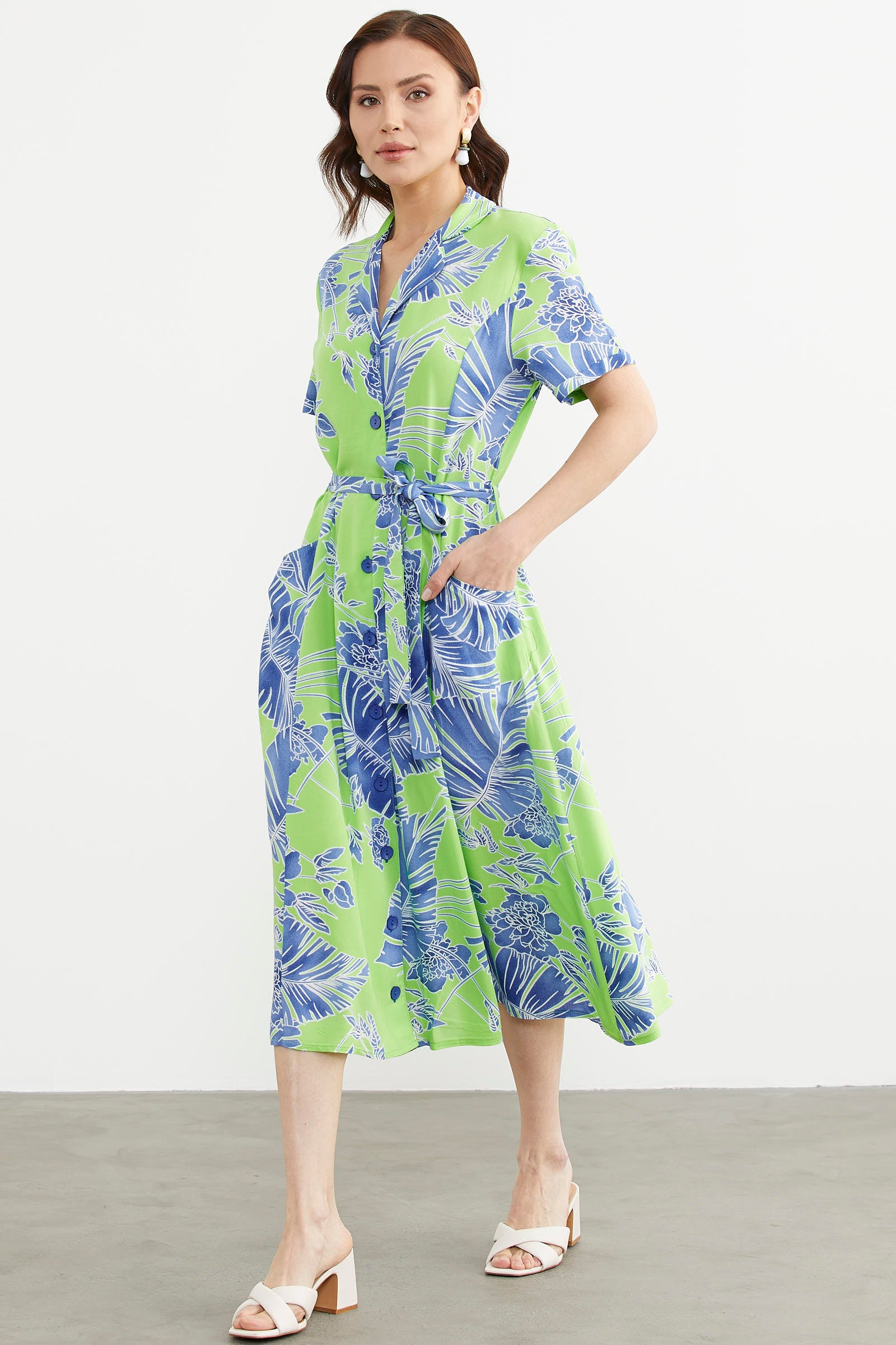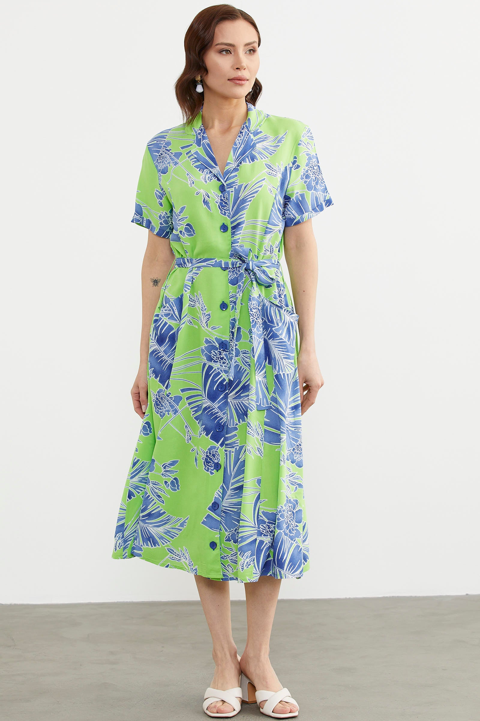 Gömlek elbise deseni ile tarzınızı hareketlendiriyor. Tam boy düğme kapaması ile kullanım kolaylığı sunuyor. Bele göre ayarlanabilir kuşak detayına sahiptir. Ceplidir.