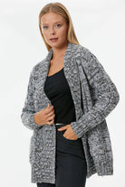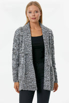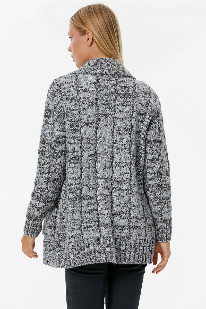 Şal Yaka Saç Örgülü Kırçıllı Triko Hırka - Mavi