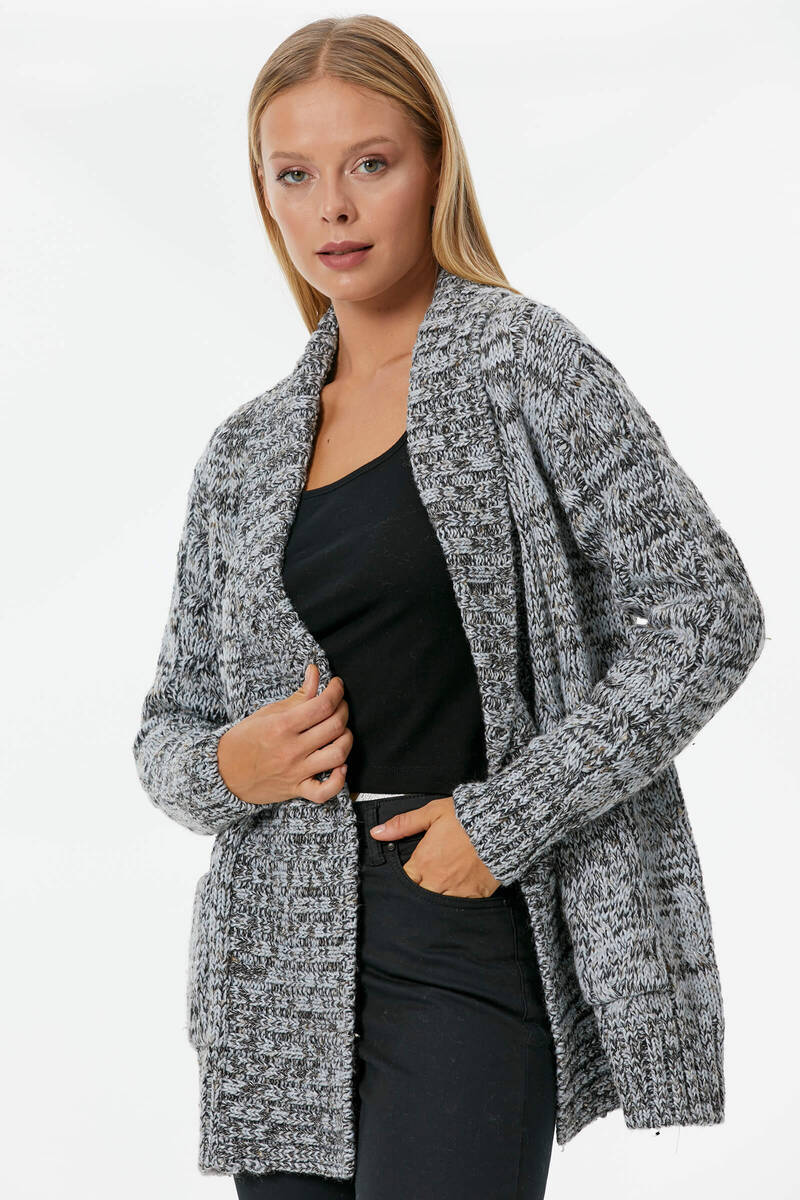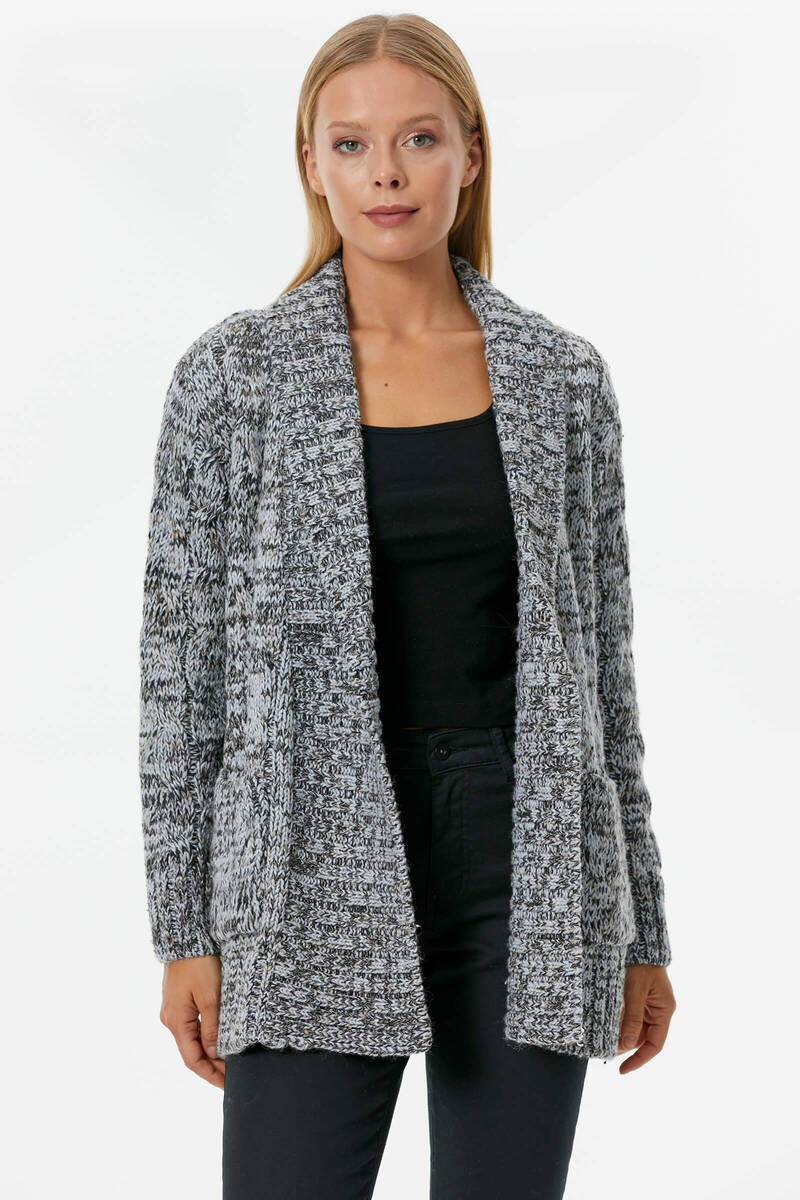 Şal yaka, saç örgülü, cep detaylı triko hırka. Geleneksel bir kültürümüz olan hırka her sezon olduğu gibi farklı boy ve dokularla bu sezonda popülerliğini koruyor. Özellikle bu boy iddiasız olan modeller sokak stilinizde tamamlayıcı star parçanız olacak.
