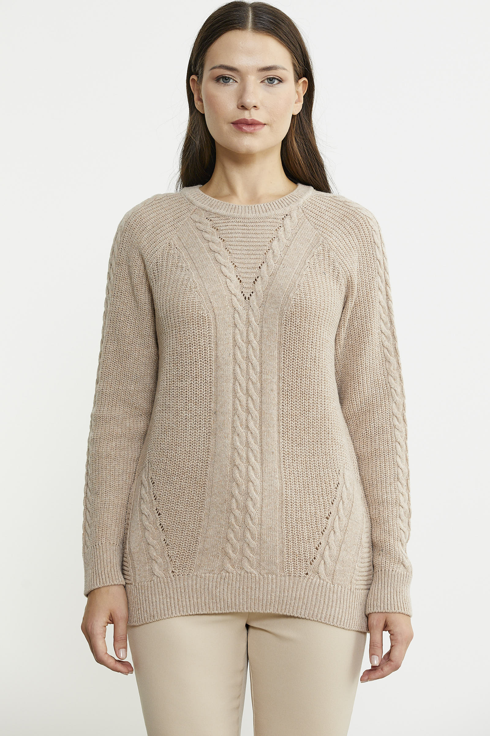 Salaş Motifli Yünlü Triko Kazak - Vizon