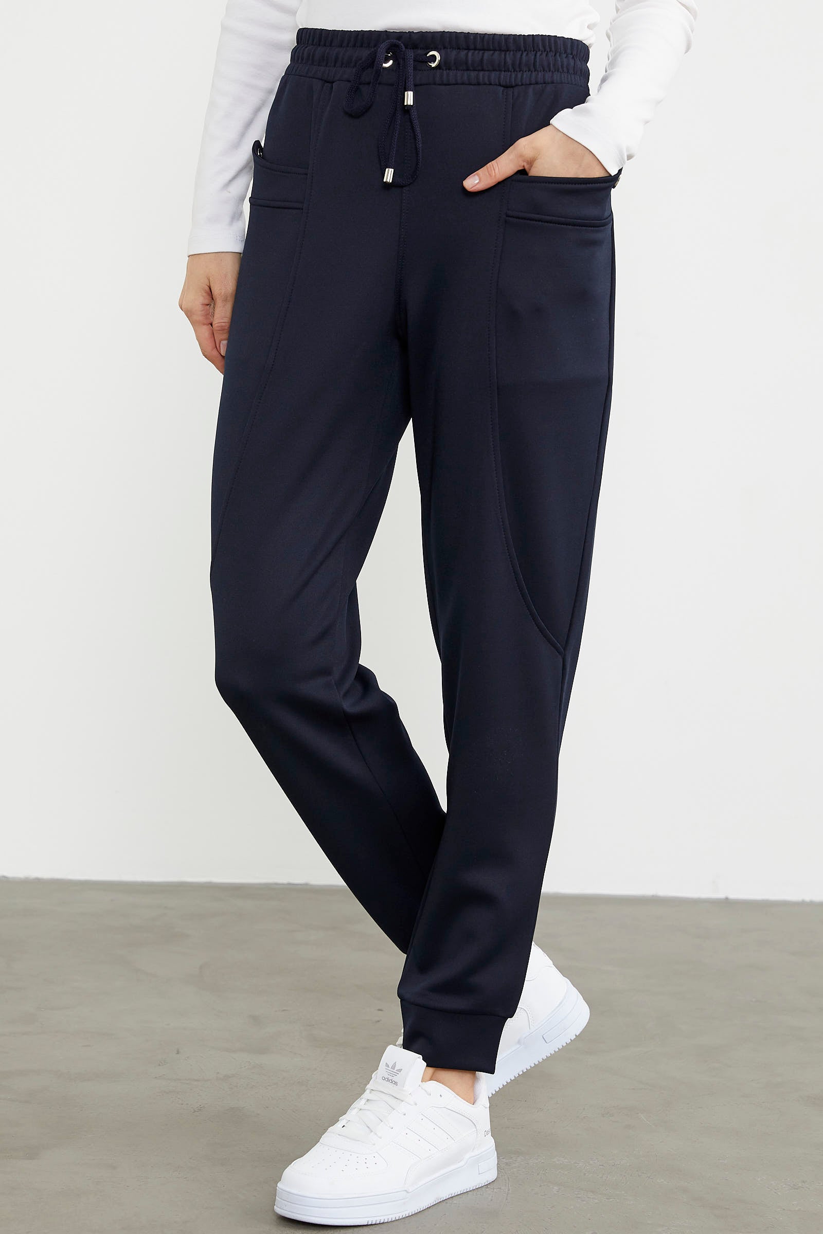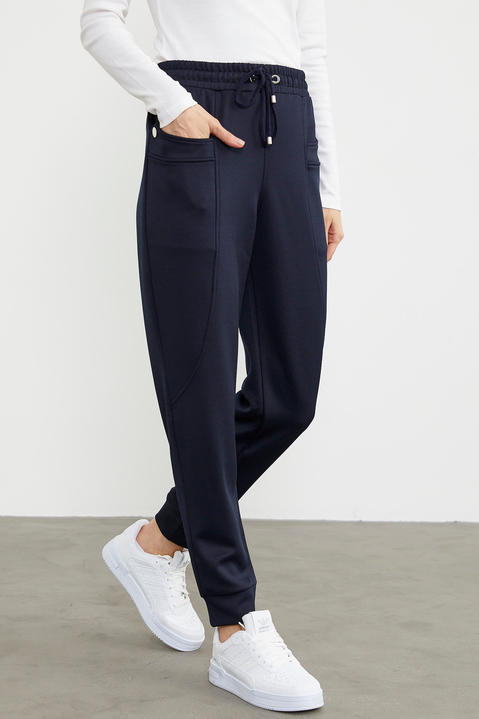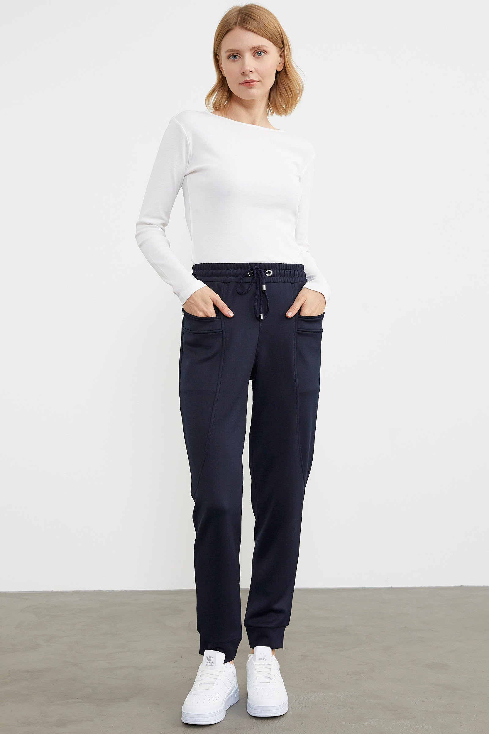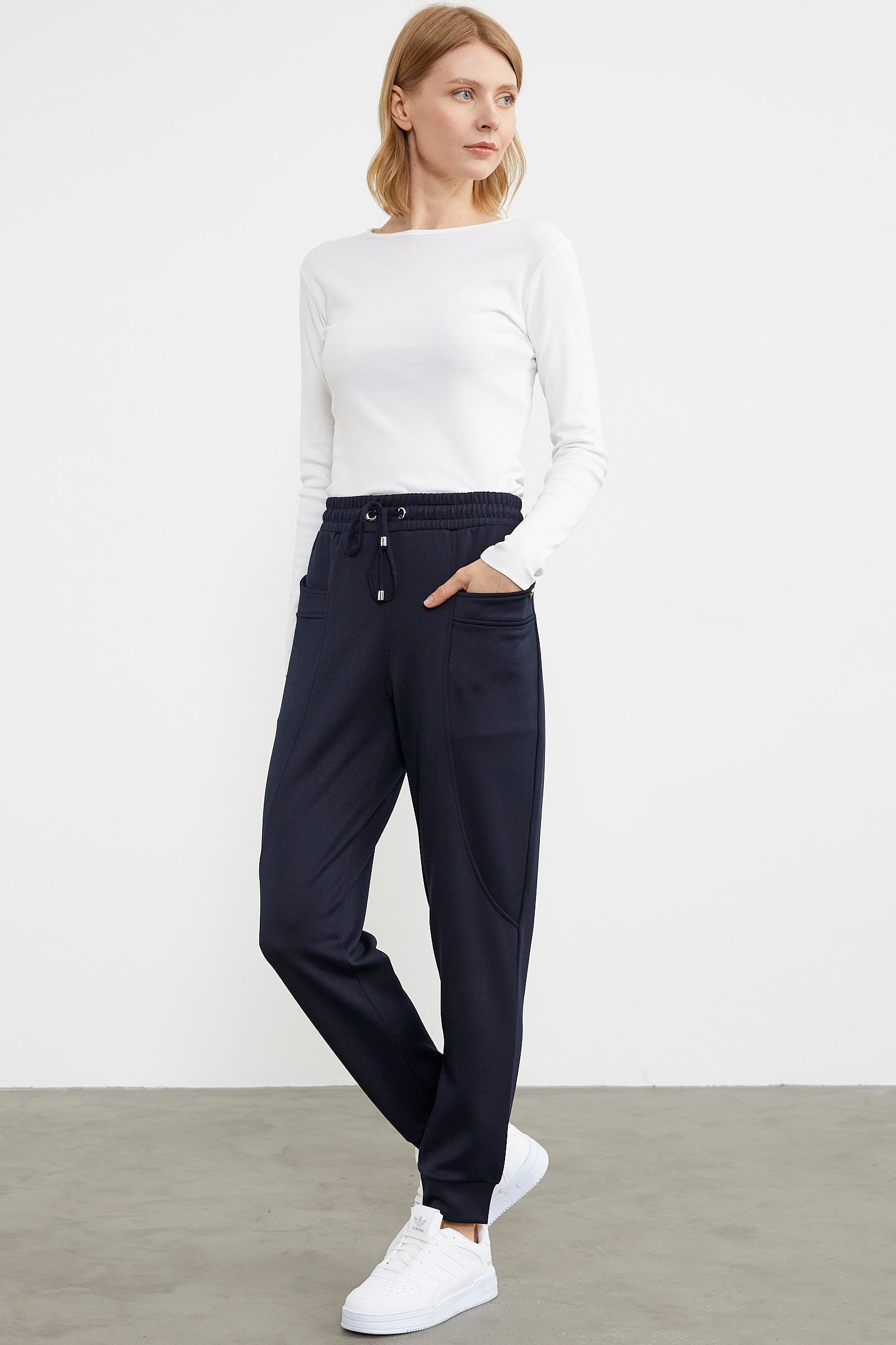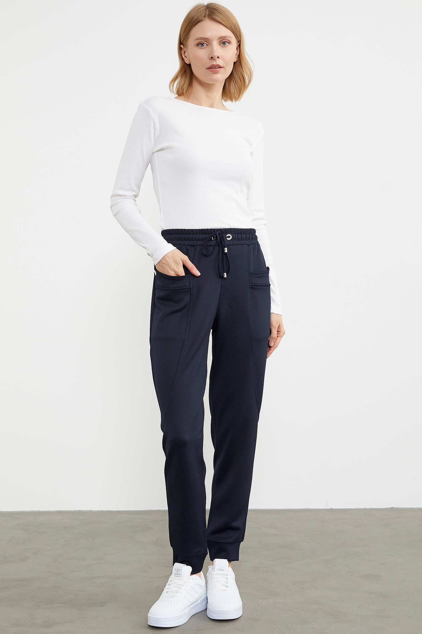 Dalgıç kumaştan tasarlanmış yumuşak dokusu, yüksek bel kesimi, ayarlanabilir bel kordonu ve dar paça olması sayesinde özgür hareket etme imkânı sağlarken, ön cep detaylarıyla spor bir görünüm oluşturmaktadır.