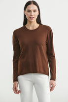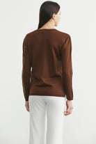 Sıfır Yaka Arkası Uzun Triko Kazak - Kahve