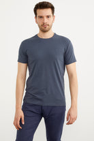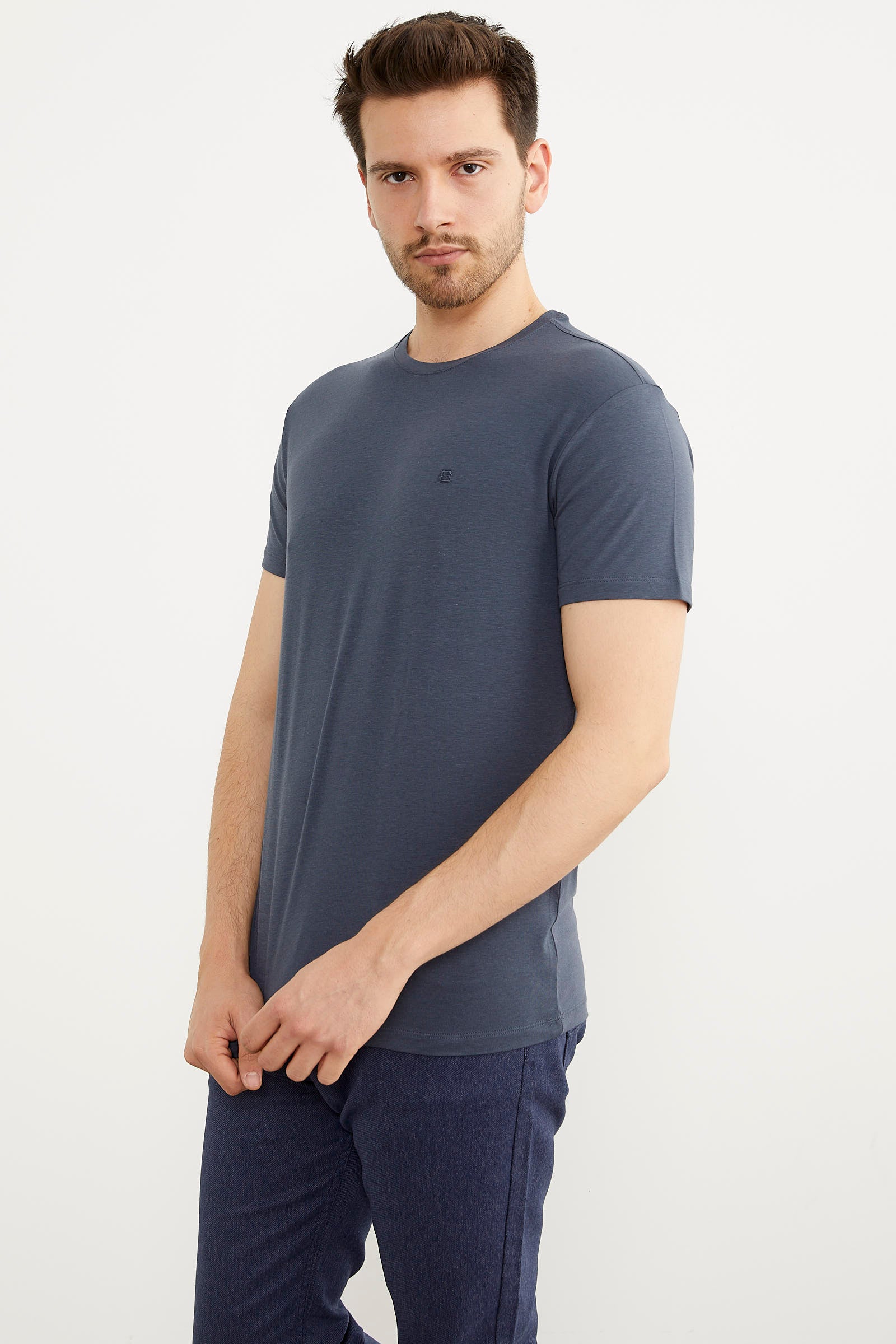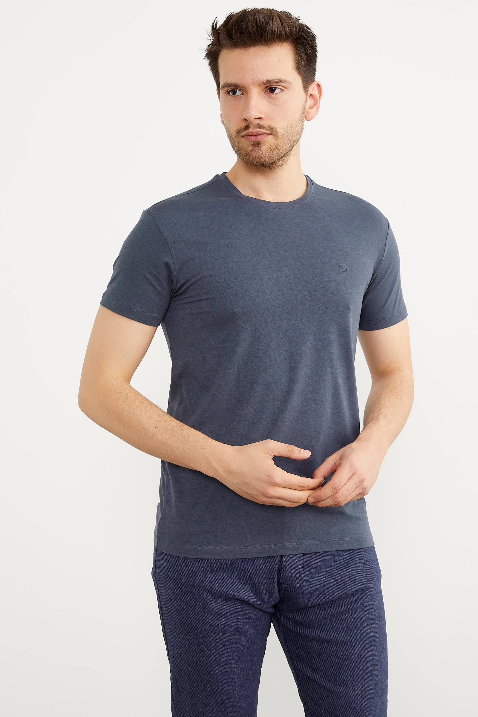 Viskoz kumaştan üretilmiş, dar kesimli, ince biyeli sıfır yaka tişört. Minimal nakış detaylı ve kısa kolludur.