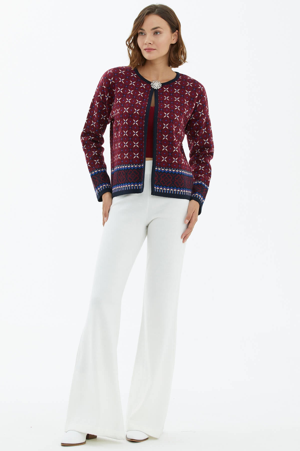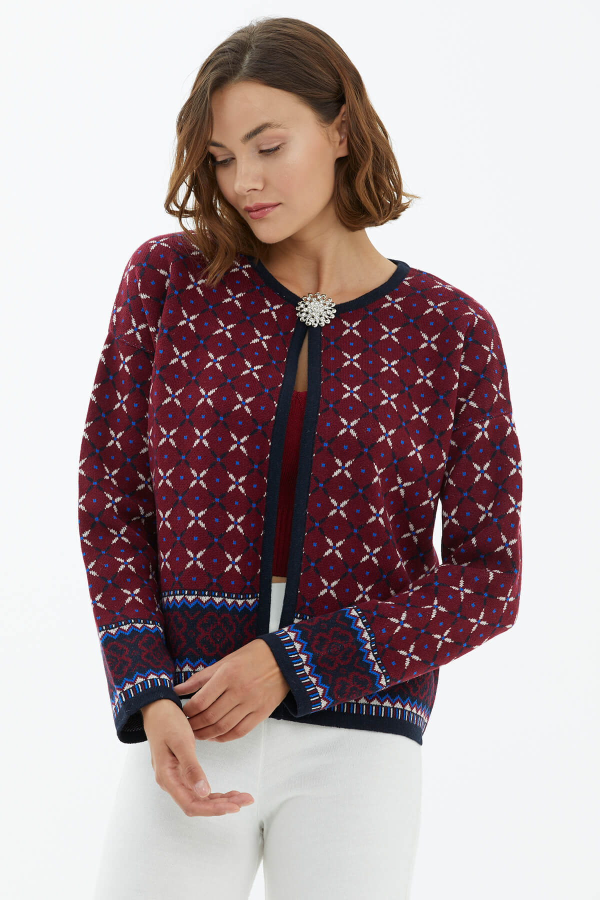 Triko hırka, renklerinin enerjik uyumu ile ön plana çıkıyor. Sıfır yaka ve uzun kol detaylı tasarım, broş düğme kapama ile harmanlanıyor. Tasarım, yumuşacık dokusu ile konfor sunarak dolaplardaki güncelliğini de daima koruyor.