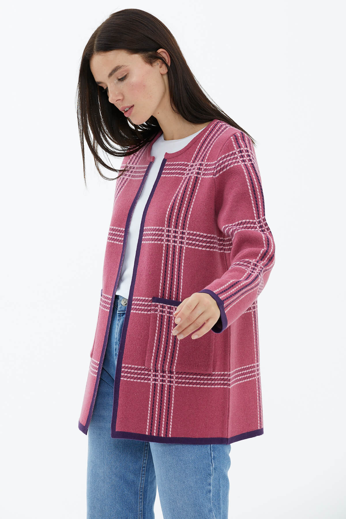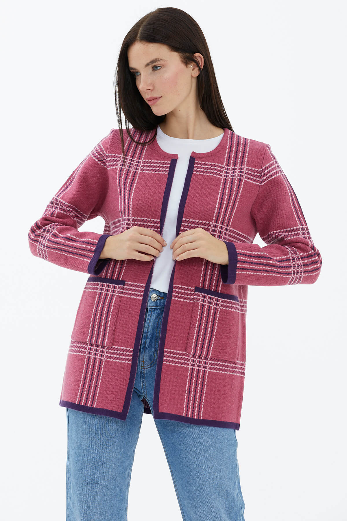 Sıfır yaka ve uzun kol detayları ile ön plana çıkan desenli triko ceket, yumuşacık dokusu ile cezbediyor. Konforu üst seviyede sunan model, şık ve sportif zevklerin yansımasına dikkat çekiyor. Jean ve eteklerle uyum içinde olan parça, zamansız stilleri seven kadınların beğenisini topluyor ve dolaplardaki güncelliğini de daima koruyor.