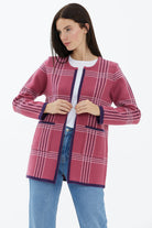 Yünlü Sıfır Yaka Cepli Triko Ceket - Gül