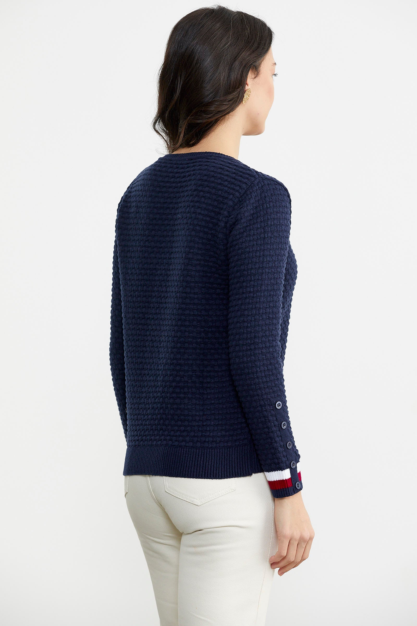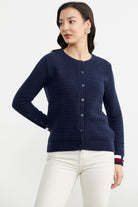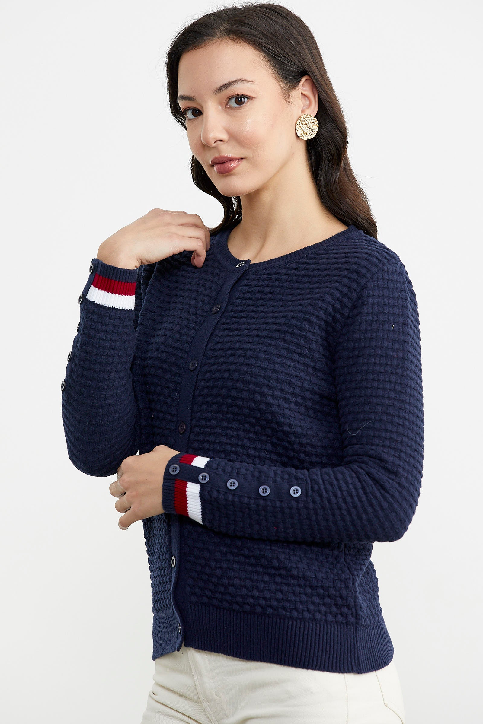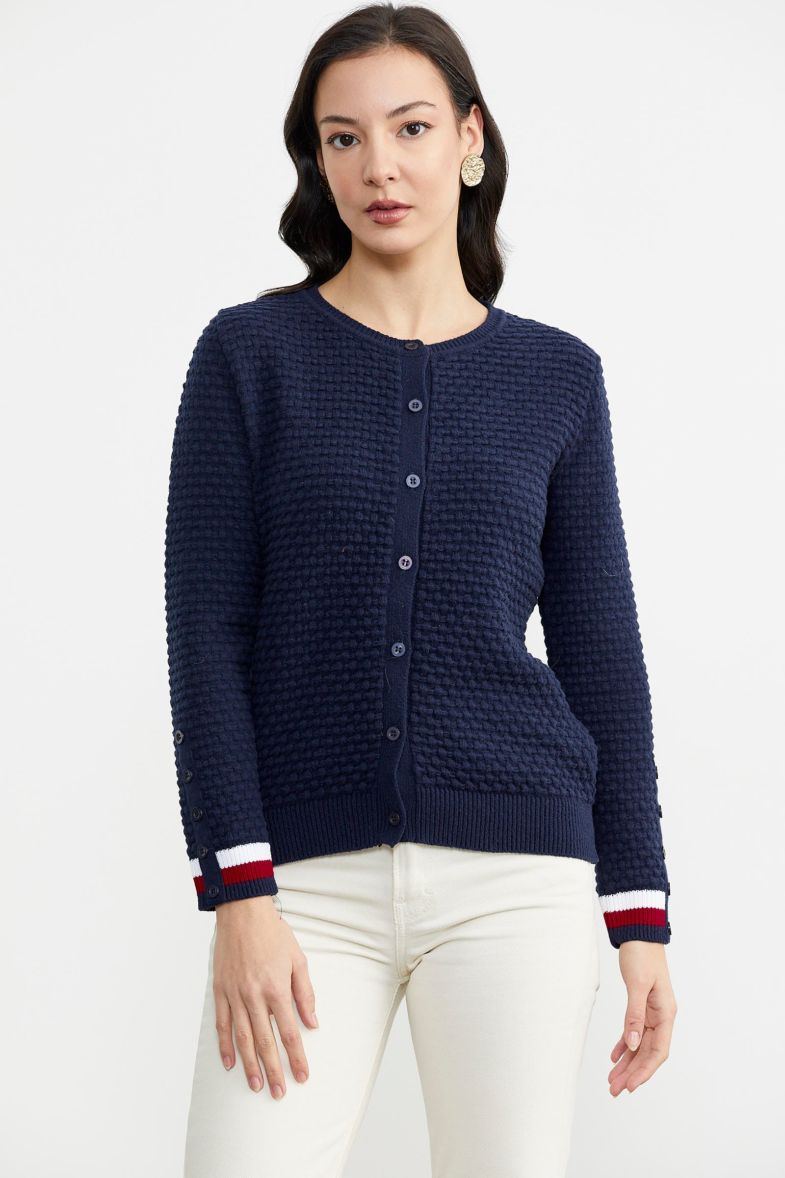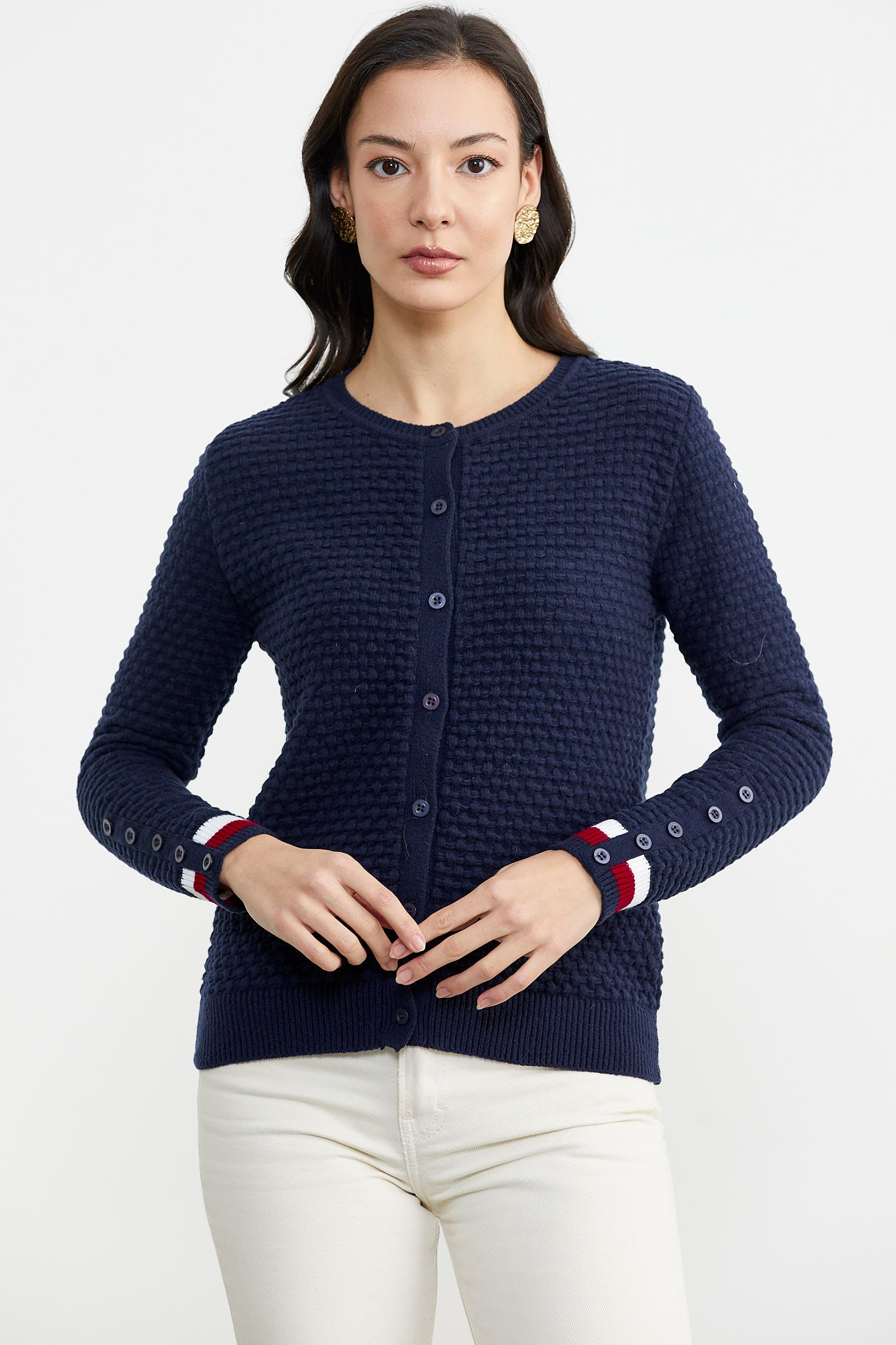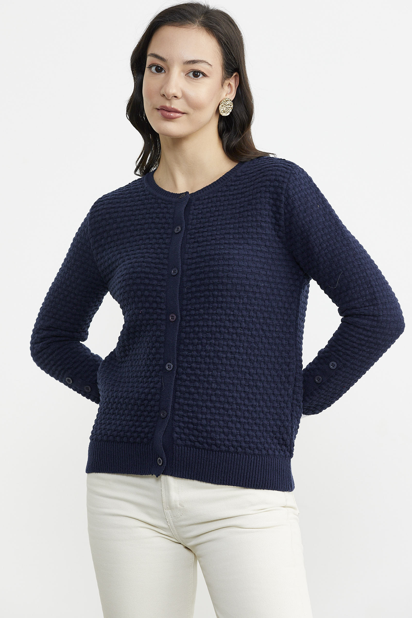 Sıfır Yaka Düğmeli Petek Desenli Triko Hırka - Lacivert