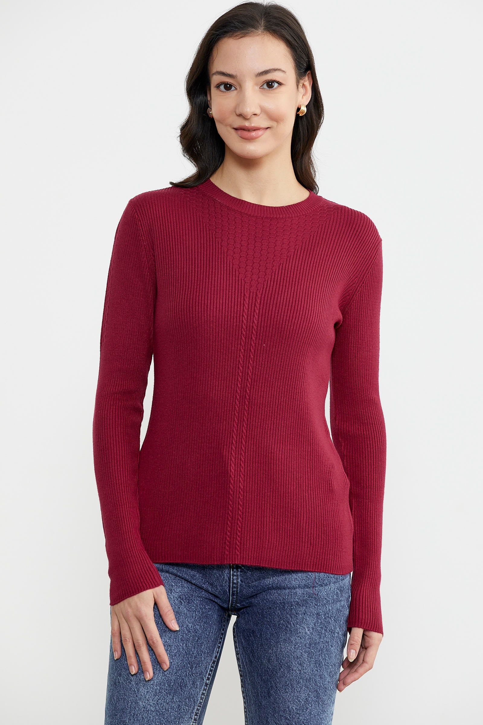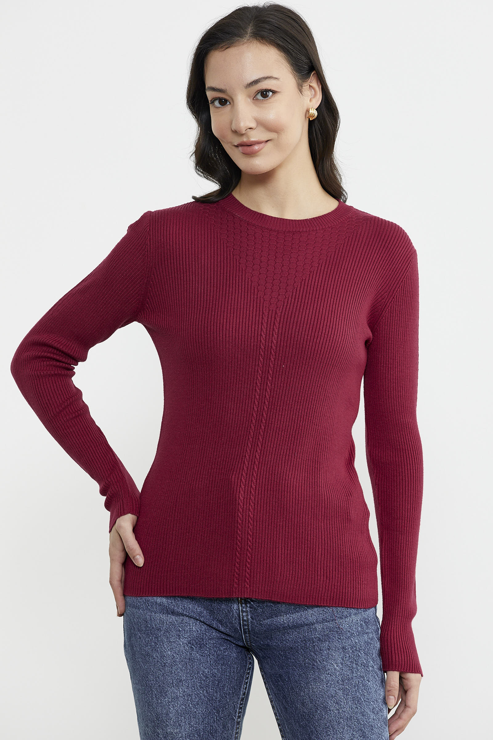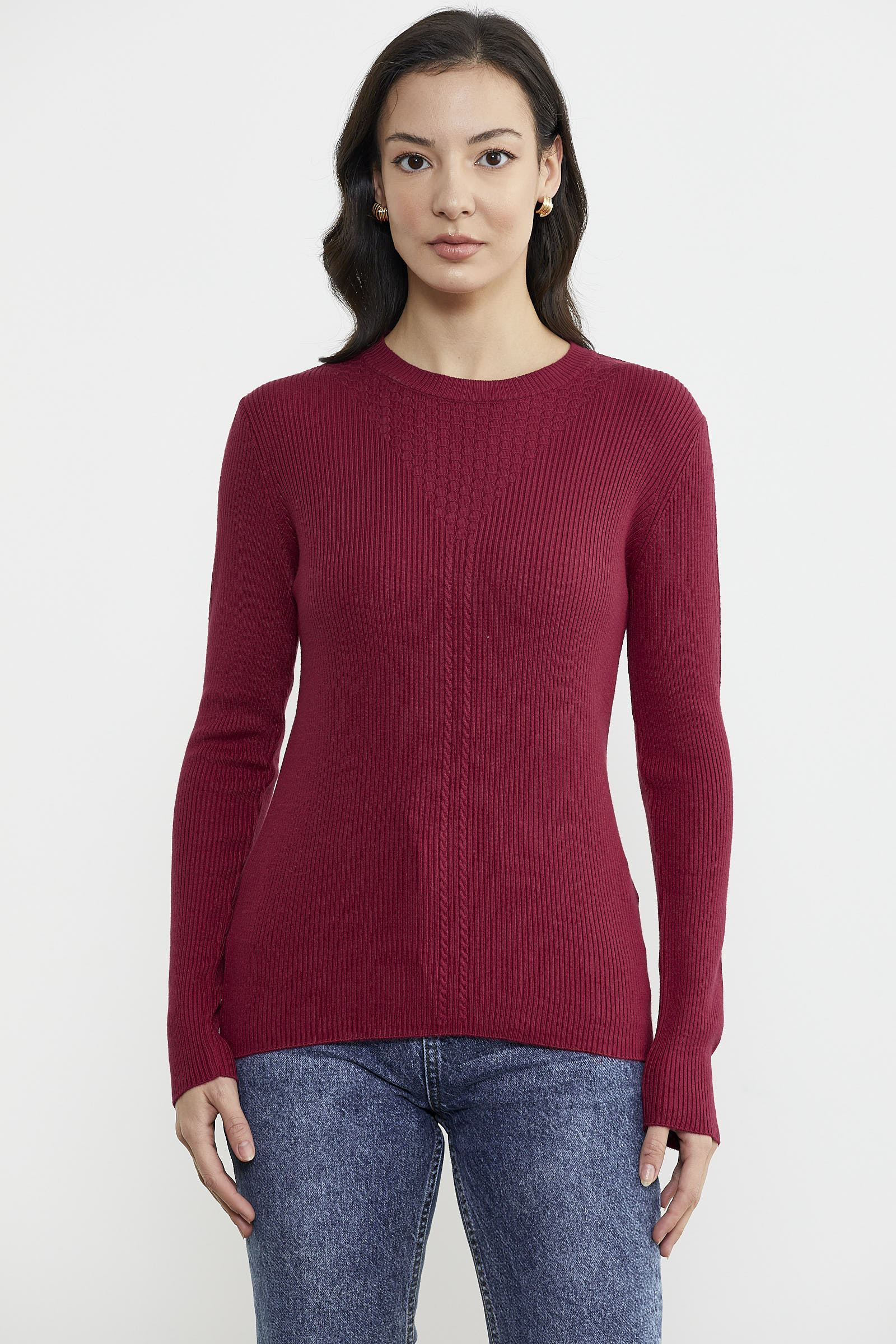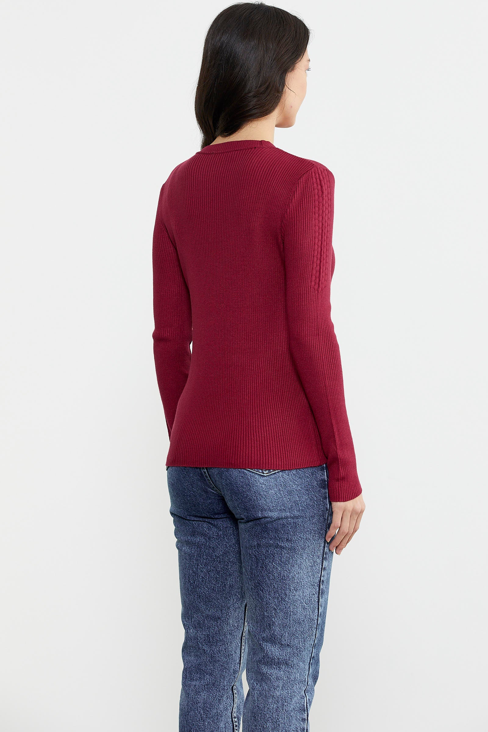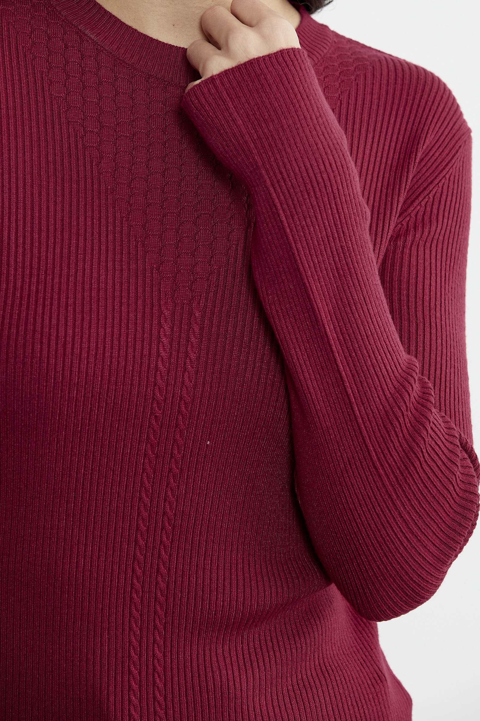 Sıfır Yaka Fitilli Triko Kazak - Bordo