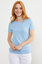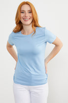 Sıfır Yaka Kısa Kol Basic Tişört - Mavi