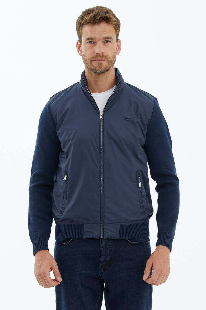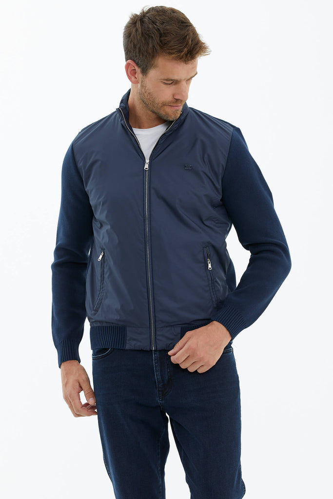 Sıfır Yaka Önden Mikro Fermuarlı Triko Mont - Lacivert