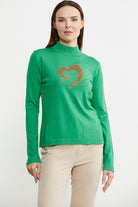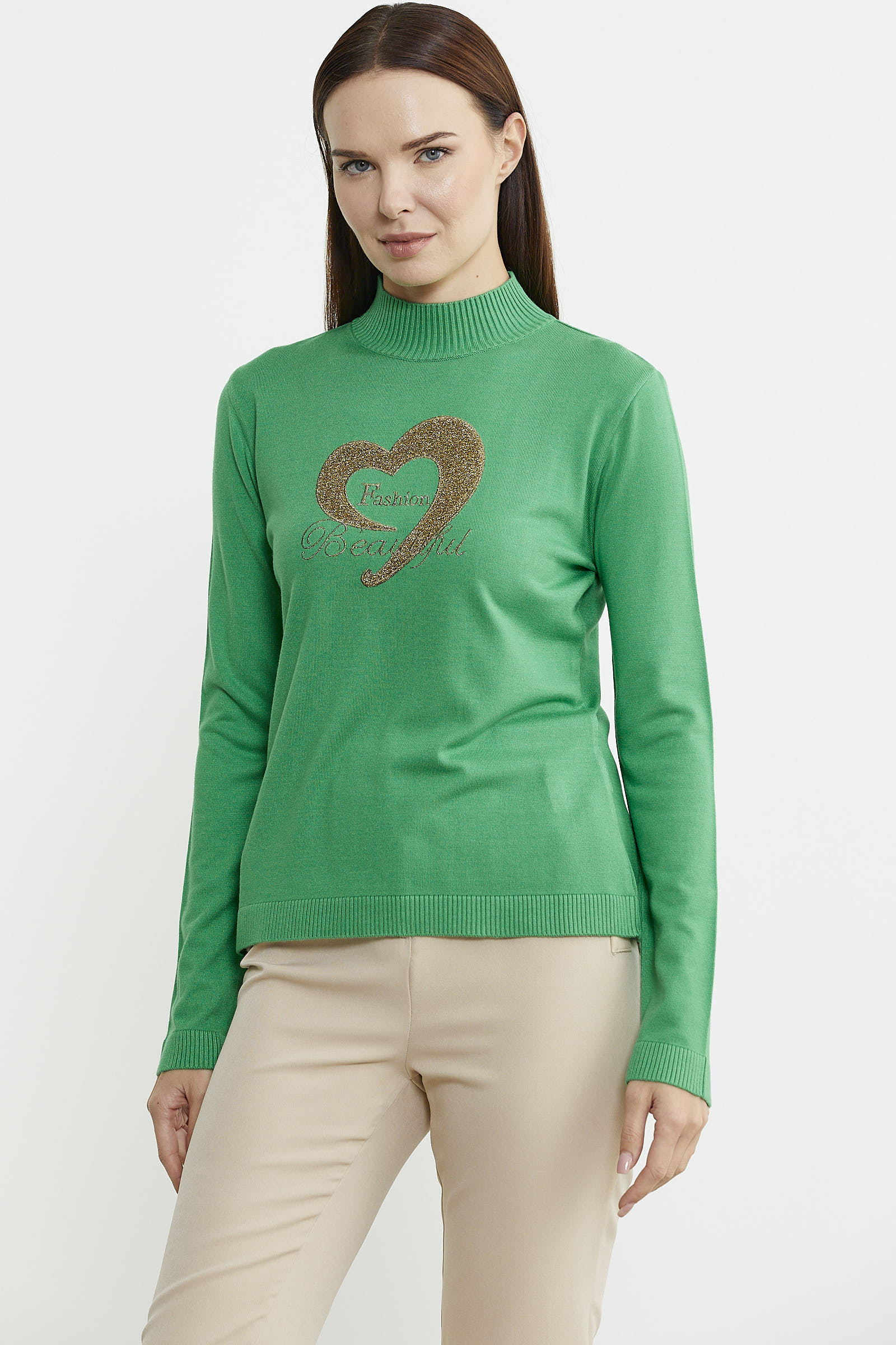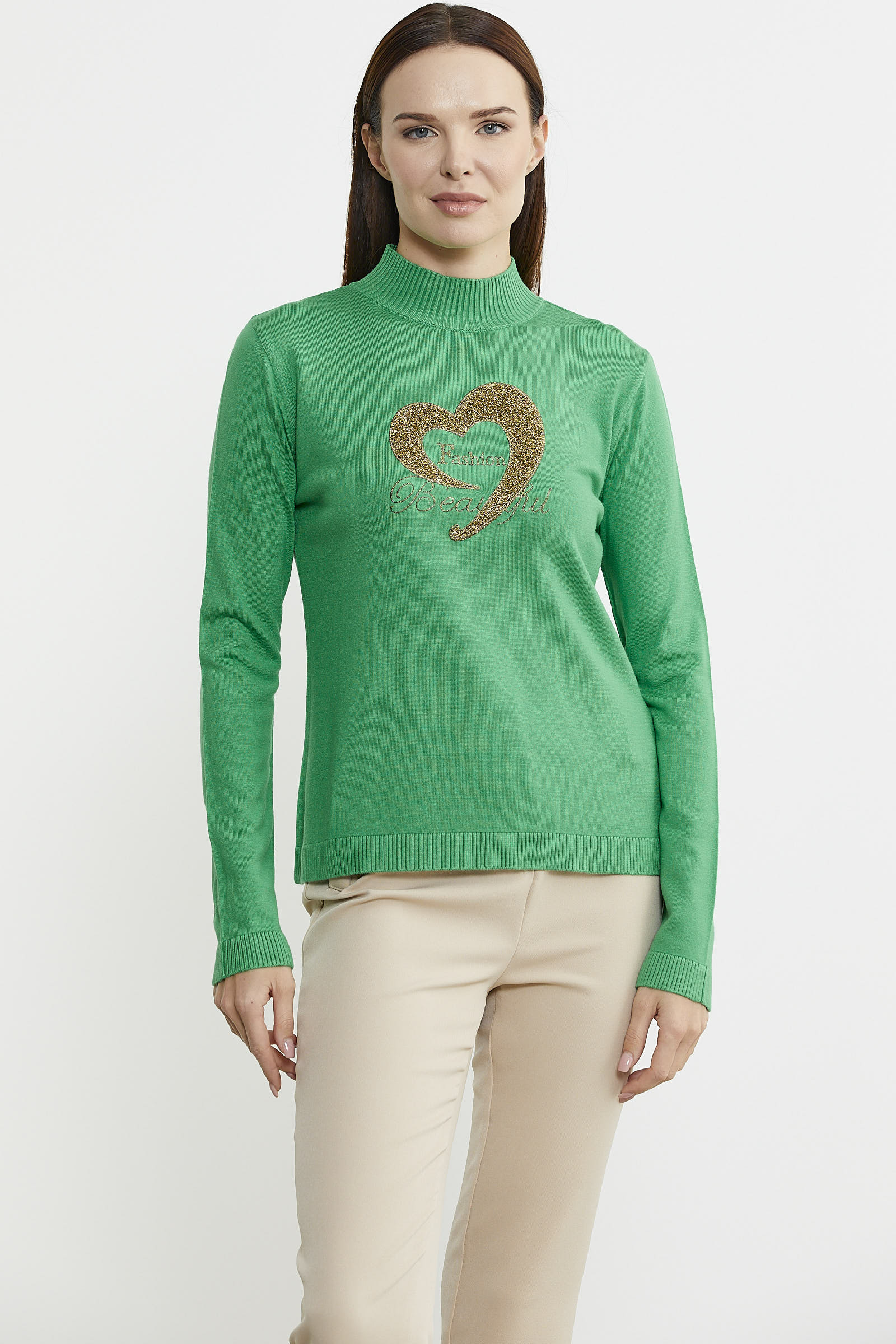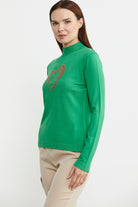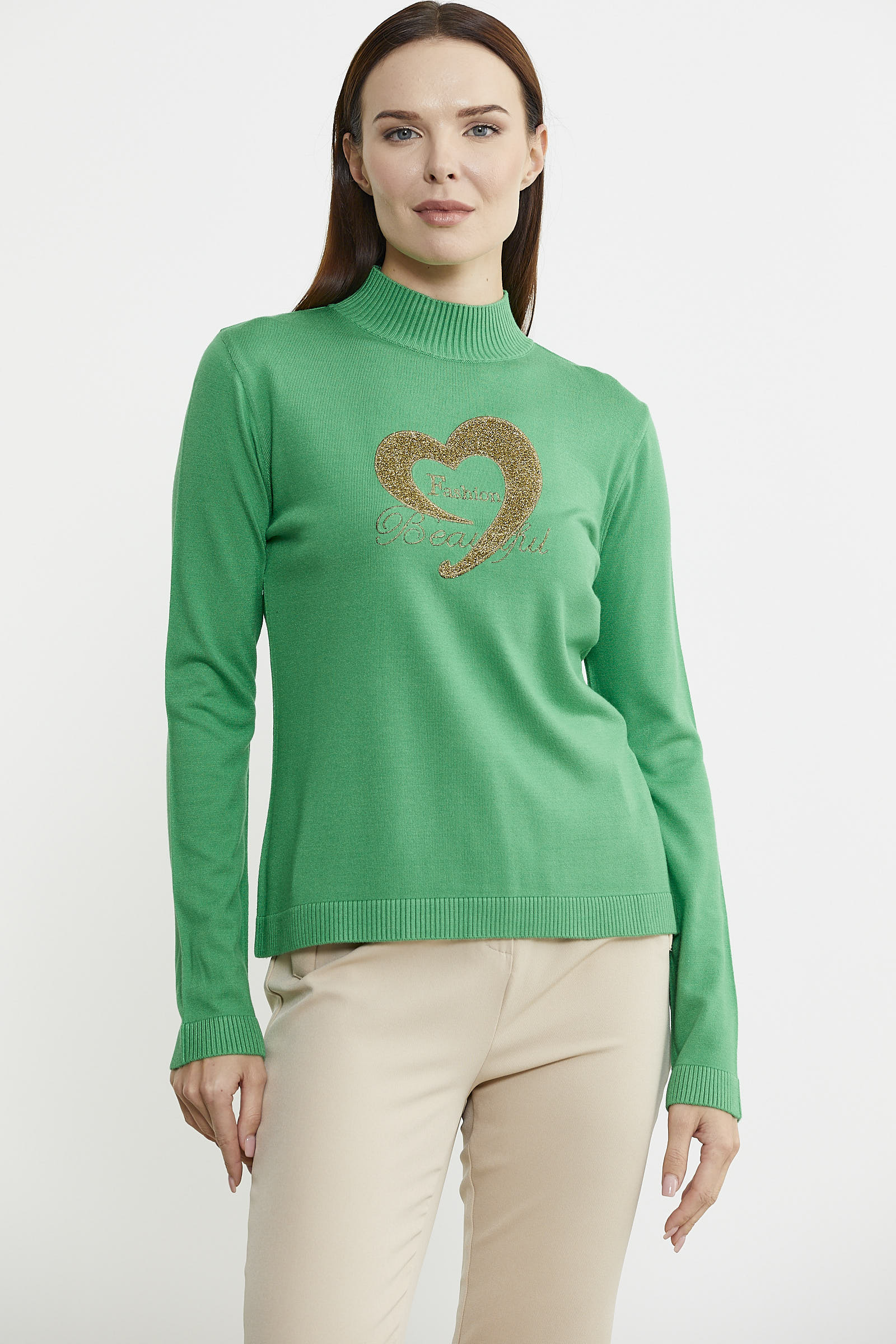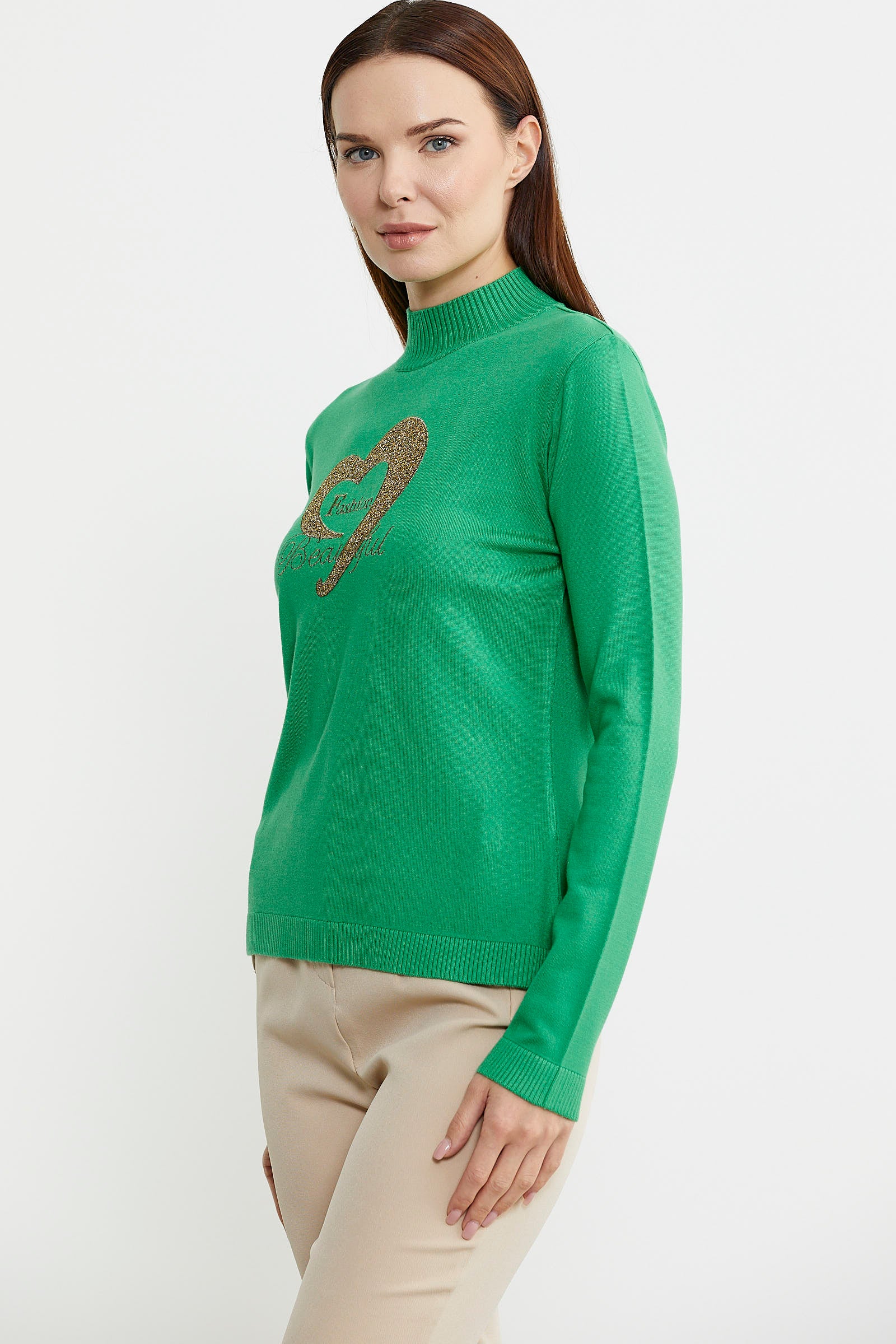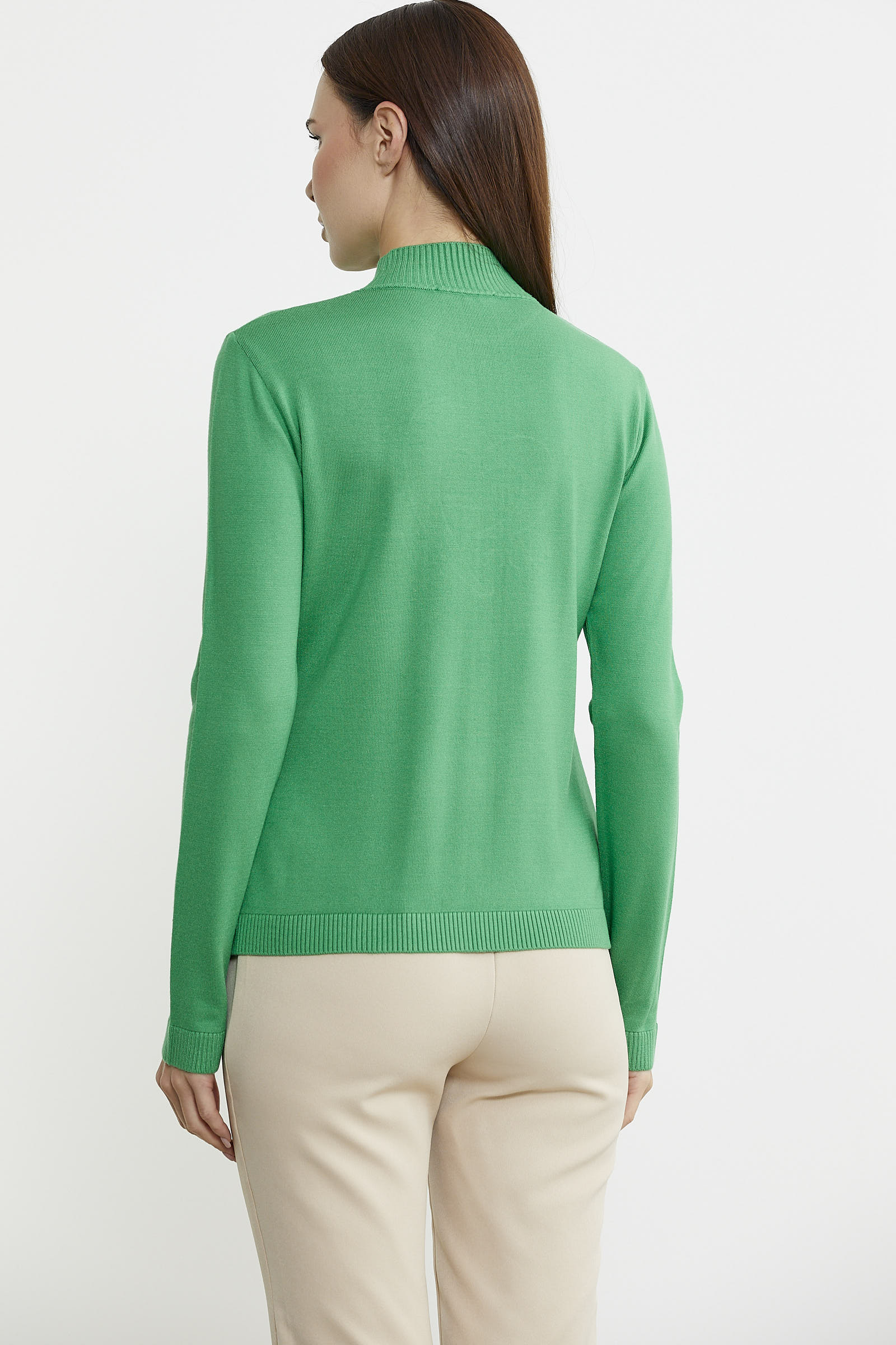 Sim Detaylı Dik Yaka Triko Kazak - Yeşil