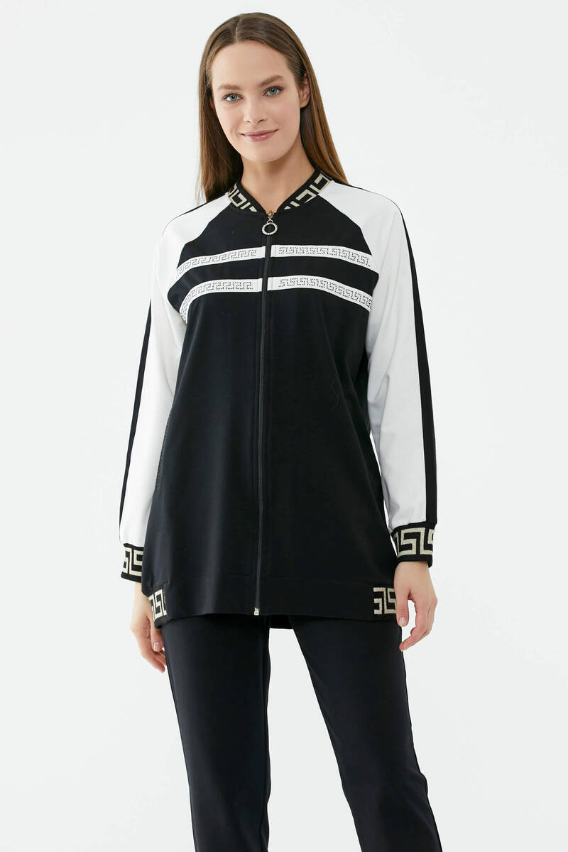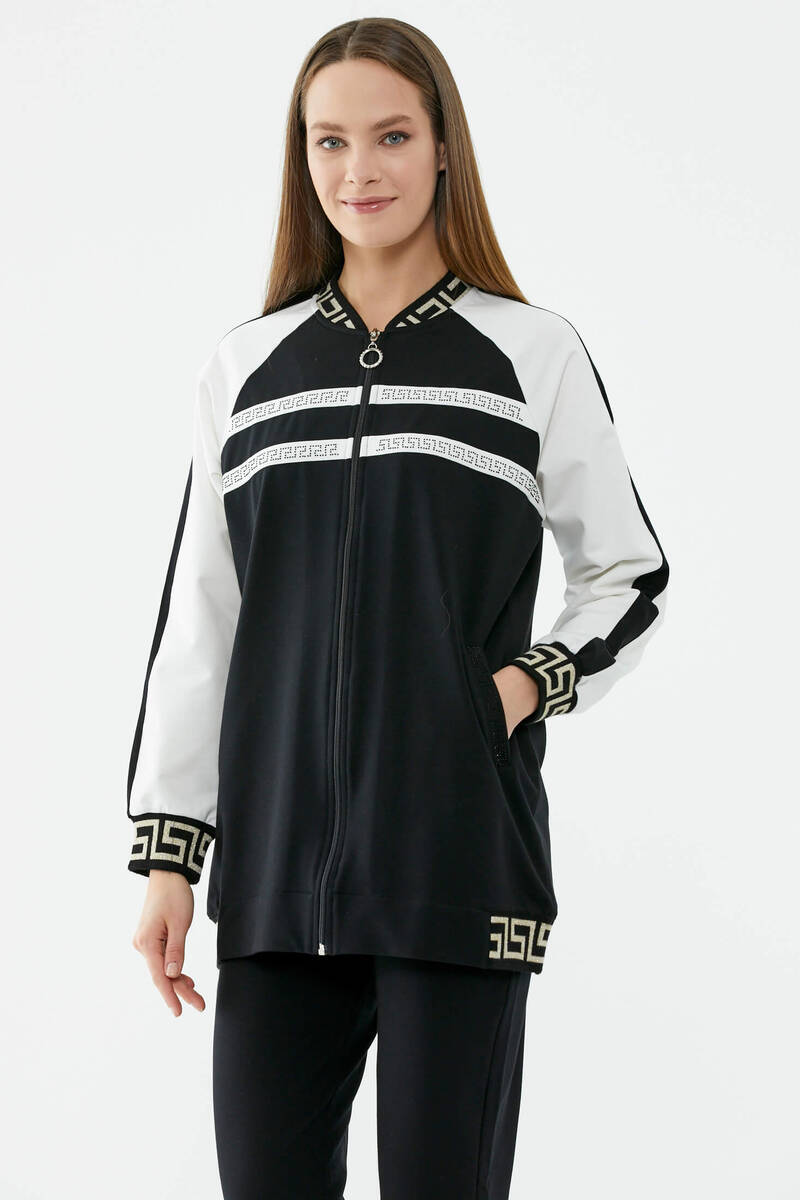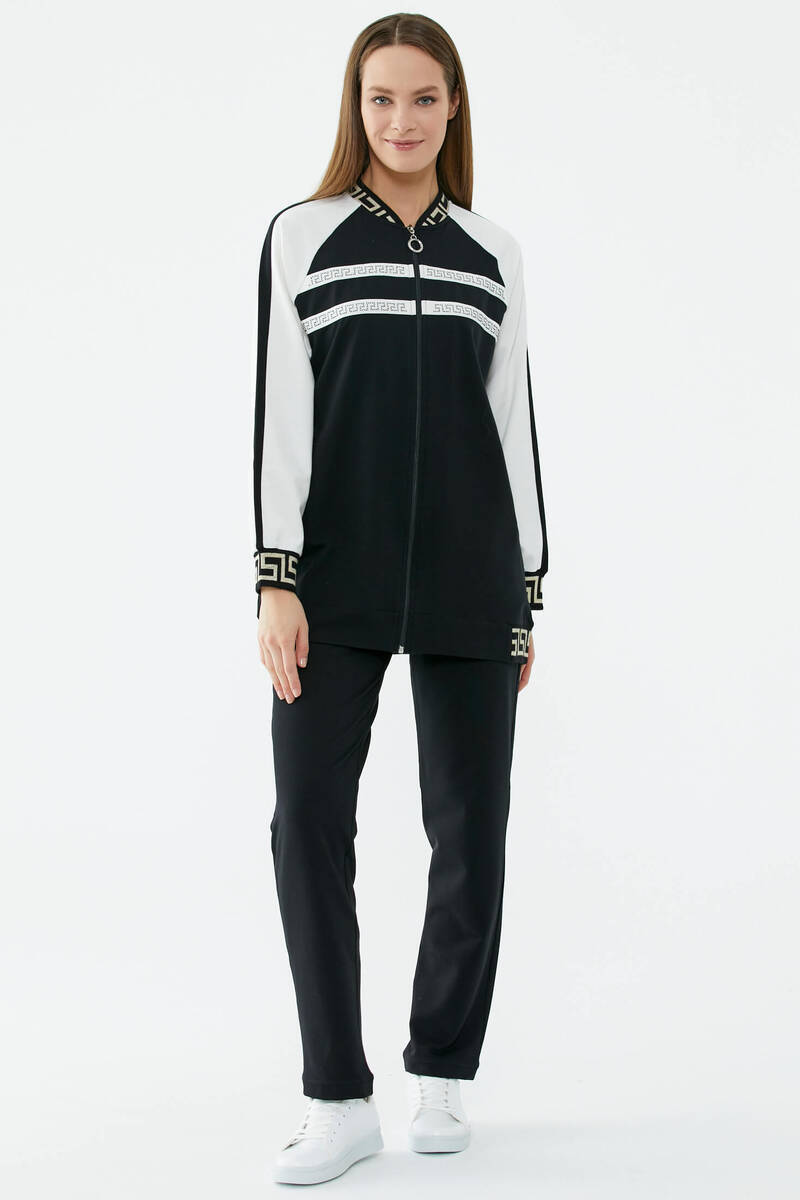 Sim Detaylı Taş Baskılı Eşofman Takım - Siyah