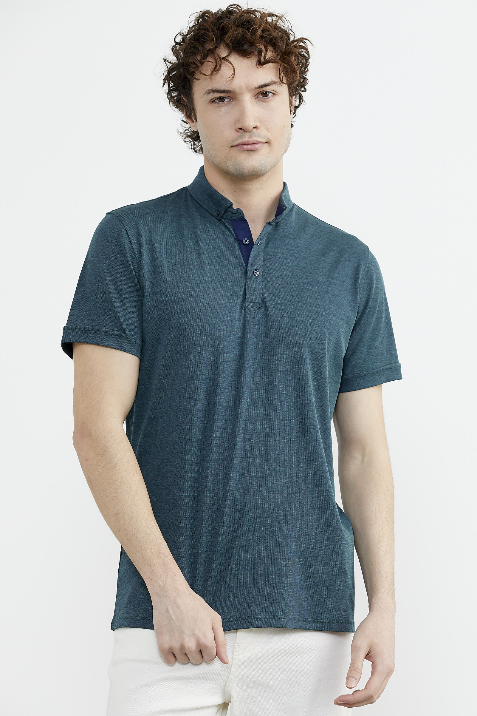 Slim Fit Düğmeli Polo Yaka Tişört - Yeşil