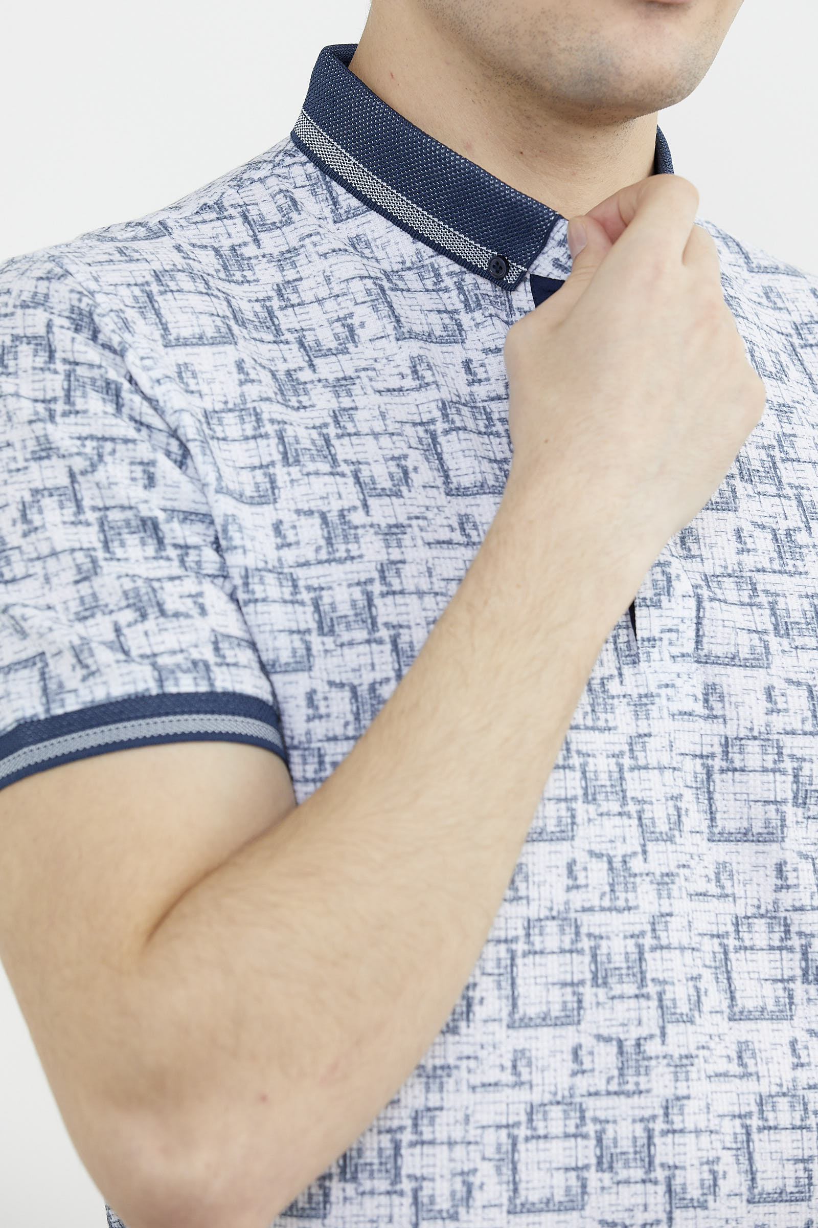 Slim Fit Polo Yaka Desenli Tişört - Lacivert