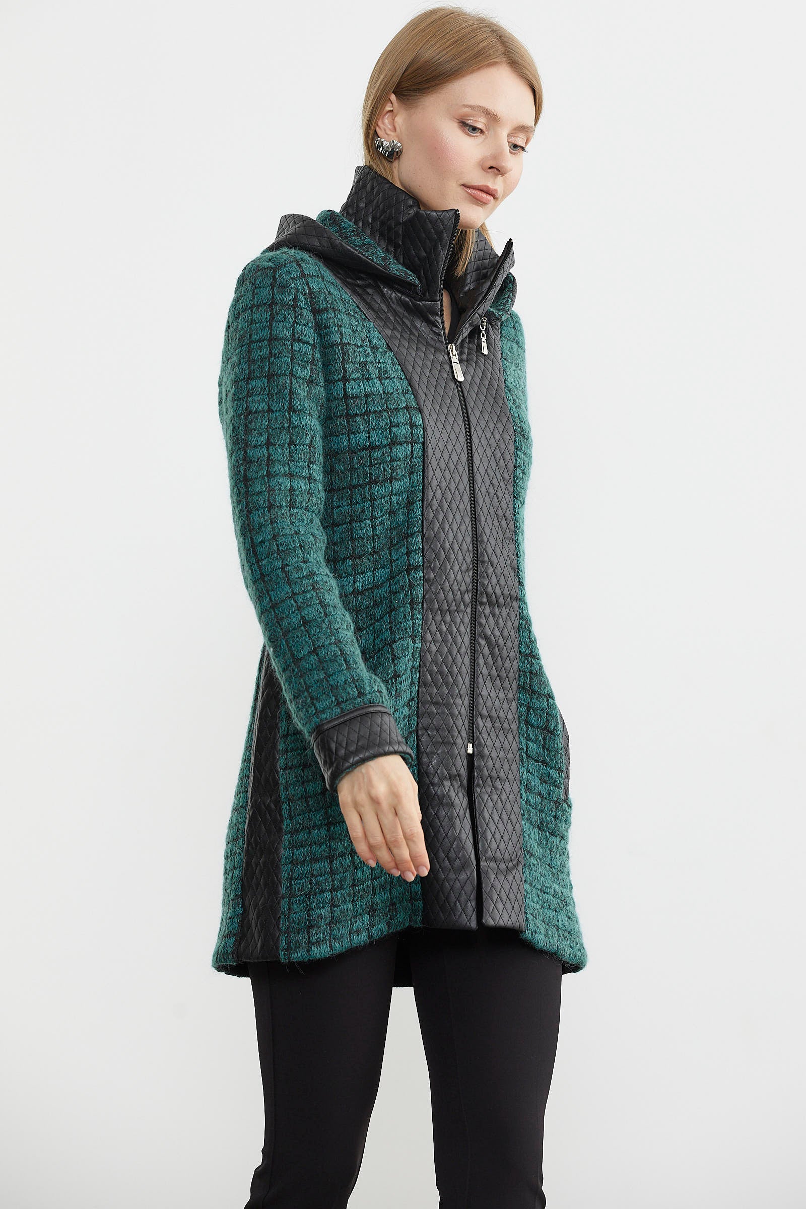 Kapüşon, kol ağzı, cep ve fermuar çevresinde suni deri detaylarına sahip çift renkli desenli uzun triko ceket ile kombinlerinizi rahatlıkla tamamlayabilirsiniz. İki yan cepleri ve çıkarılabilir kapüşonu ile kullanım kolaylığı sağlar. Renk seçeneklerine göz atmayı unutmayın.