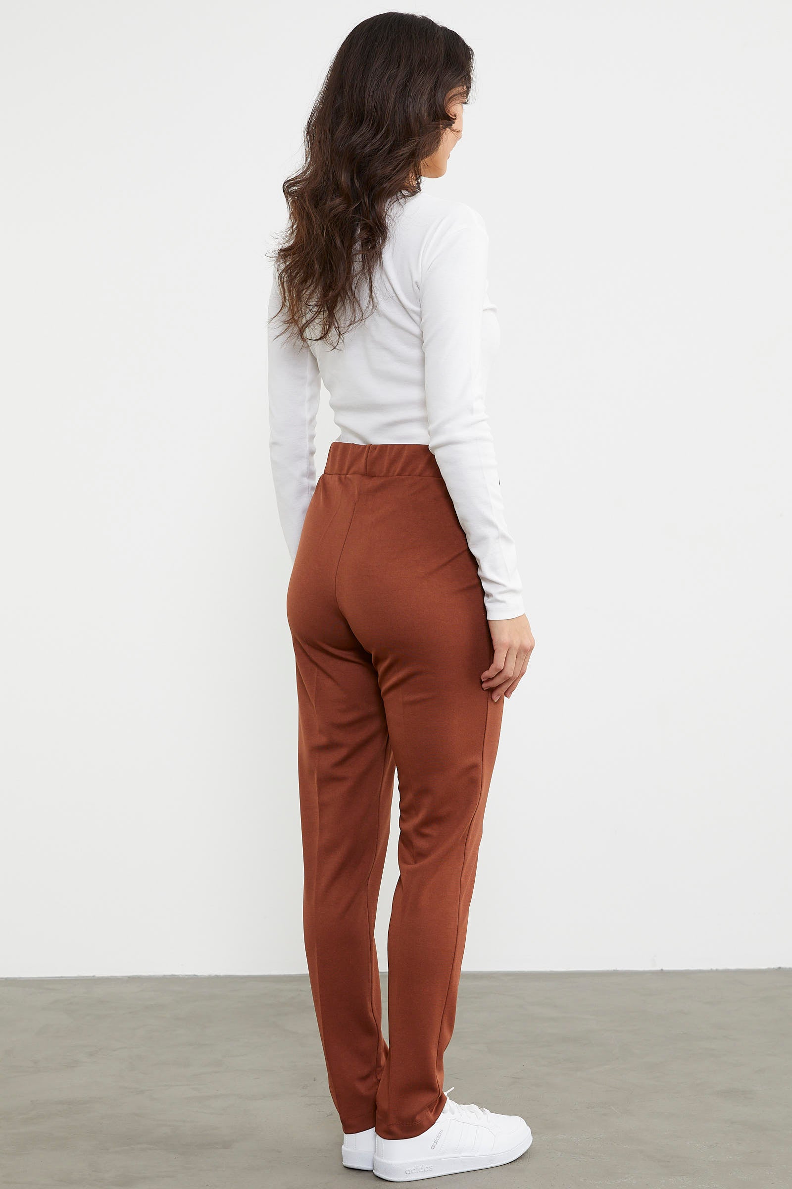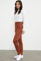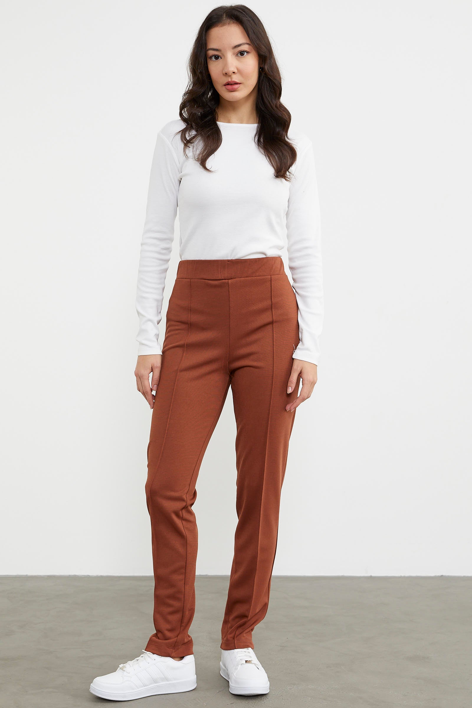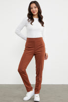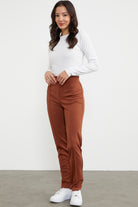 Yüksek Bel Önü Dikişli Tayt - Kahve