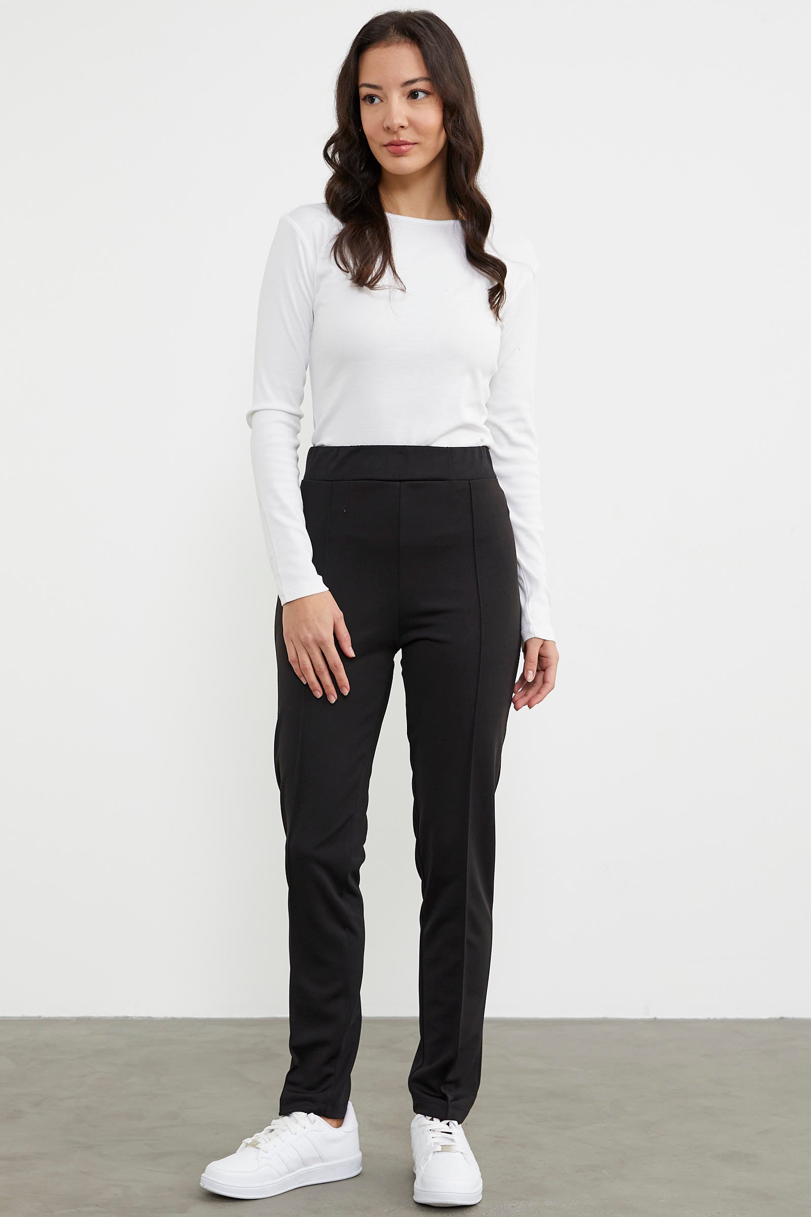 Yüksek Bel Önü Dikişli Tayt - Siyah