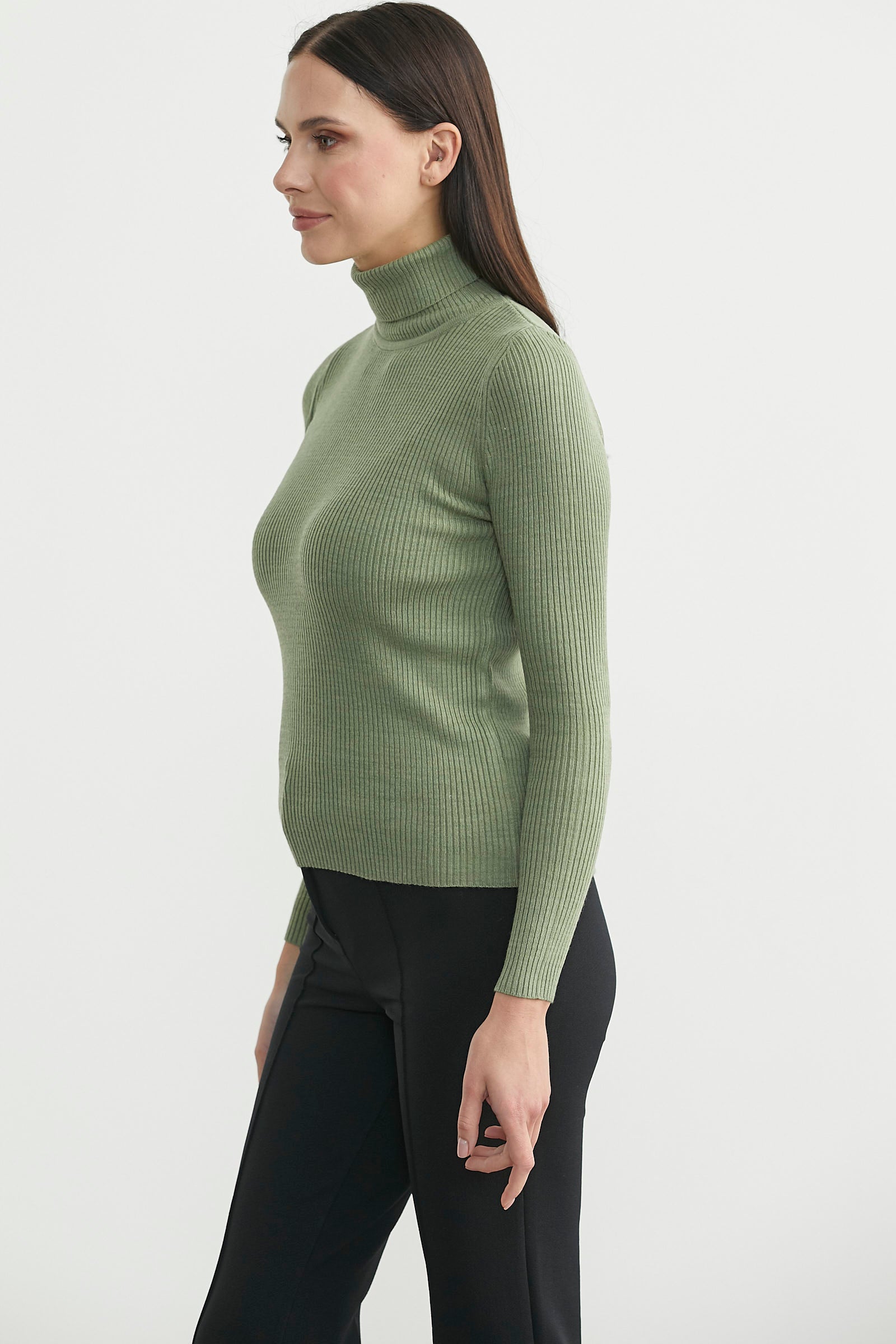 Tam balıkçı yaka, fitilli, bedeni saran, basic triko kazak.