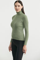 Tam Balıkçı Fitilli Basic Triko Kazak - Çağla Yeşili