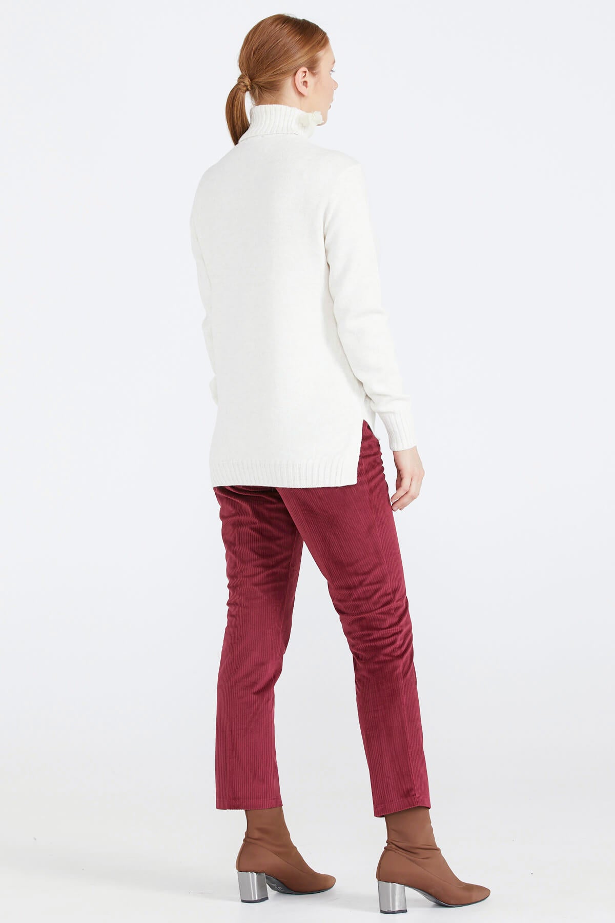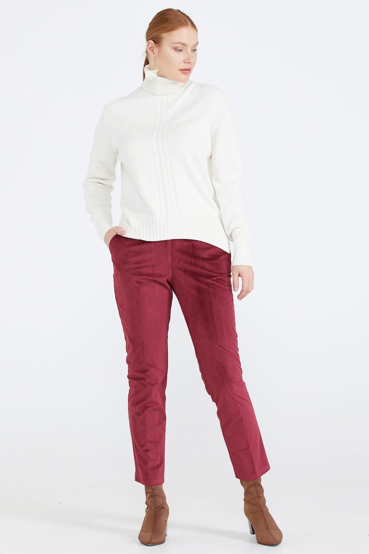 Tam Balıkçı Kadın Triko Kazak - Kemik