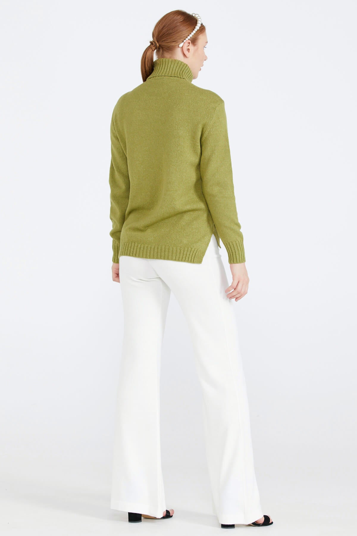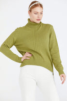 Tam Balıkçı Kadın Triko Kazak - Yeşil