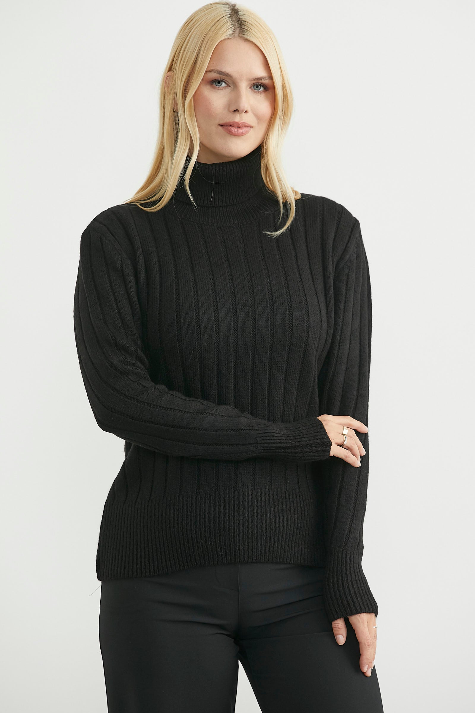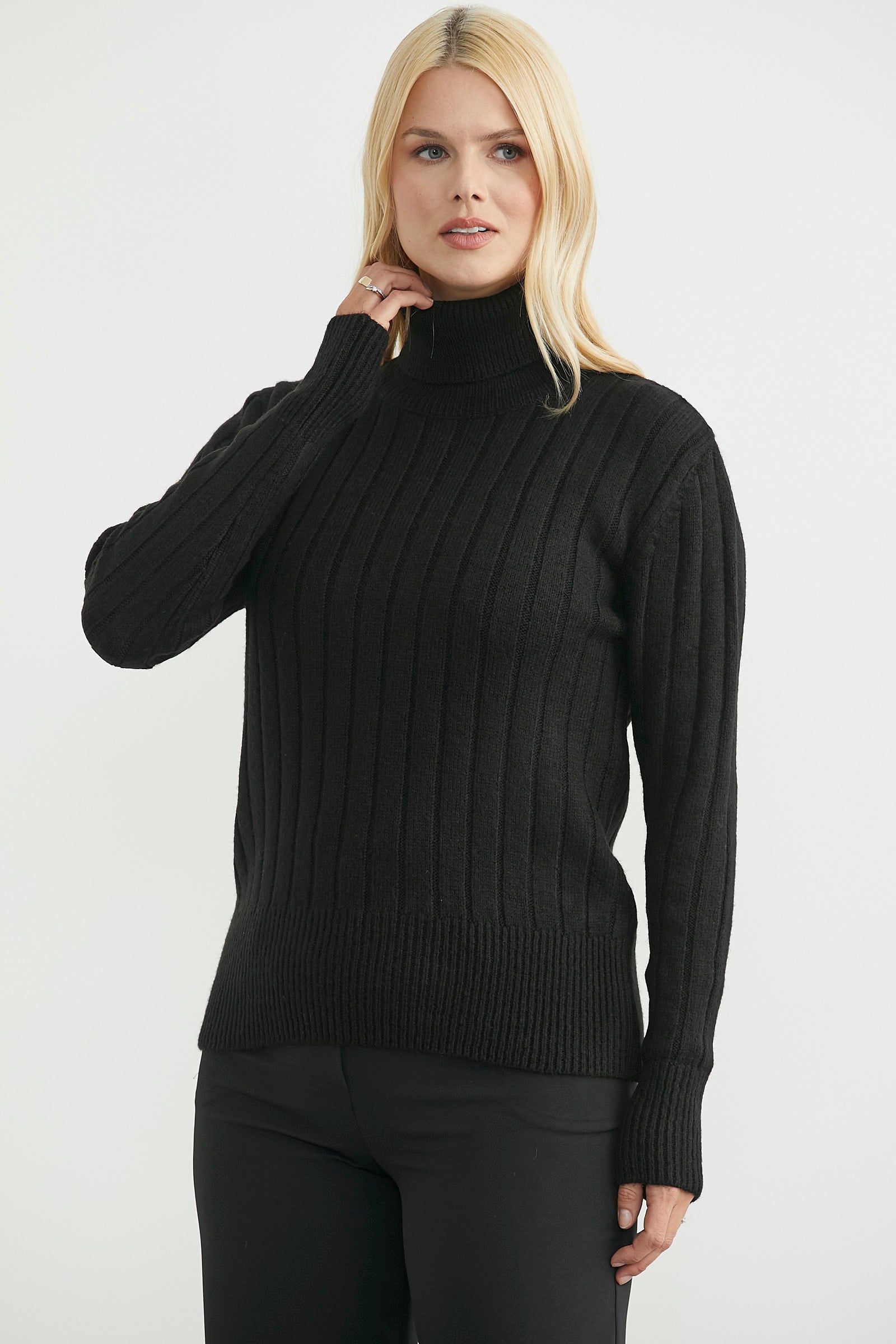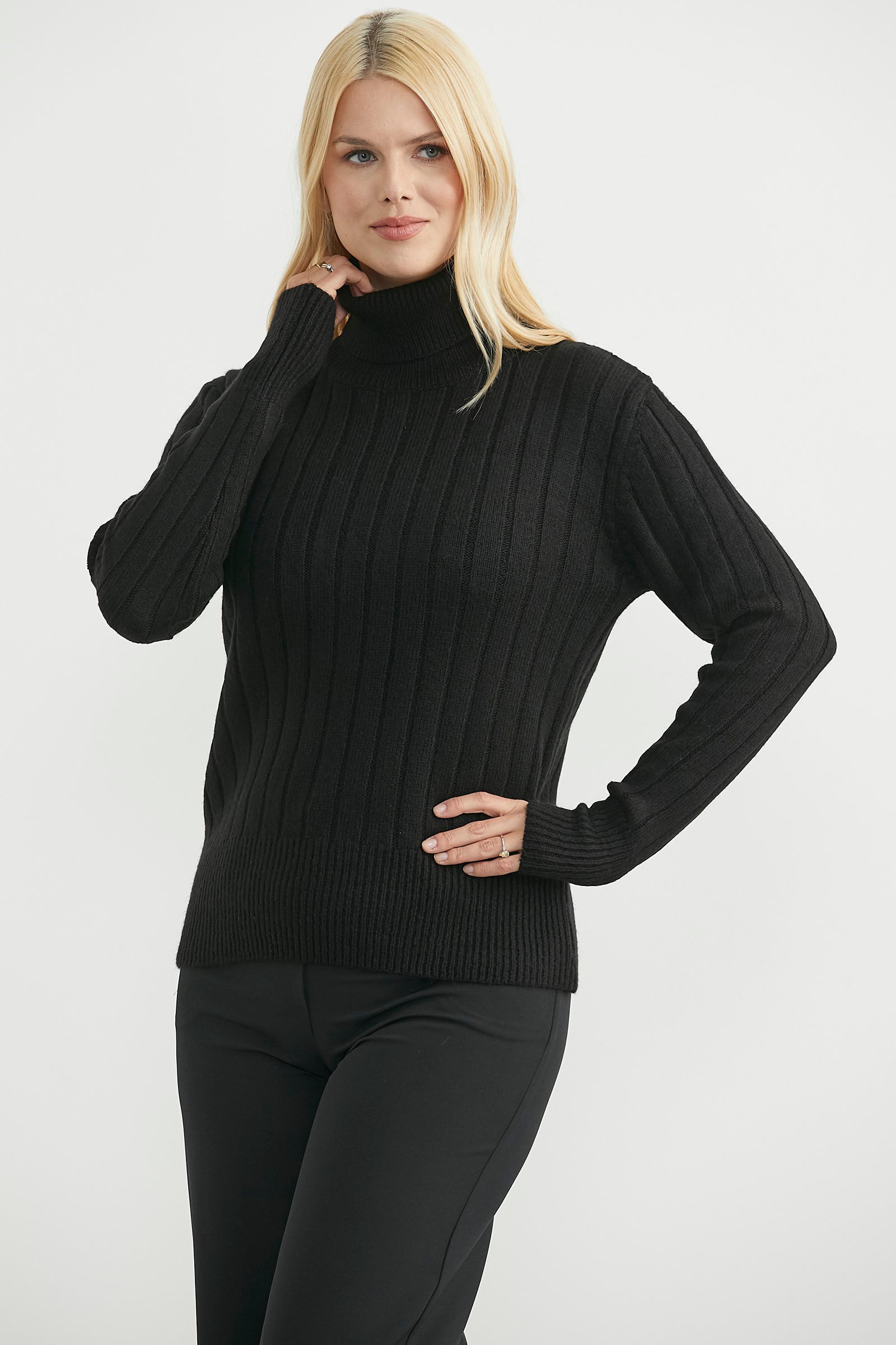 Tam balıkçı yaka, kalın, yumuşak dokulu basic triko kazak.