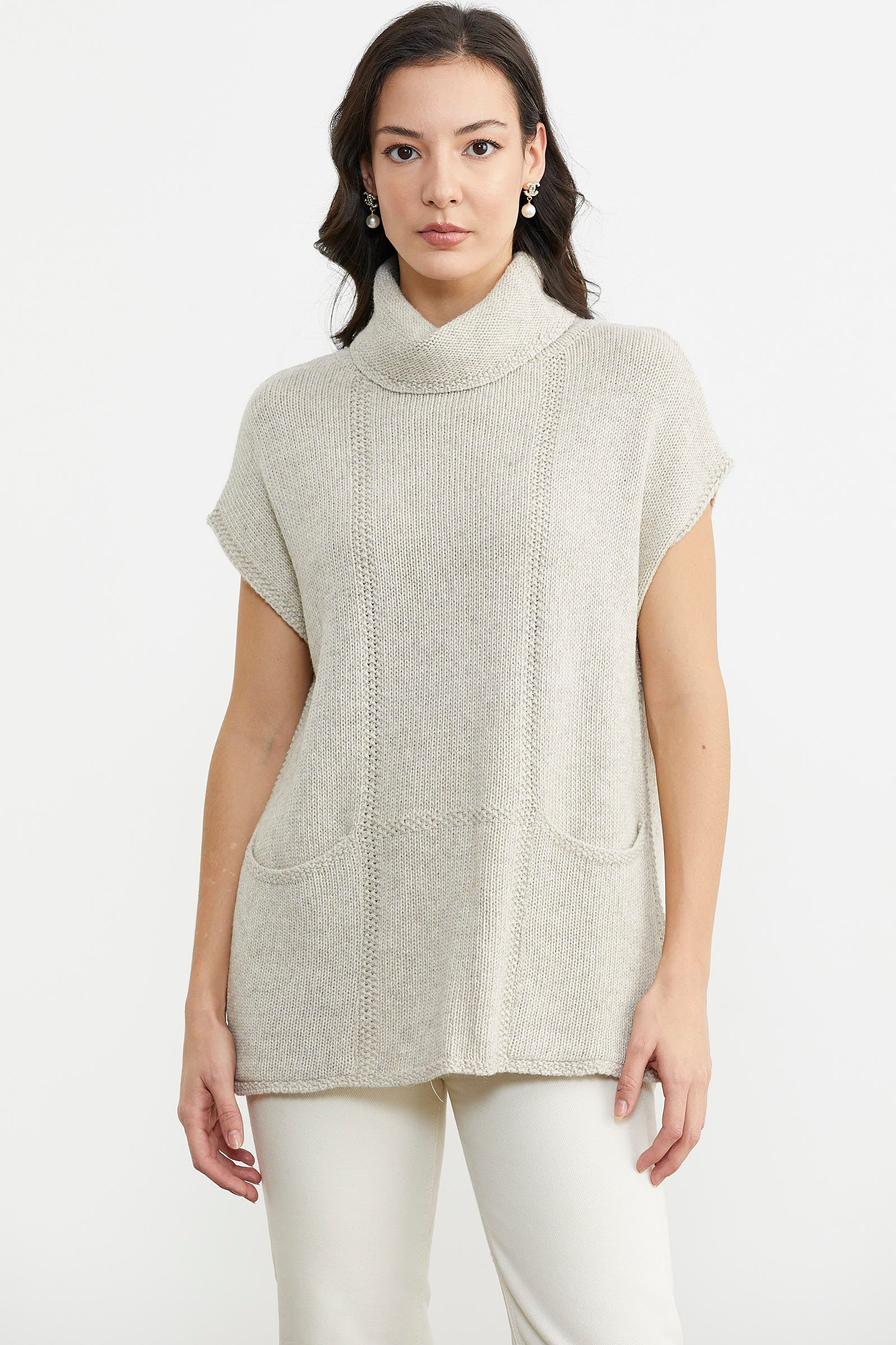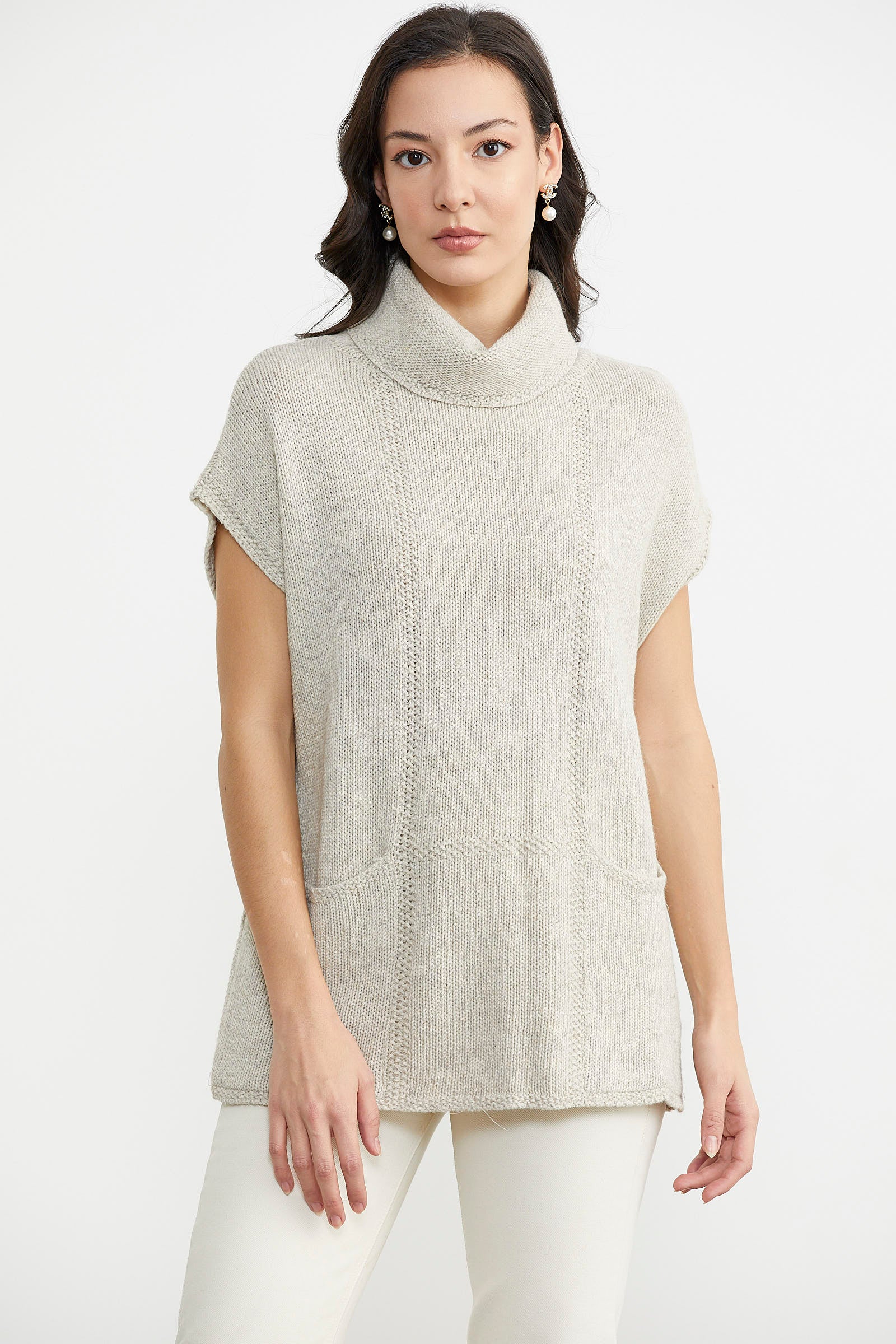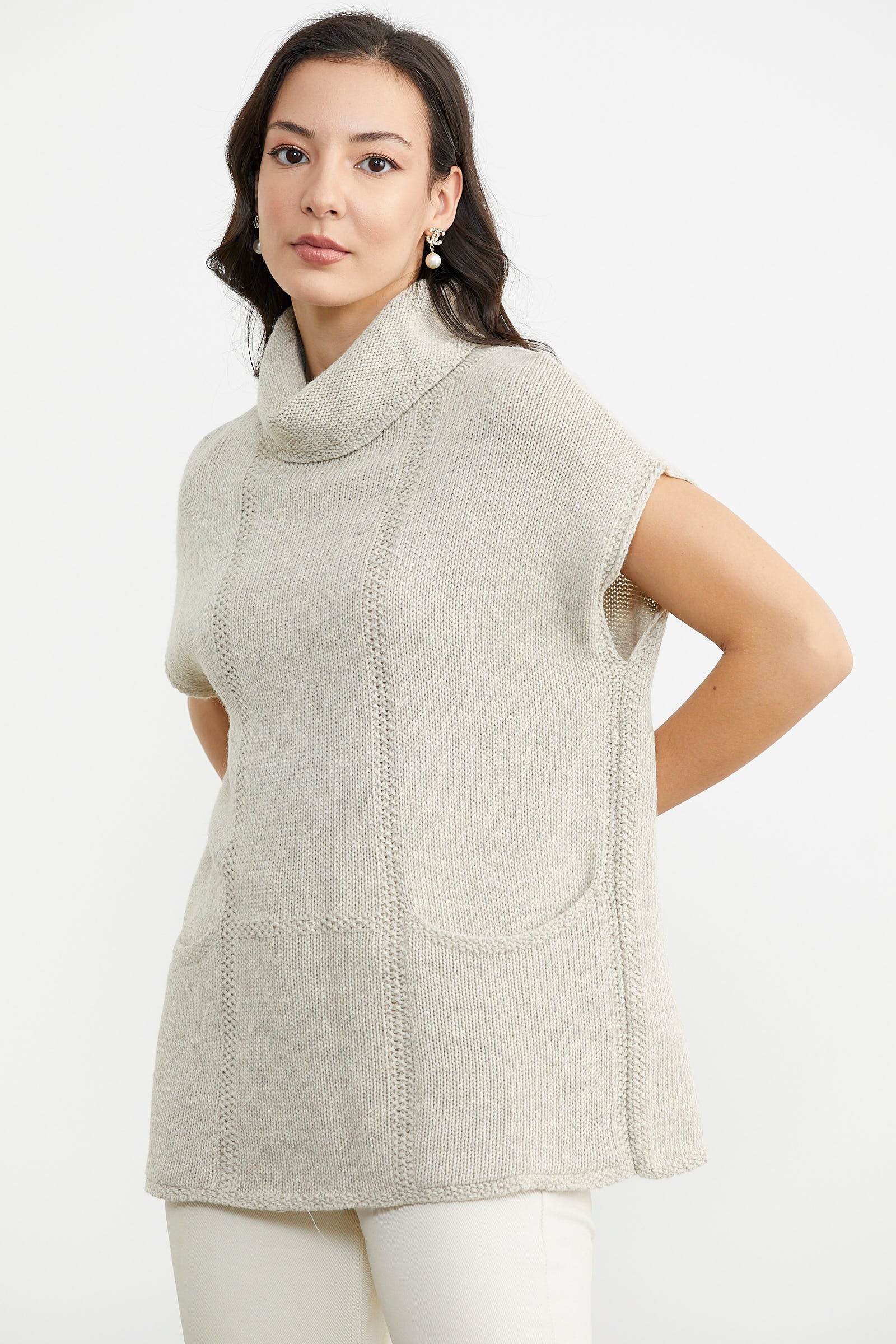 Tam Balıkçı Kısa Kol Triko Kazak - Bej
