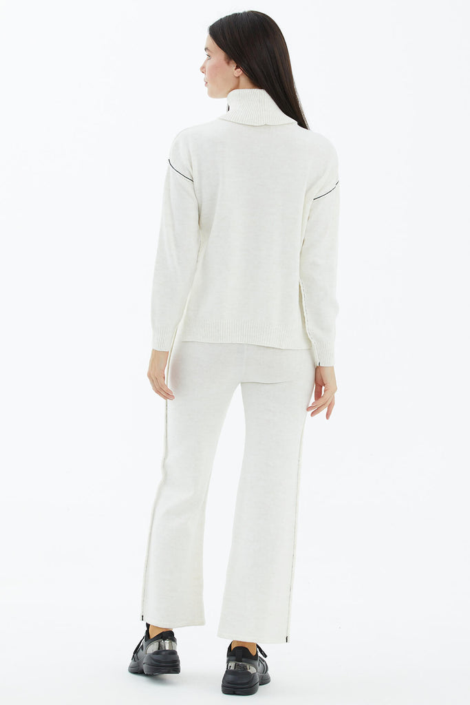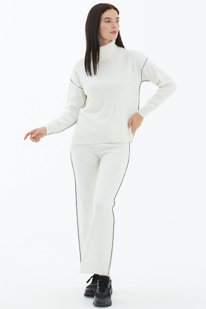 Tam Balıkçı Yaka Kazak Pantolon Triko Takım - Kemik